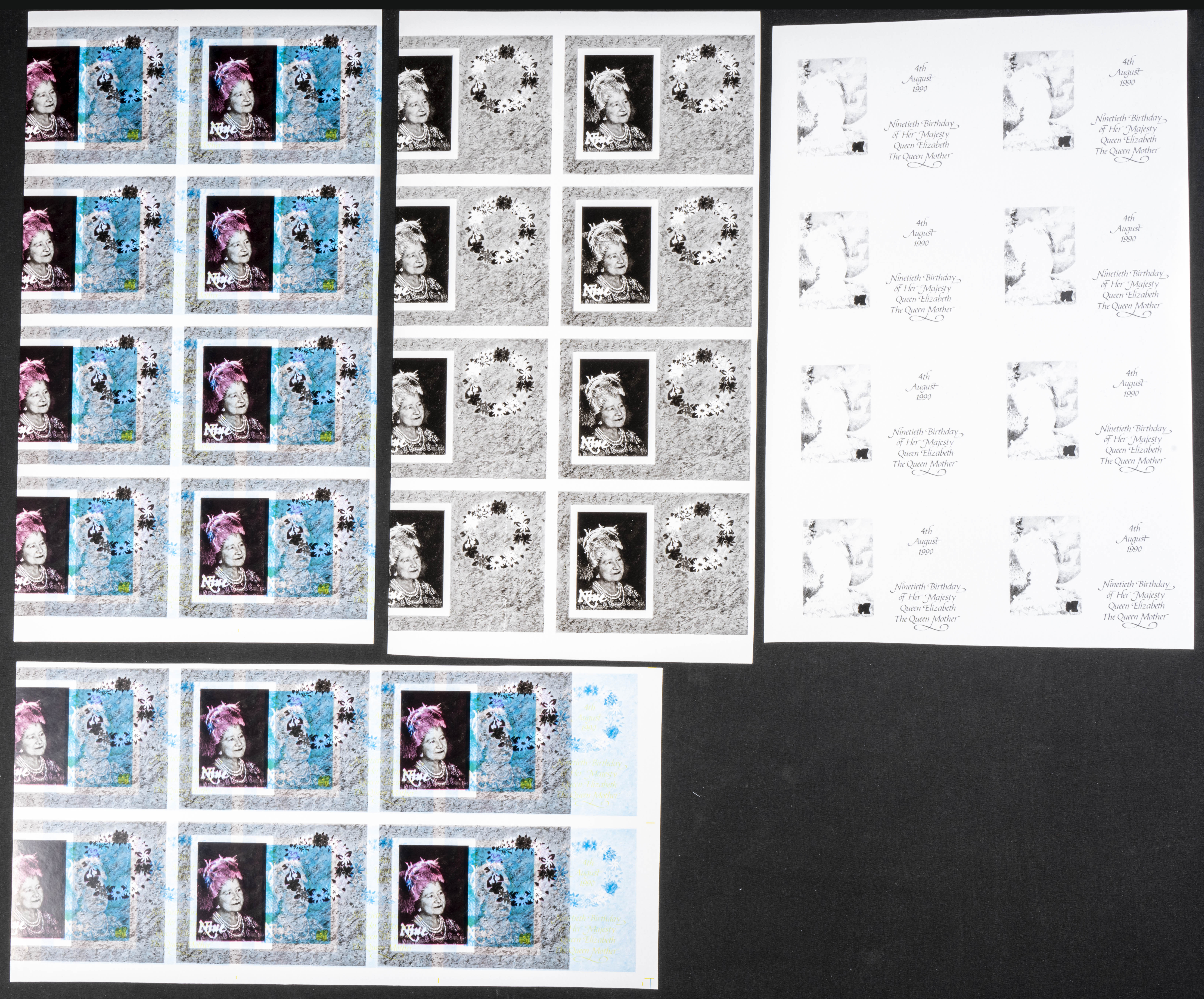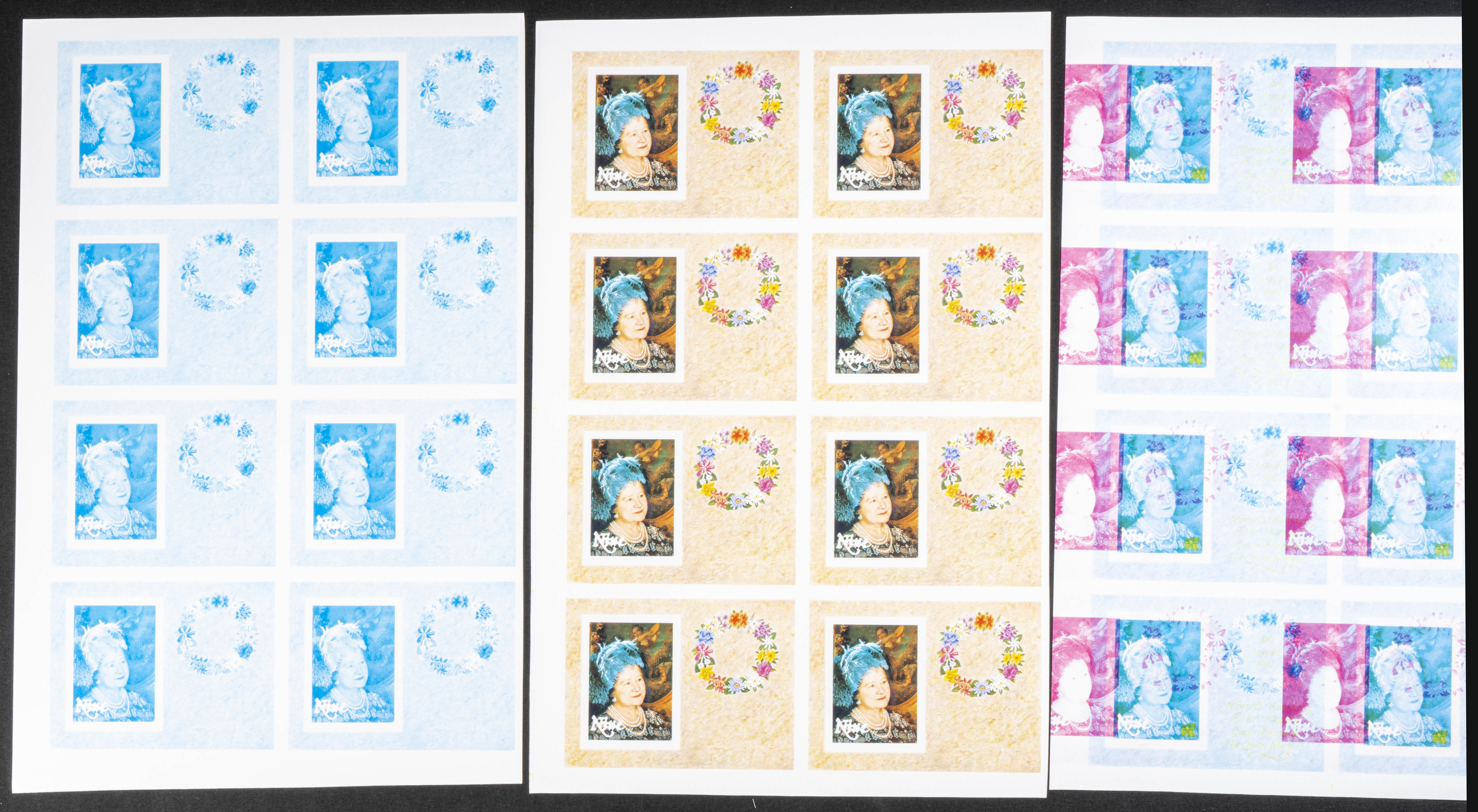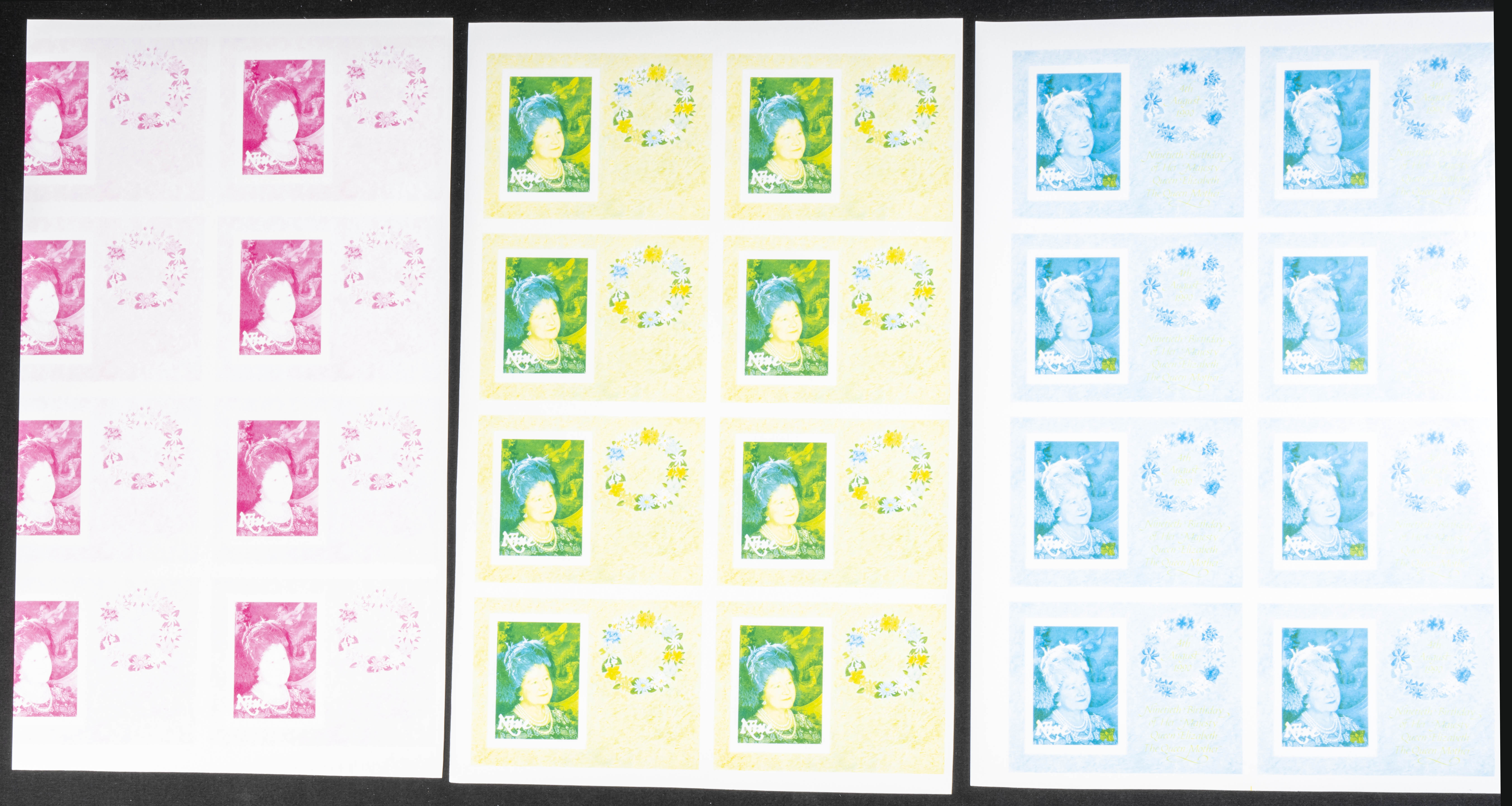 ★★1983. Queen mother. Group of progressive plate proofs of the set. (Michel: B117). TO EXAM.