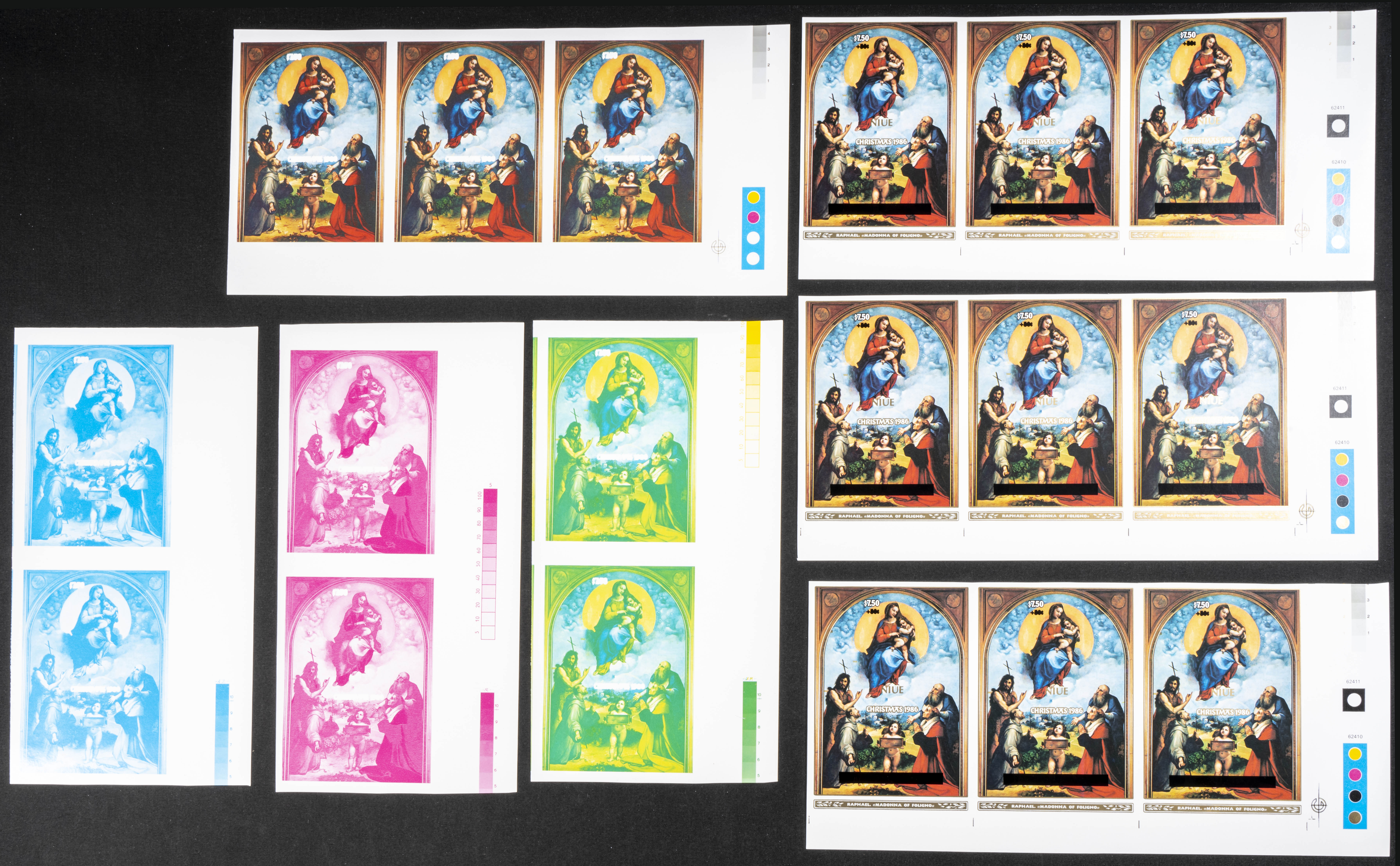 ★★1986. Christmas. Group of progressive plate proofs of the set. (Michel: B106). TO EXAM.