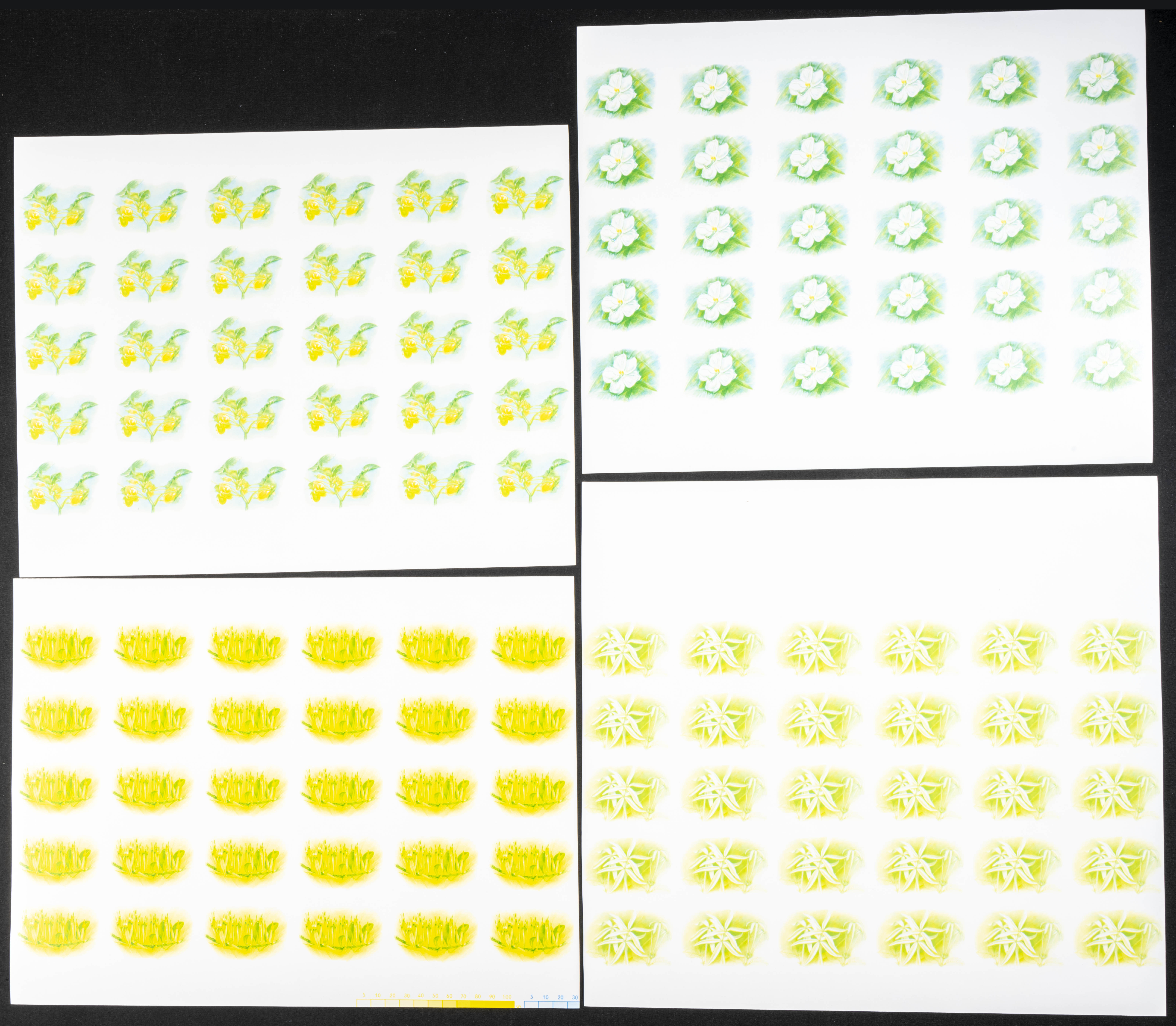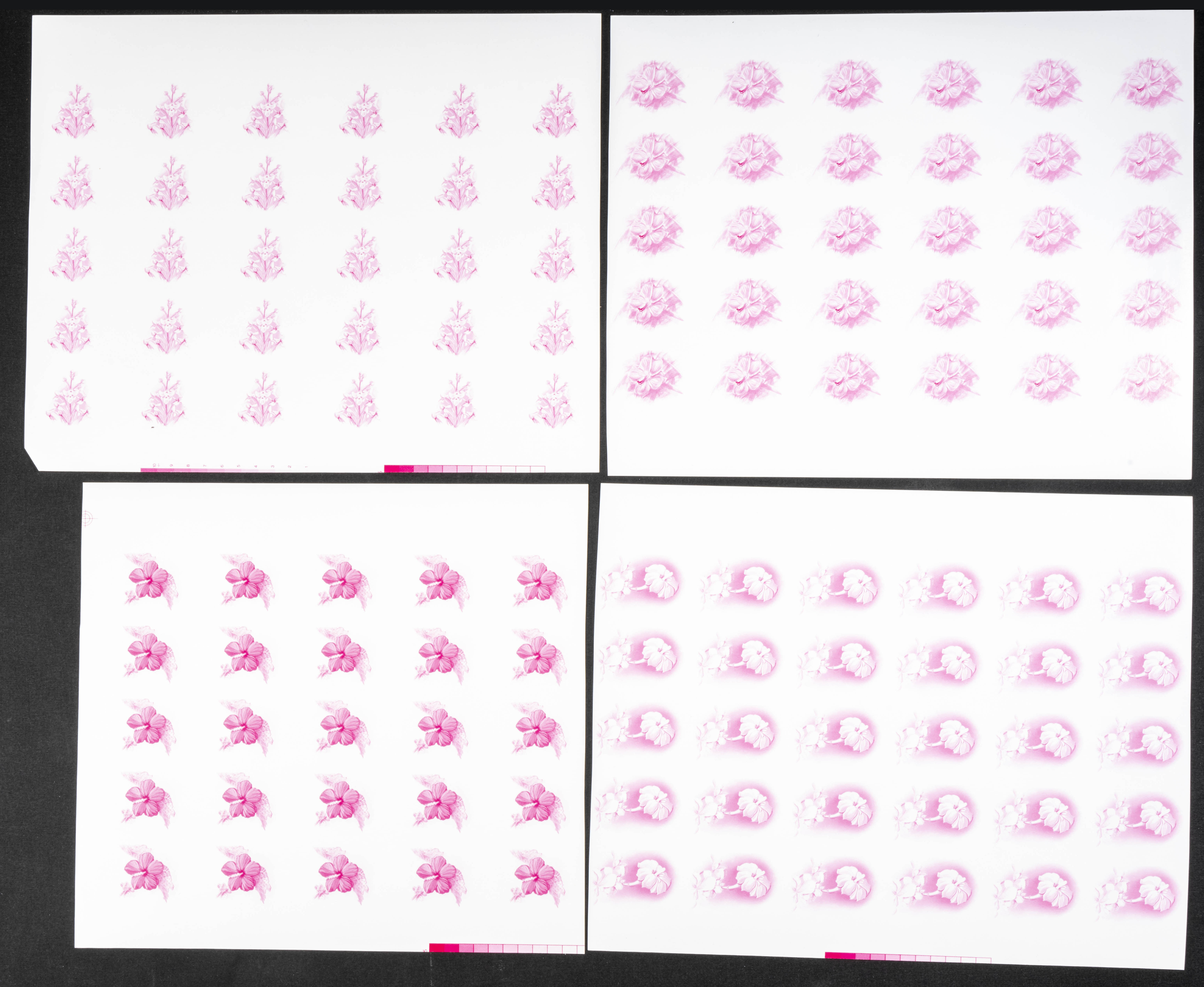 ★★Yvert 974/83. 1981. Flowers. Group of progressive plate proofs of the set. TO EXAM.