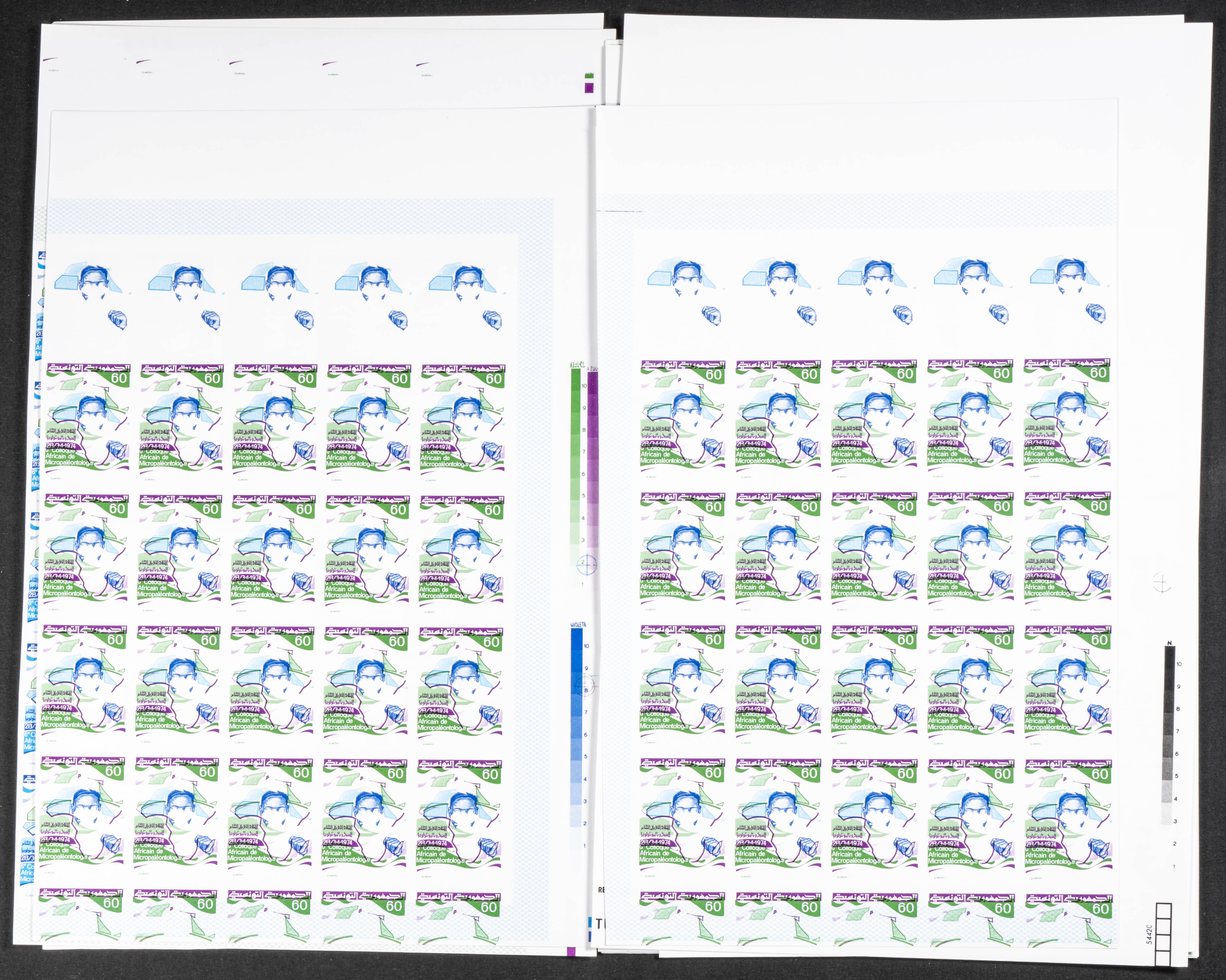 ★★Yvert 767. 1974. Micropaleonthology. Group of progressive plate proofs of the set. TO EXAM.