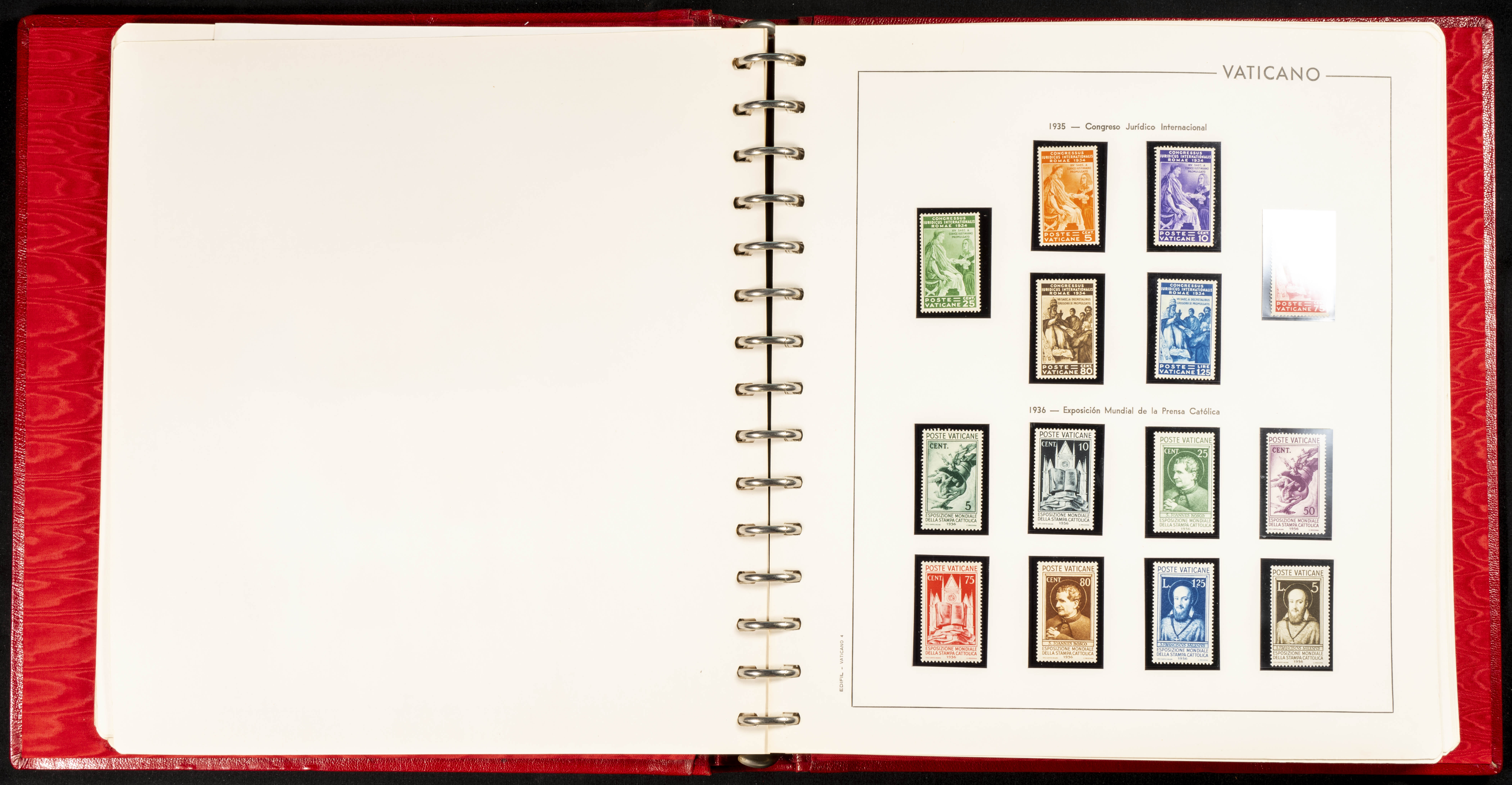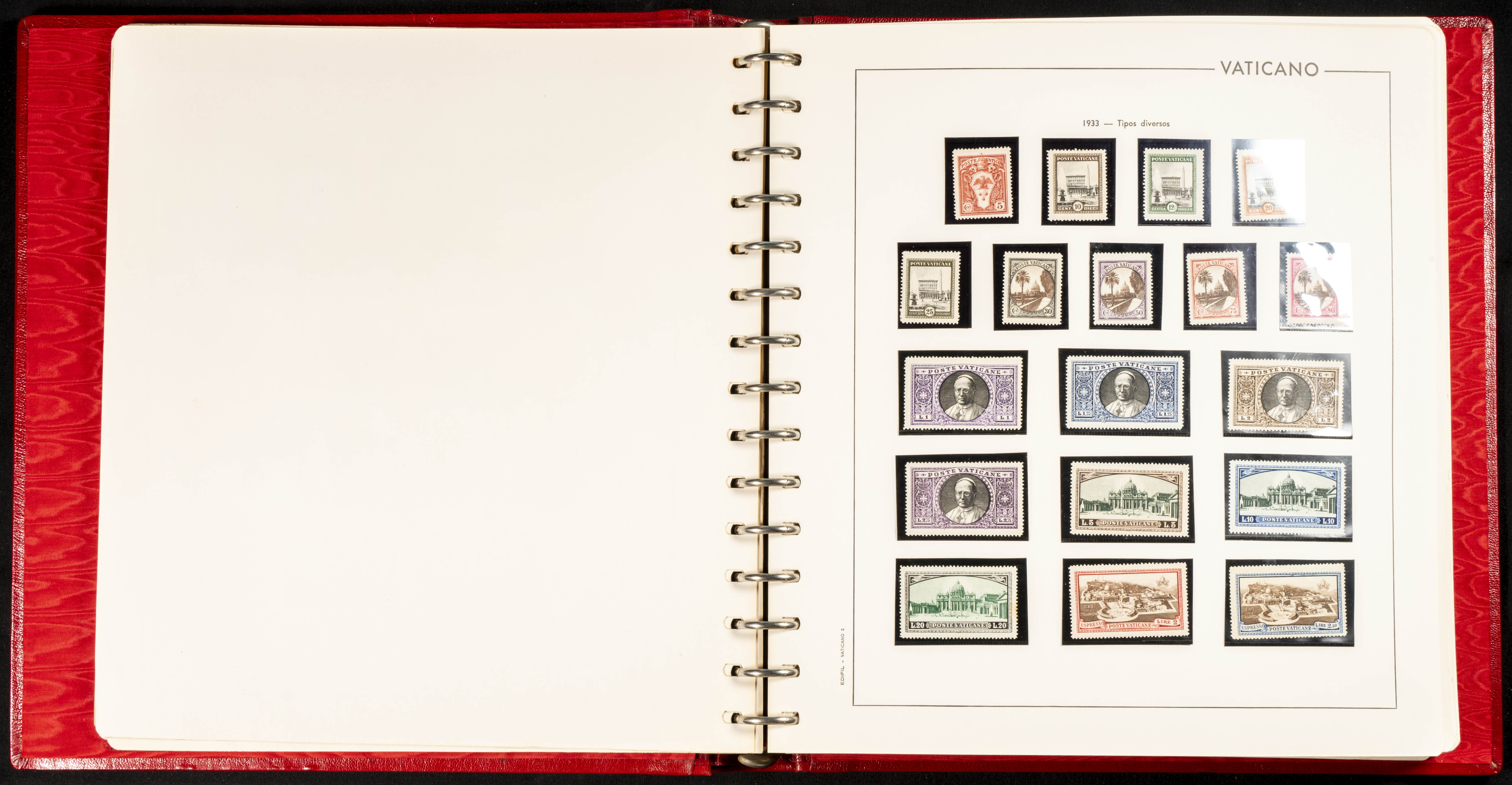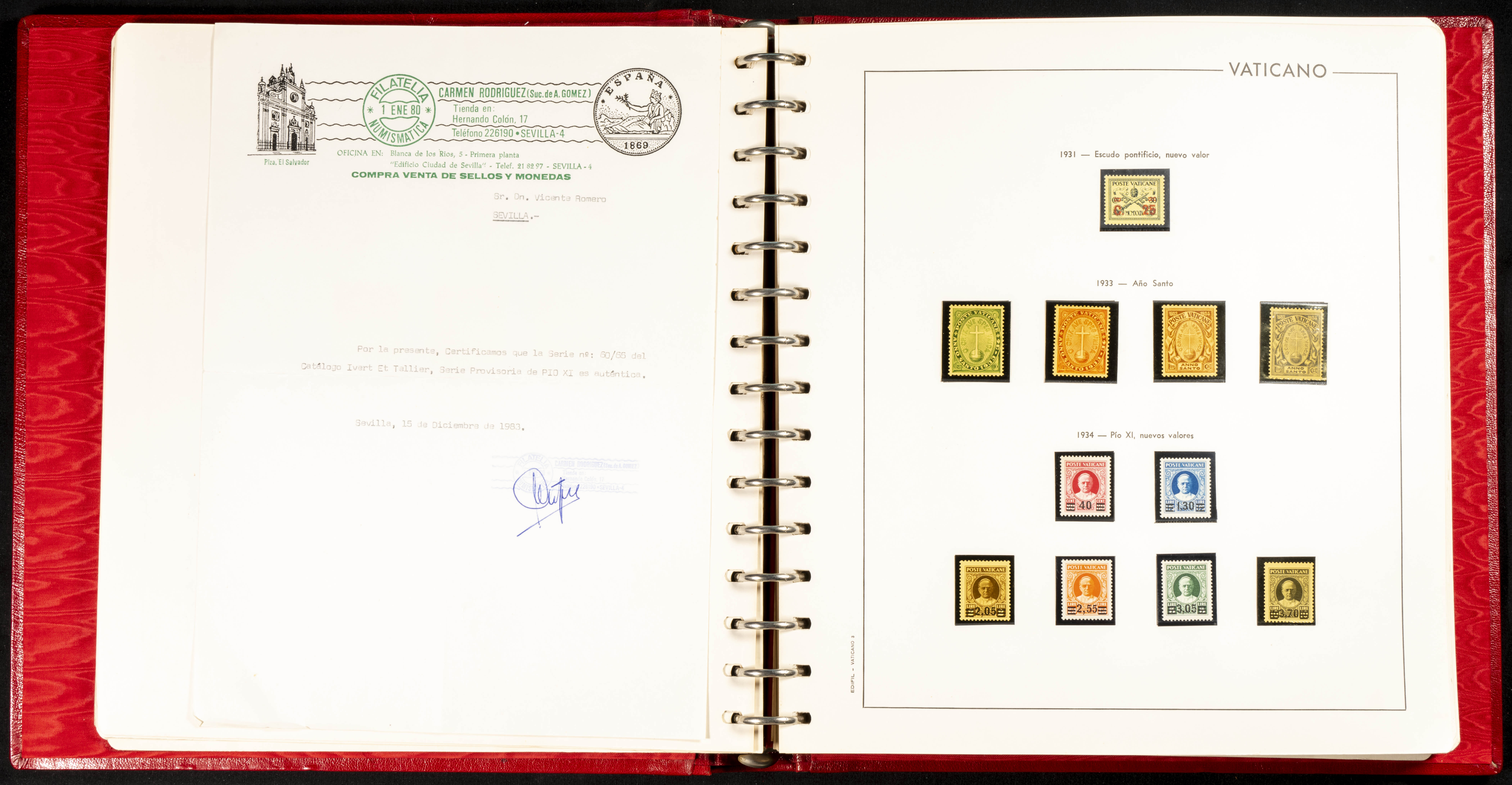 ★★/★(1929ca). Interesting complete Vatican collection between 1929 and 2021, new and important series such as Provisoria, Congreso Jurídico, Prensa Católica and airmails of Tobías and Graciano, all with hinges (mounted in Edifil leather albums). VERY HIGH CATALOG VALUE. WORTH EXAMINING.