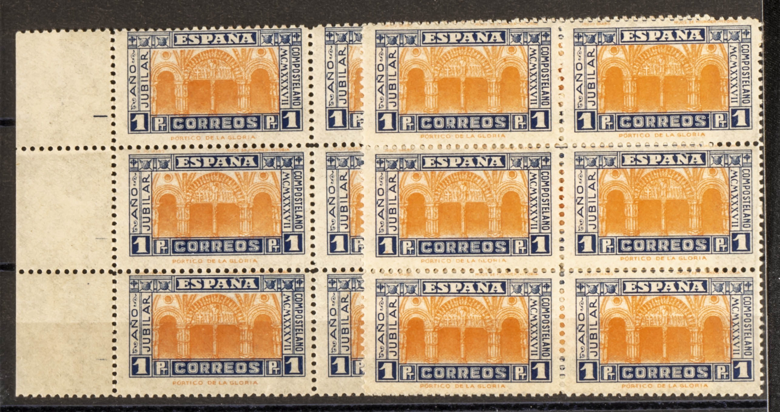 ★★ 835(15). 1937. 1 pts blue and orange, fifteen stamps (some with spots). TO BE EXAMINED. Edifil 2025: 870 Euros