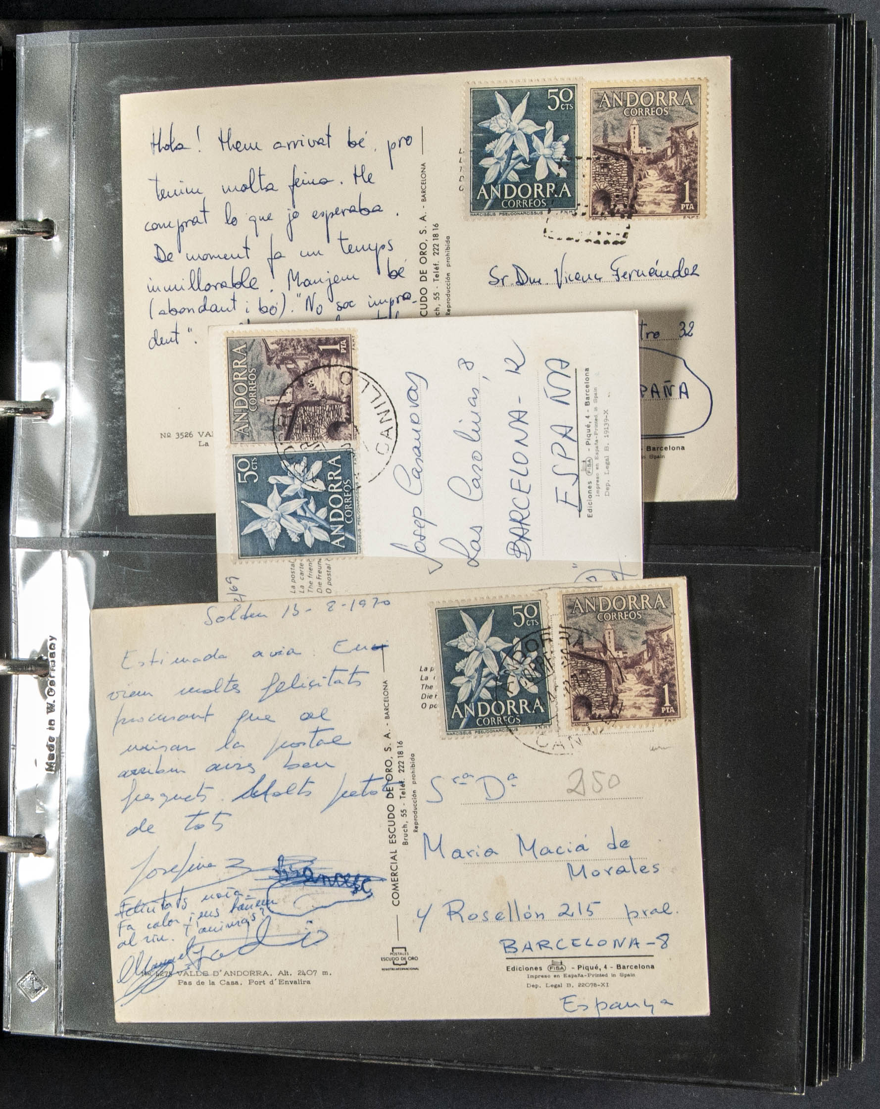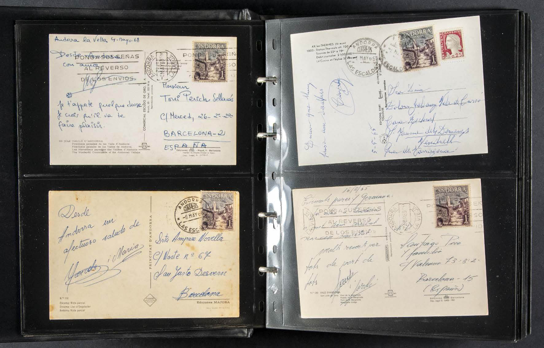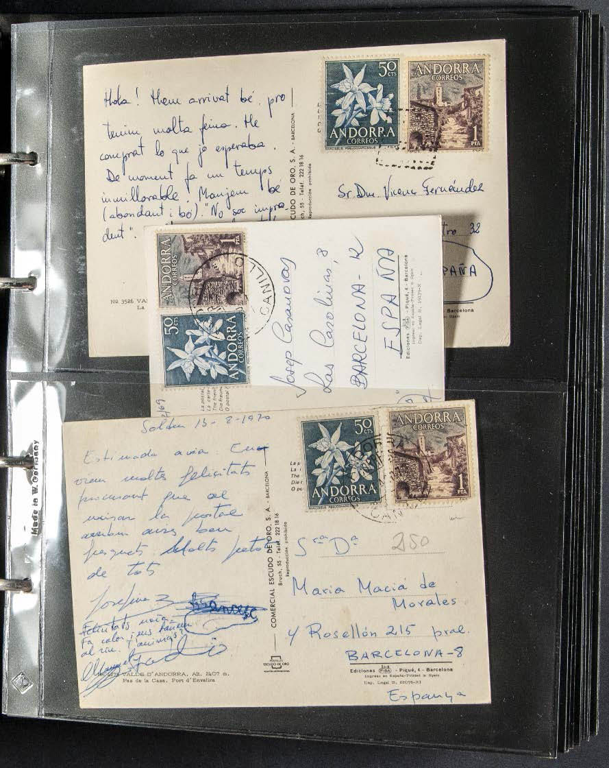 (1952ca). Interesting set of more than two hundred postcards circulated from Andorra and stamped with Spanish and Andorran stamps between 1952 and 1988, some with French Post stamps. TO BE EXAMINED.