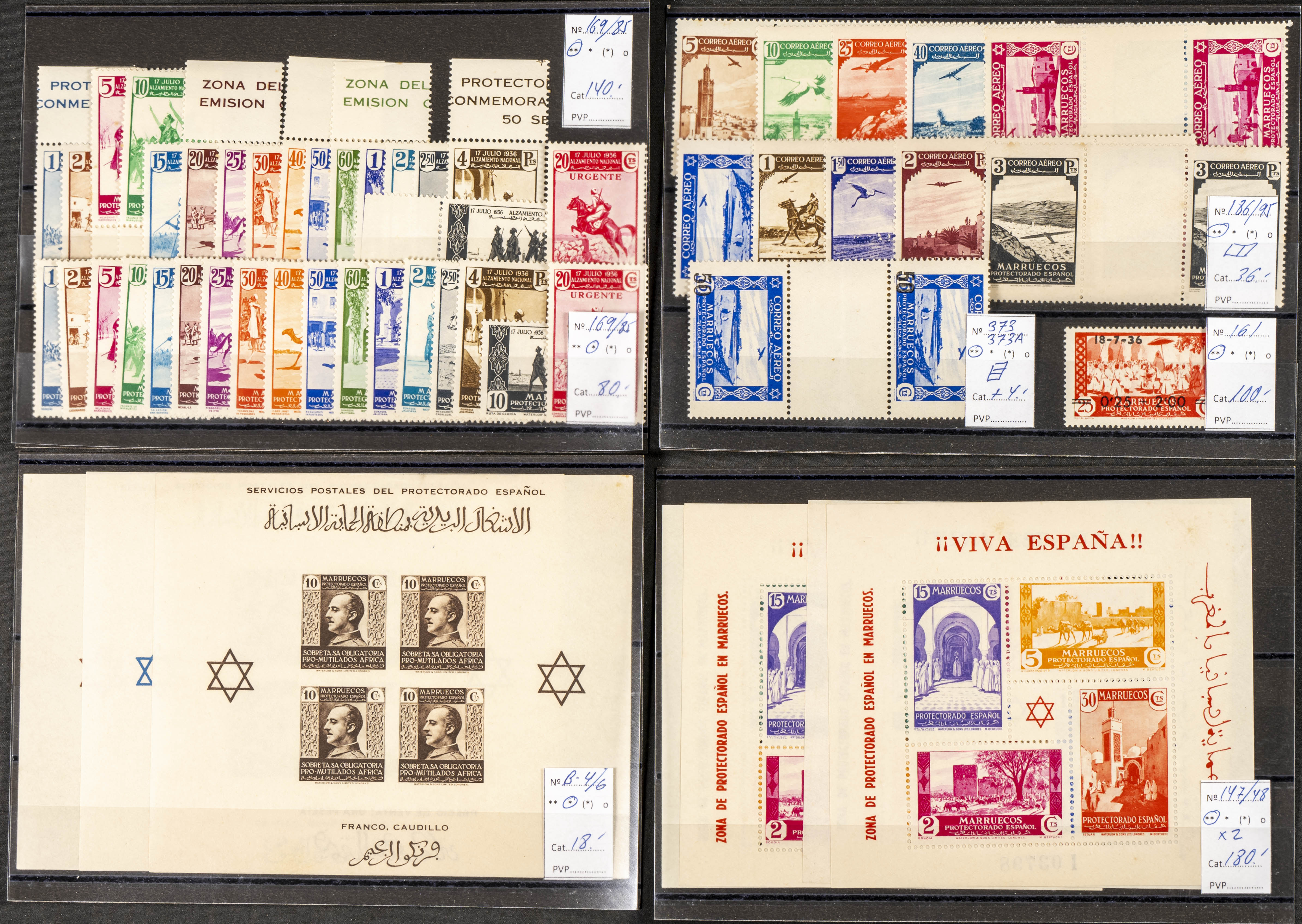 ★★/★(1937ca). Complete series and block sheets from Morocco, in new condition (various qualities). TO BE EXAMINED. Edifil 2025: 538 Euros
