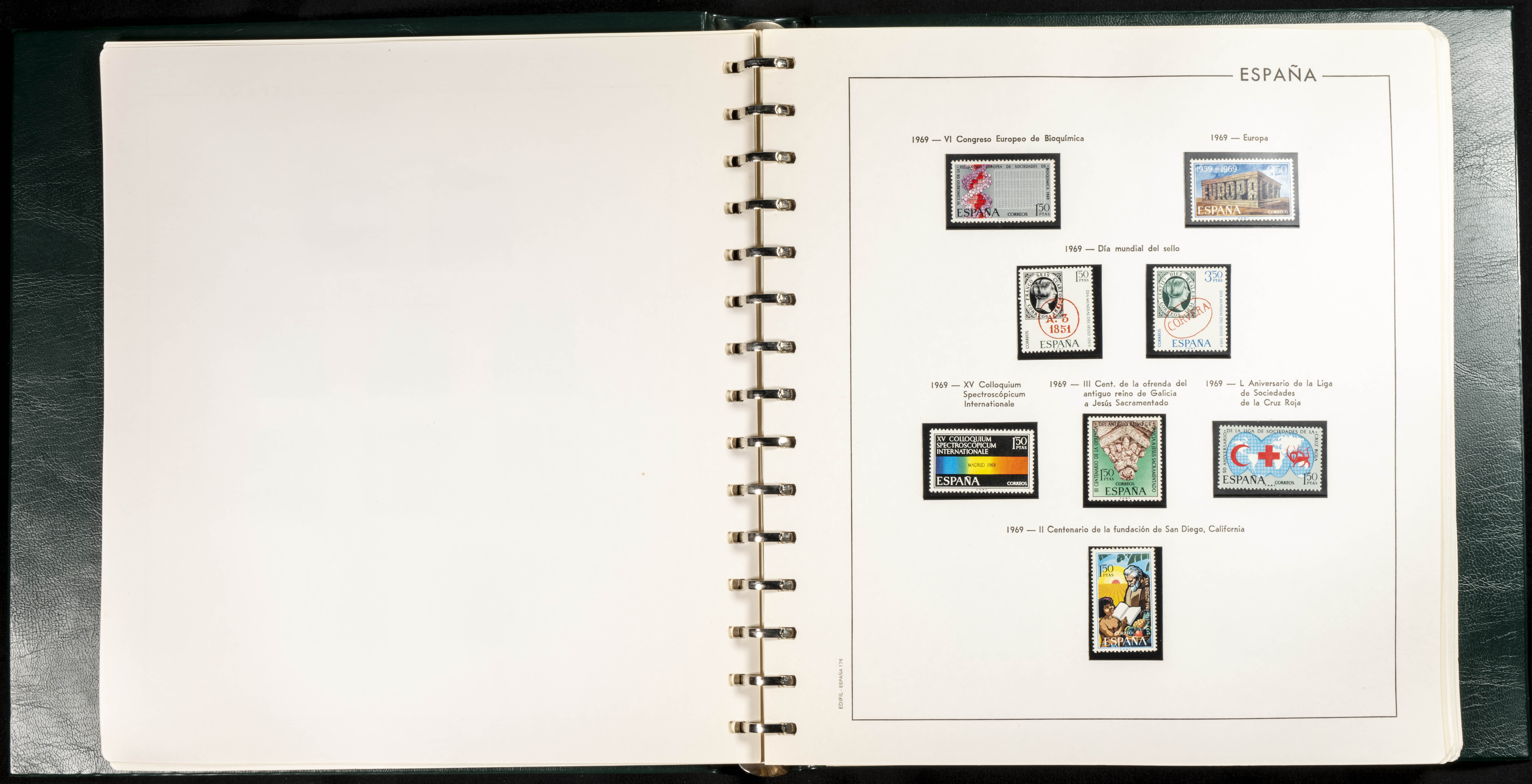 Three Edifil albums of different colors
