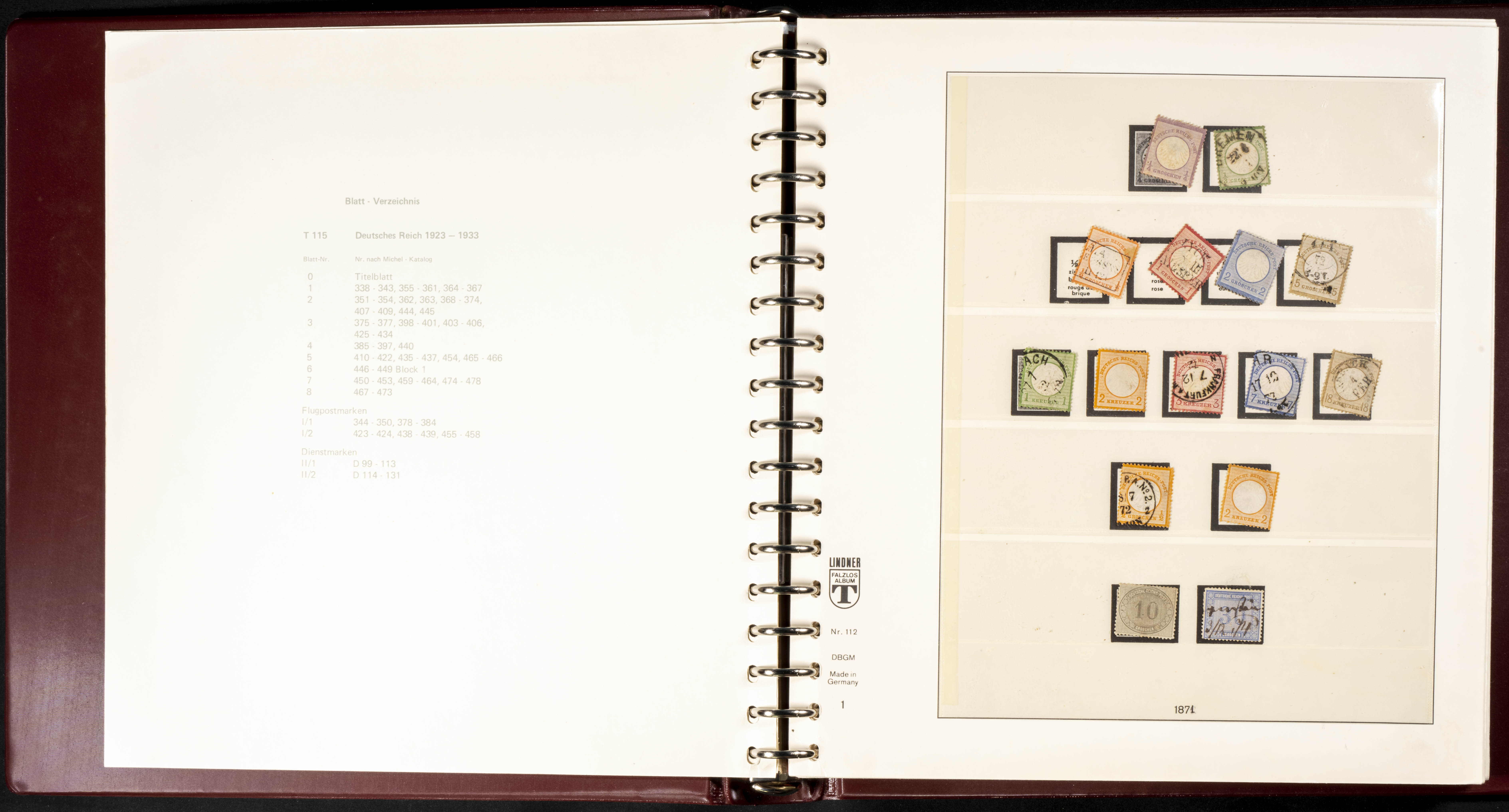 ★(1872ca). Spectacular collection of practically complete Imperial Germany from 1872 to 1945, the classic part and up to 1879 mostly used, the rest new with mounts (very good quality in general), including all important series (land and air), all block sheets and some Service series (mounted in Lindner albums). VERY HIGH CATALOGUE VALUE. ESSENTIAL TO EXAMINE.