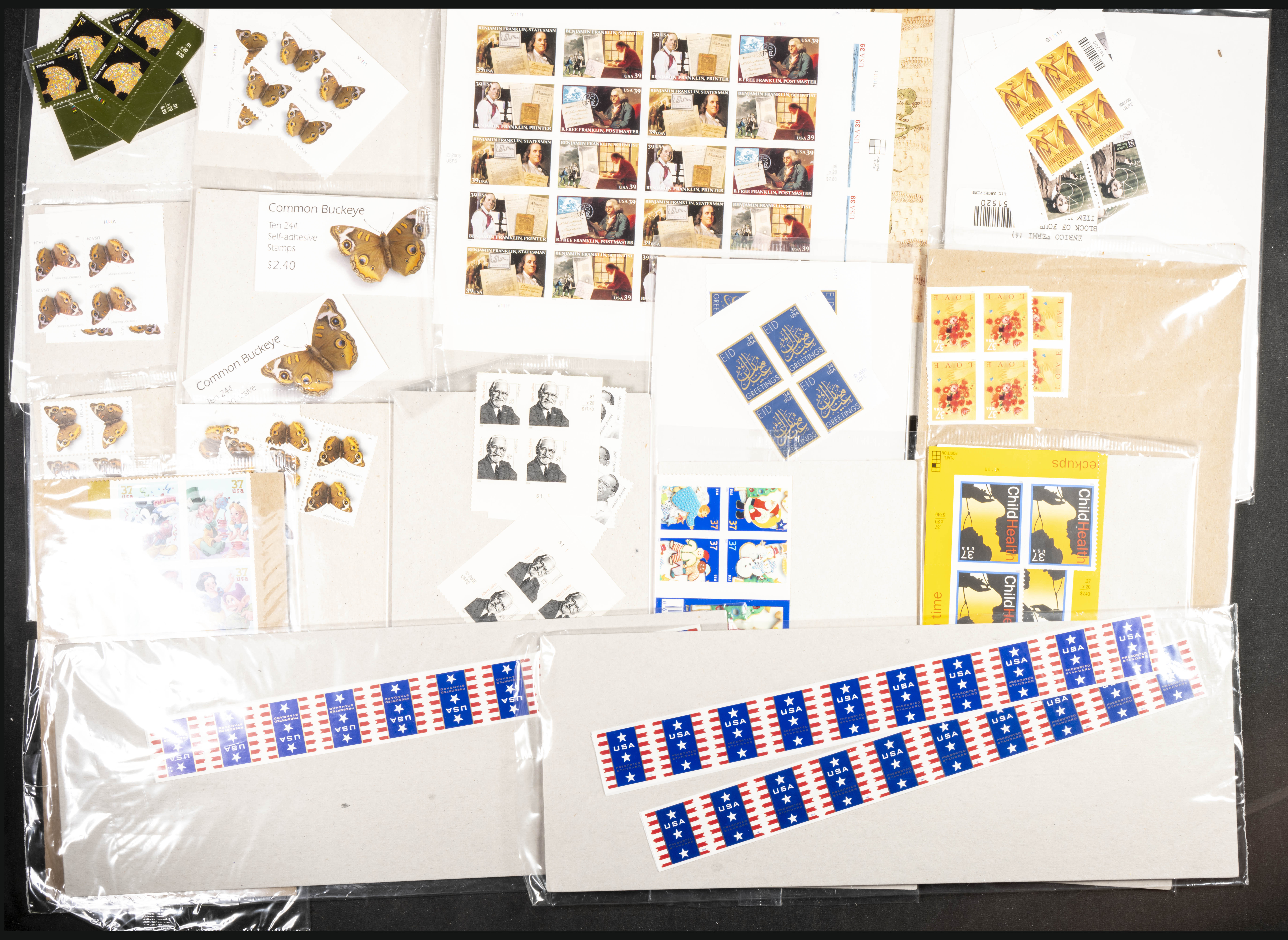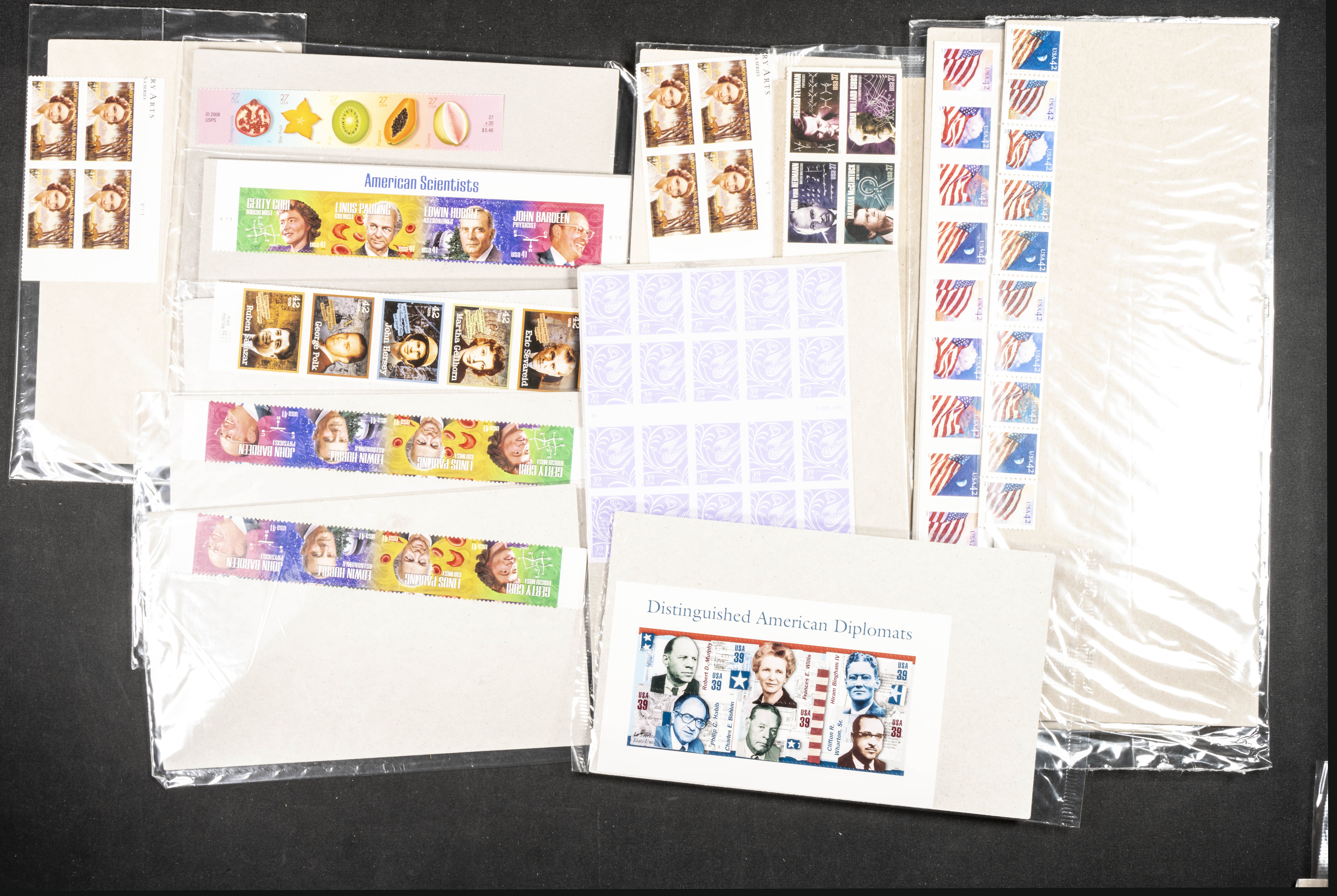 ★★(1995ca). Interesting stock set of stamps and series from the United States, in mint condition and many in minisheets, most of them in the folders of the United States mail of the nineties. (Face: ++ 950 Dollars). WORTH EXAMINING.