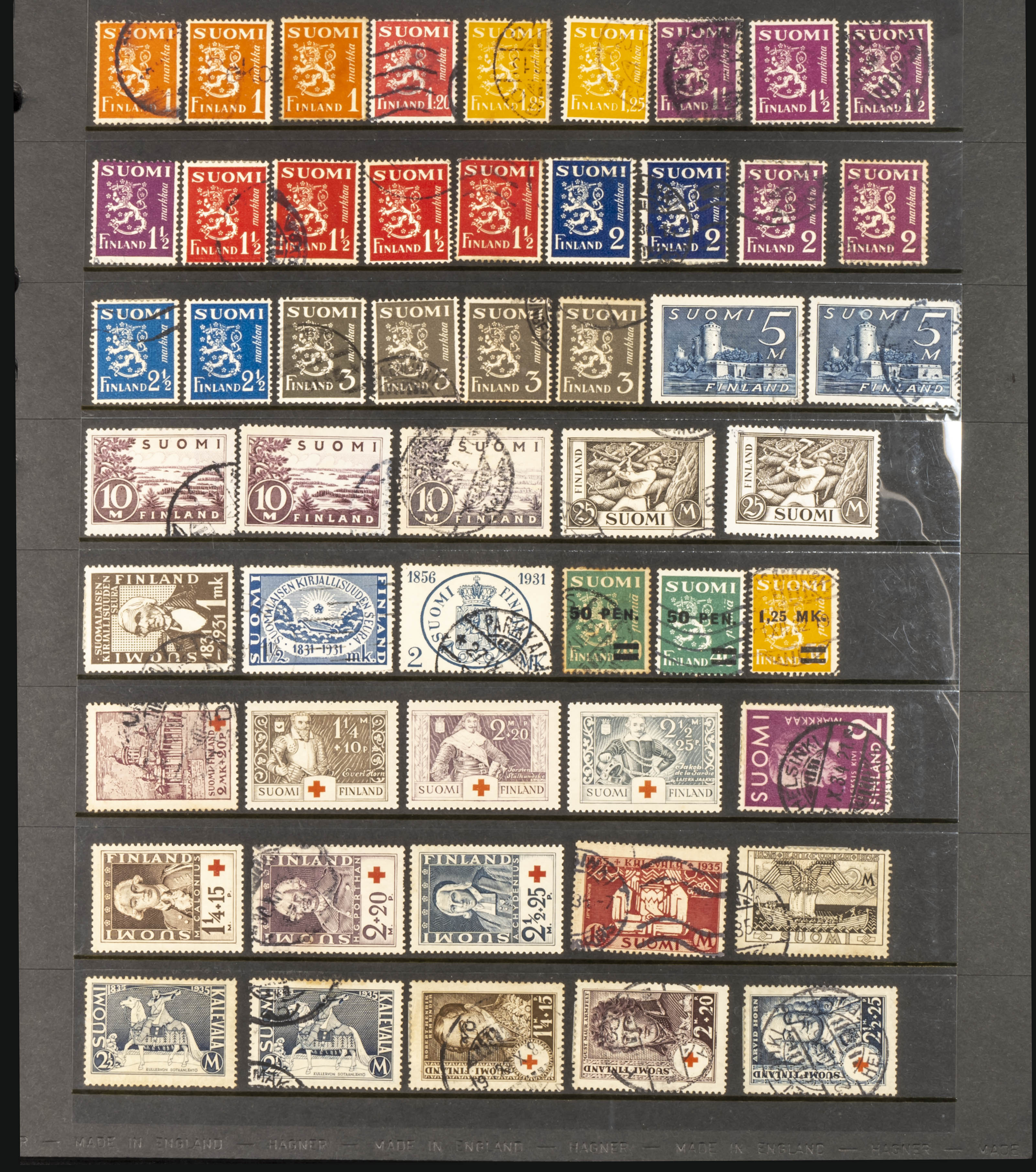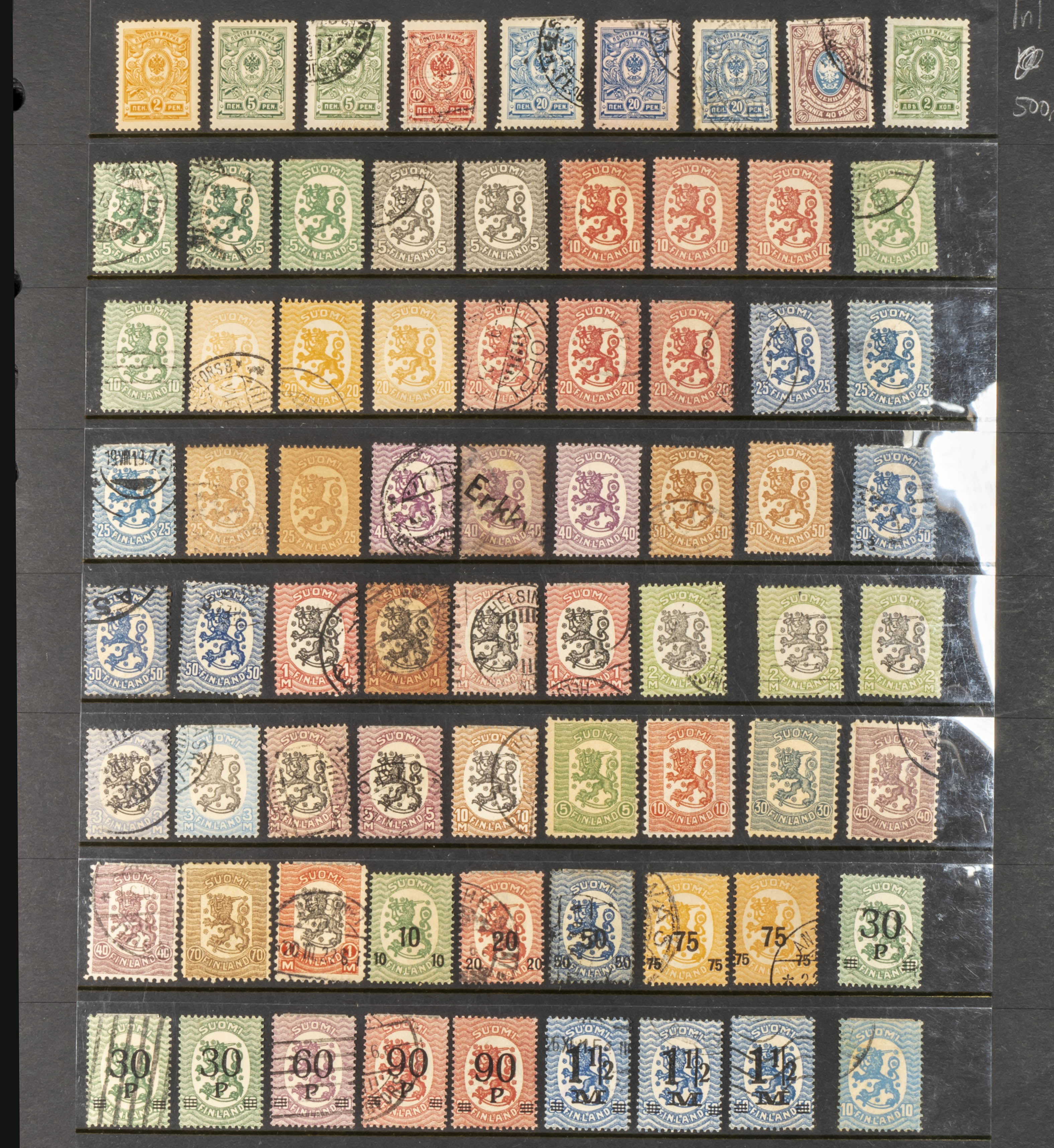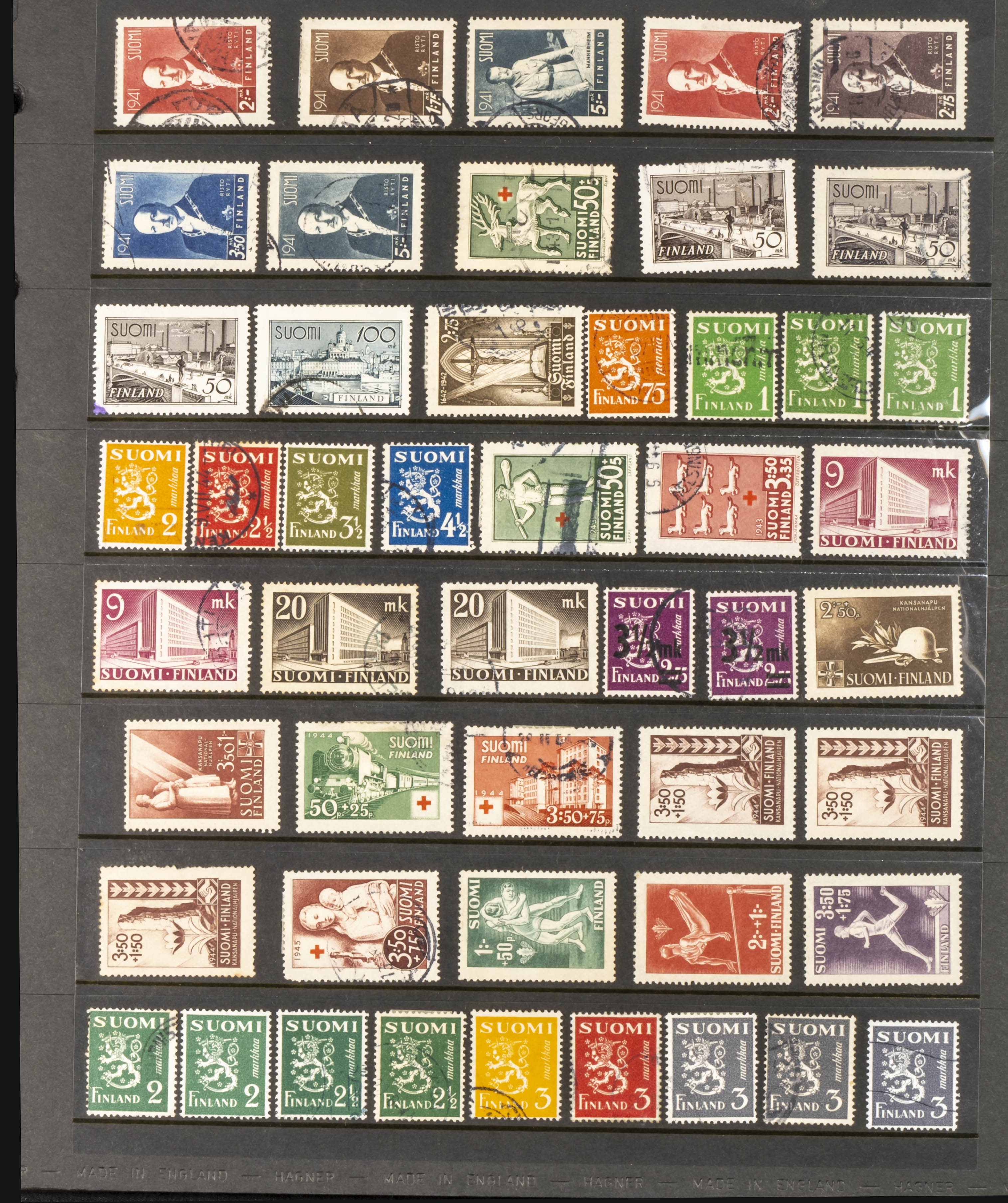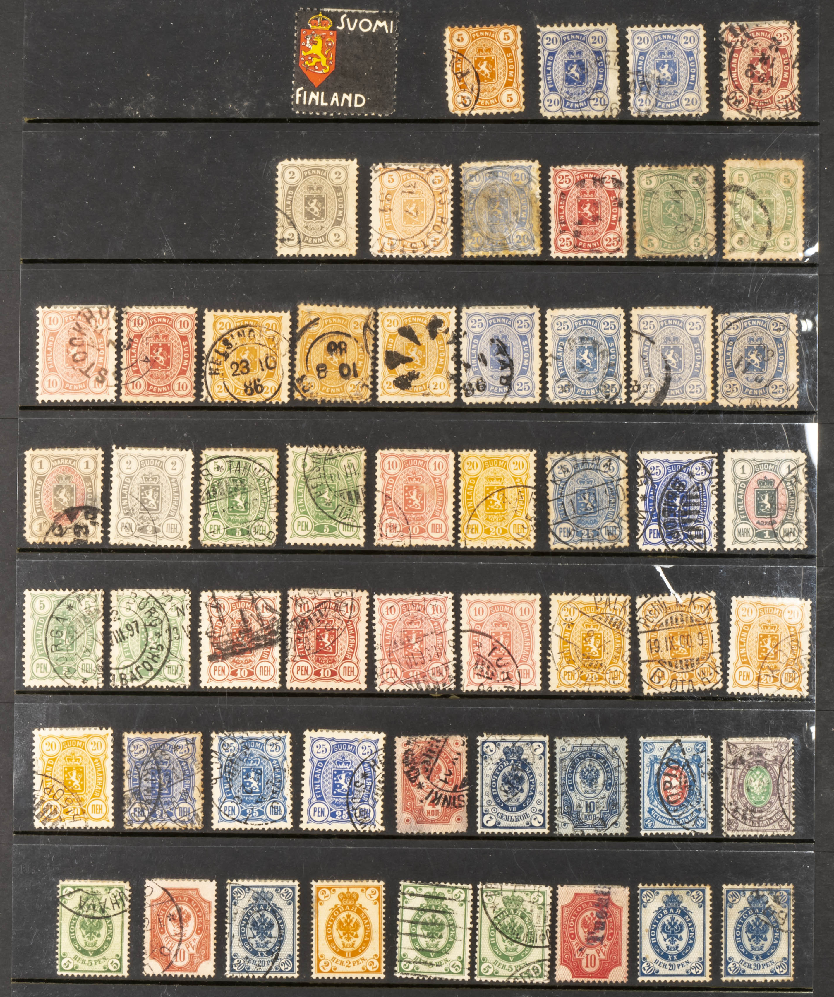 (1880ca). Interesting set of loose stamps and complete sets of Finland between 1880 and 2004, used and the classic part very complete (except first issues) and the rest with numerous repetitions. WORTH EXAMINING.