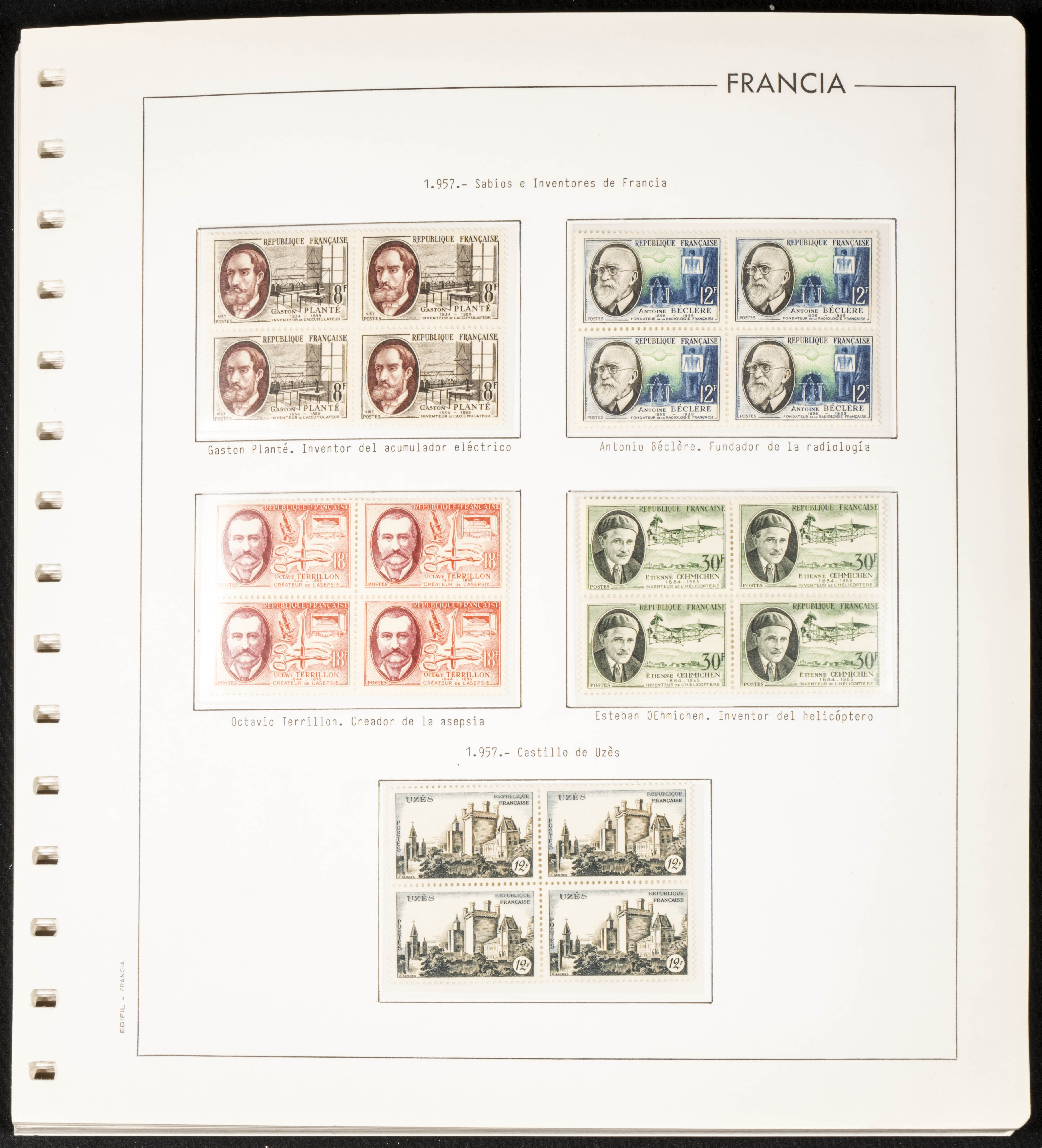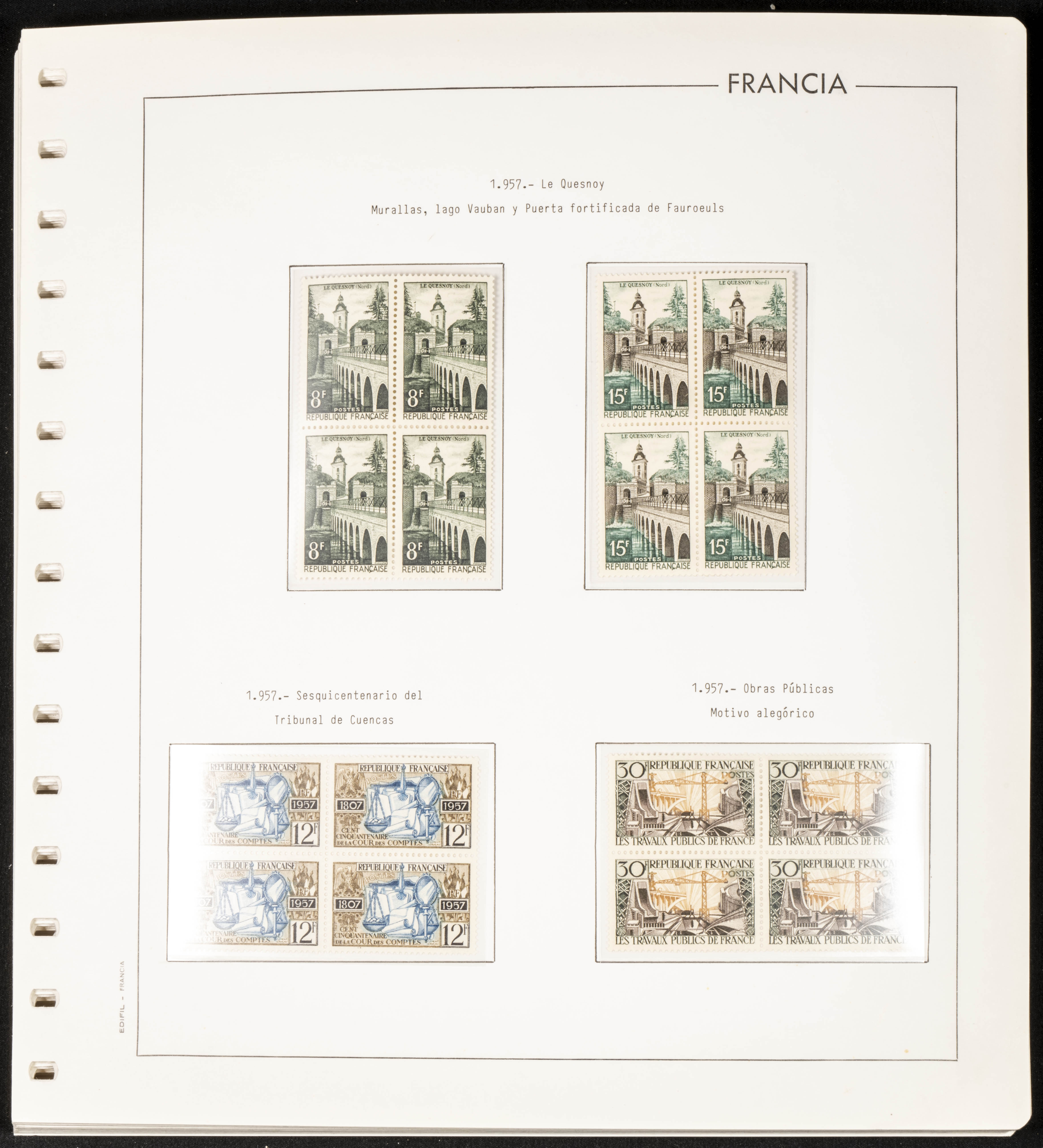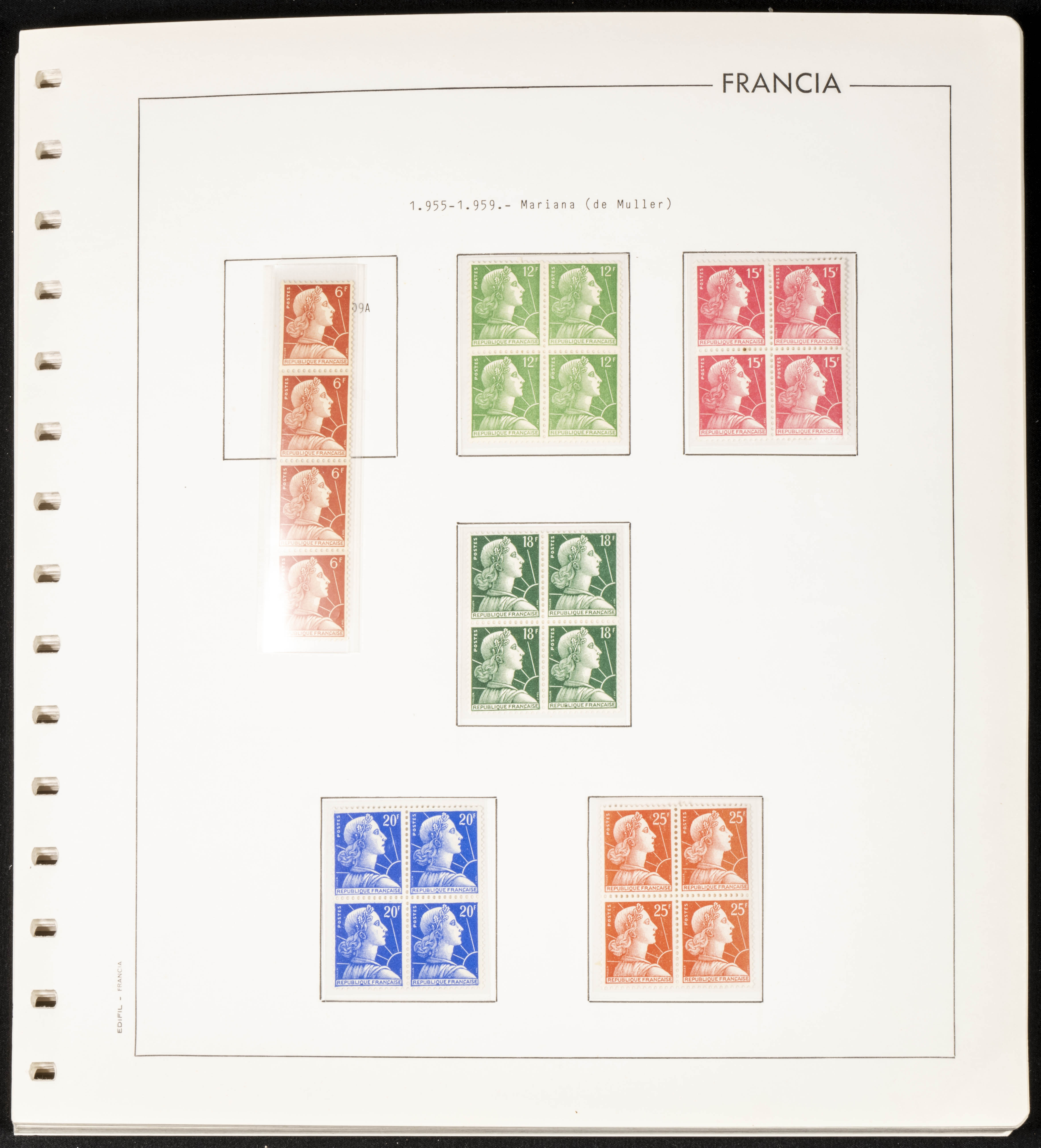★★(1965ca). Very complete collection of France between 1965 and 1995 in blocks of four, in mint condition and including Air, Tax, Service and Pre-obliterated from the same period. TO BE EXAMINED. Yvert 2024: ++8,500 Euros