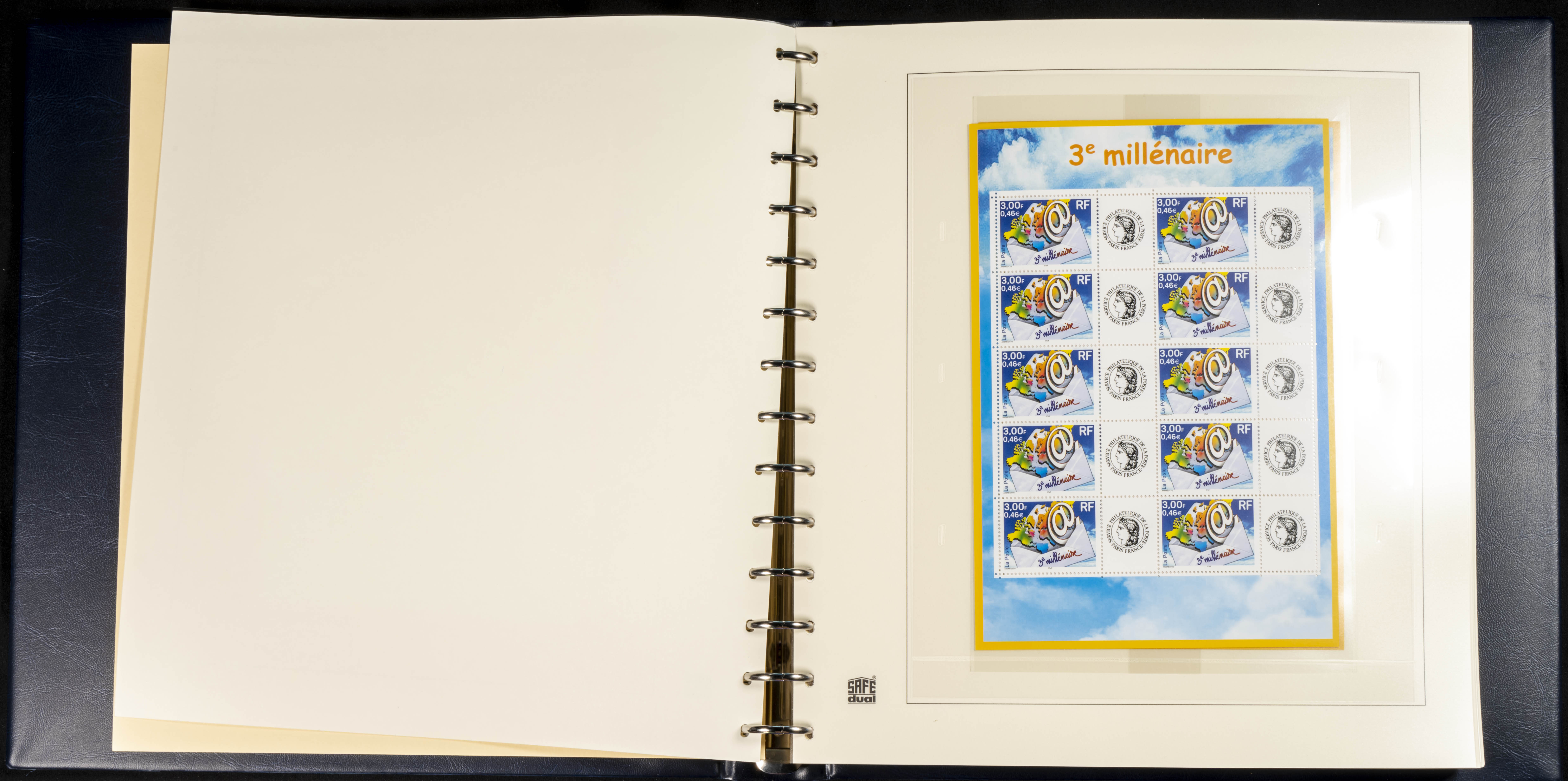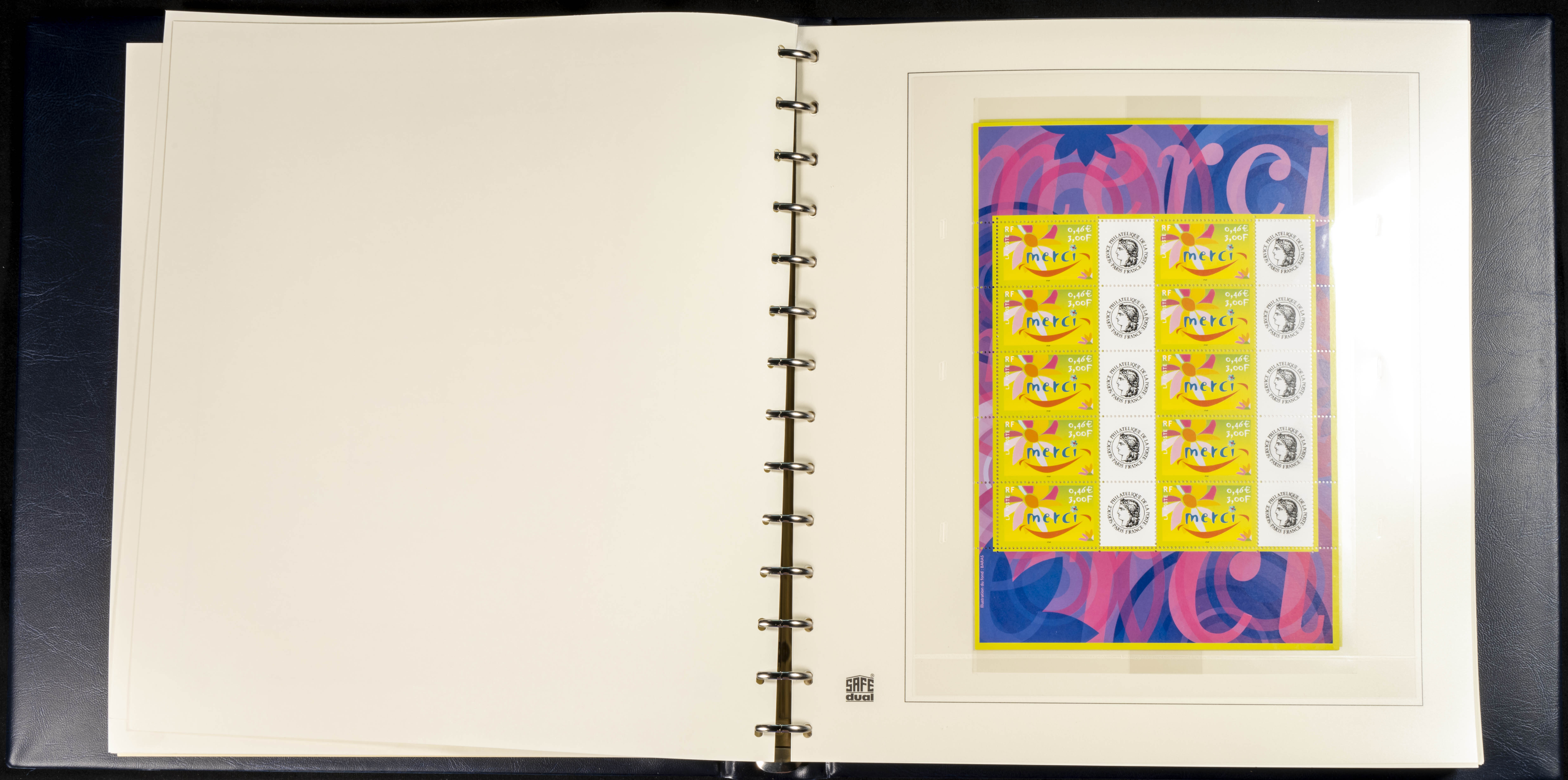 ★★(2000ca). Interesting and very complete set-collection of customizable mini-sheets of stamps from France between 2000 and 2008, in mint condition and most with double logo (Ceres and TP) (mounted in Safe album). TO BE EXAMINED. Yvert 2024: +4,100 Euros