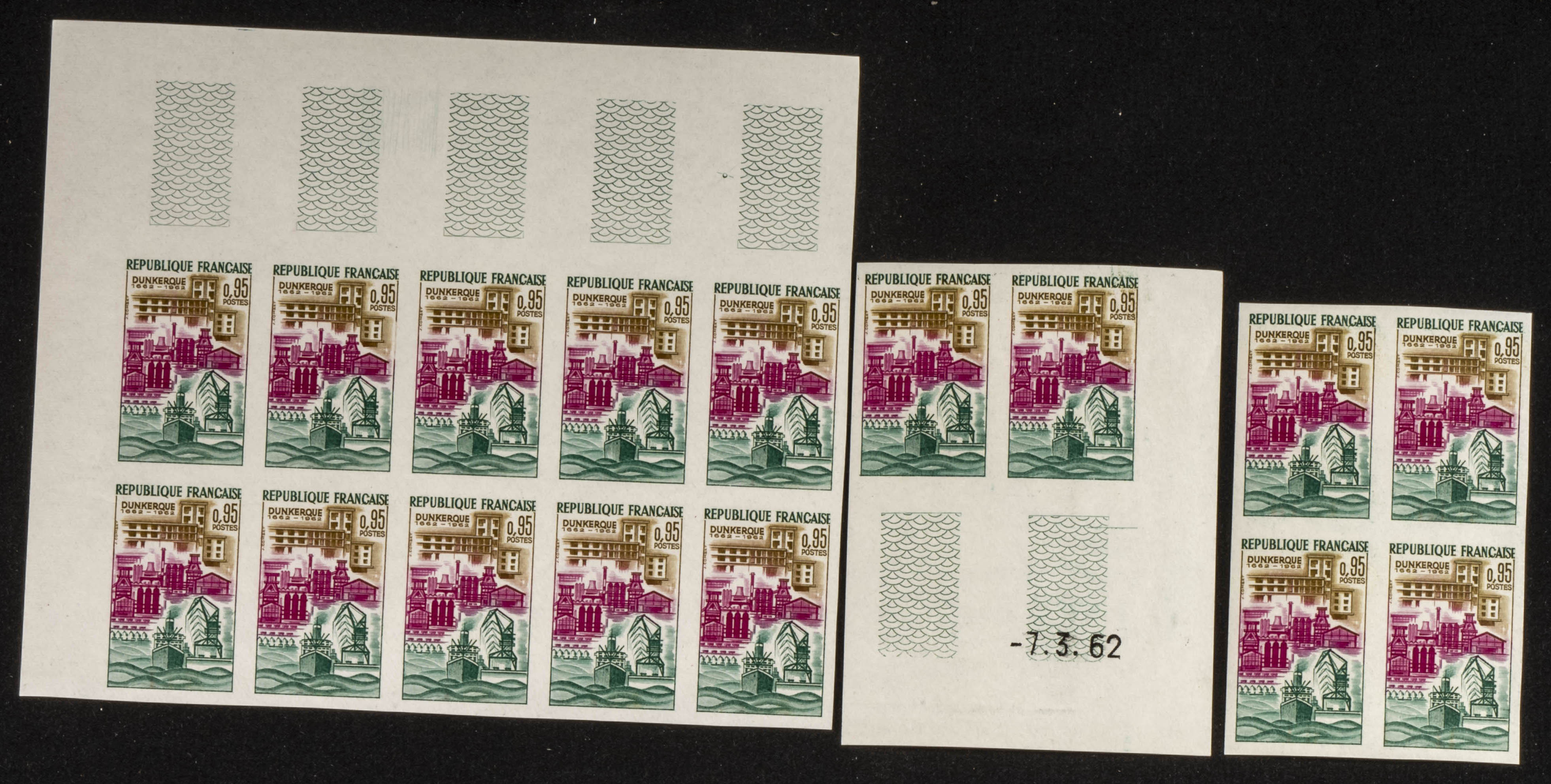 ★★Yvert 1317(16). 1961. Set of sixteen 95 cts multicolor Dunkirk stamps from France 1961 and IMPERFORATED. TO BE EXAMINED.