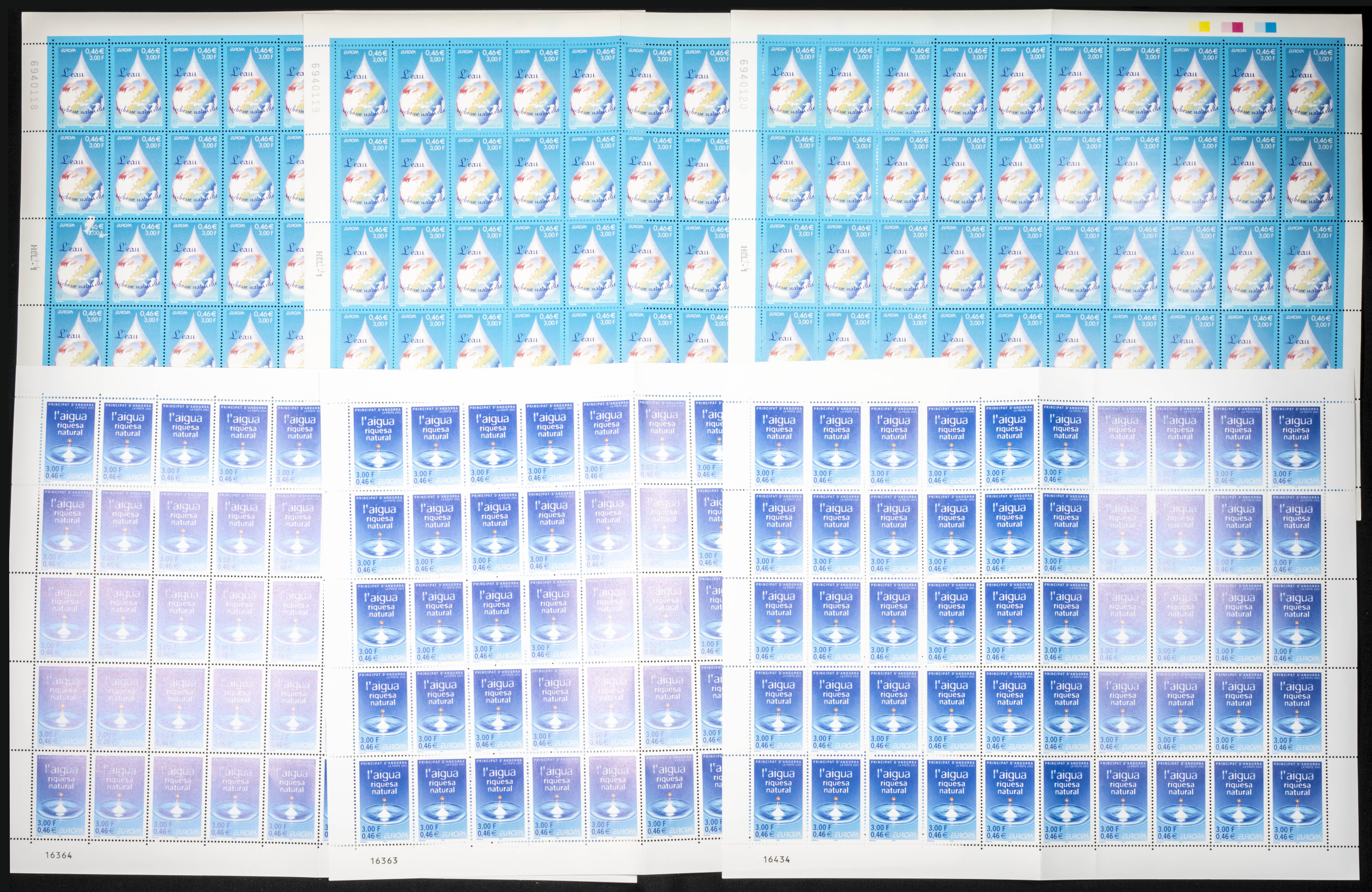 ★★Yvert 3388(175), Andorra 546(300). 2001. Set of three hundred 0.46 Euro EUROPA stamps from French Andorra and one hundred and seventy-five 0.46 cts Euro stamps from France, both EUROPA 2001. TO BE EXAMINED. Yvert 2024: 1,012 Euros