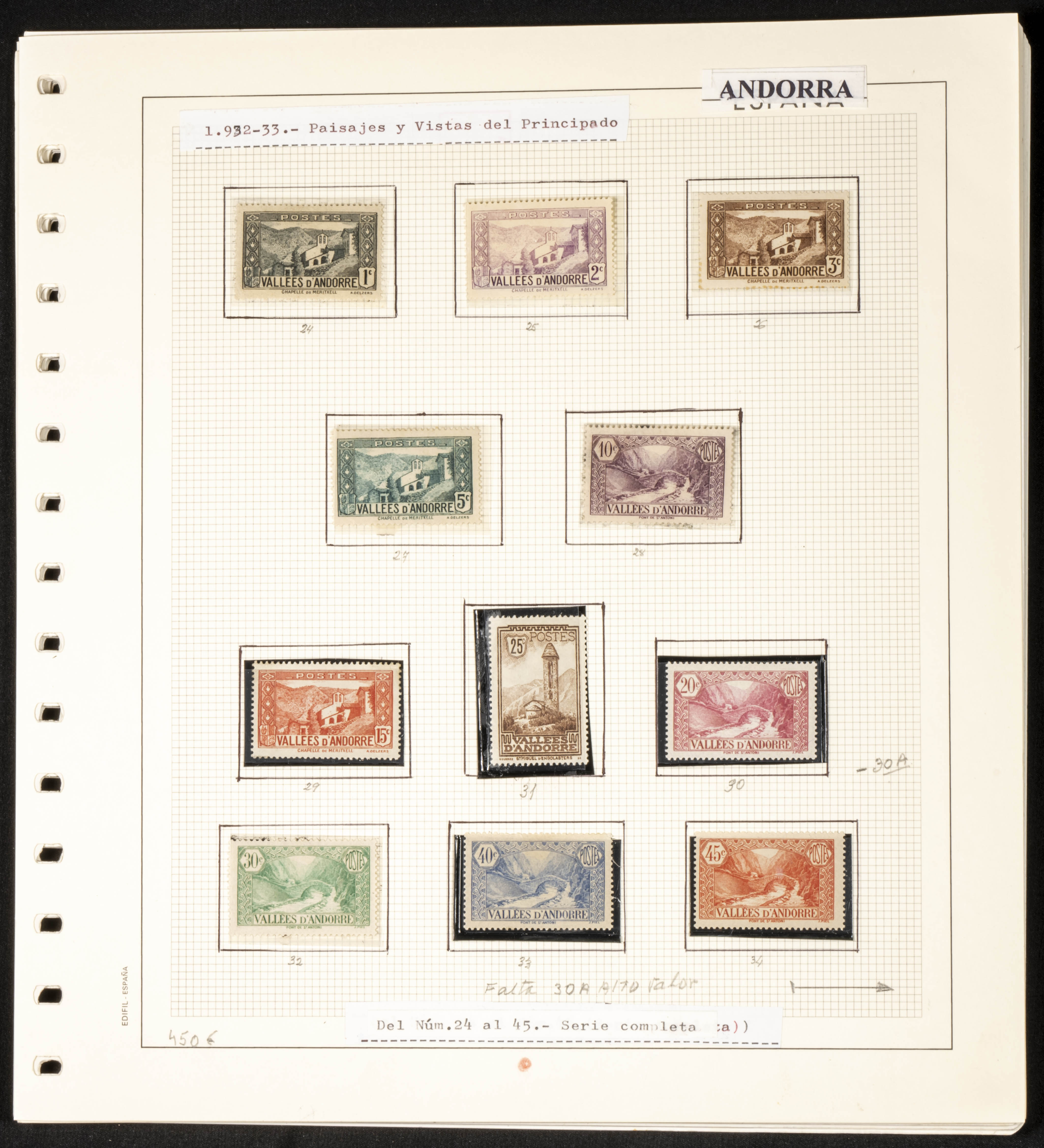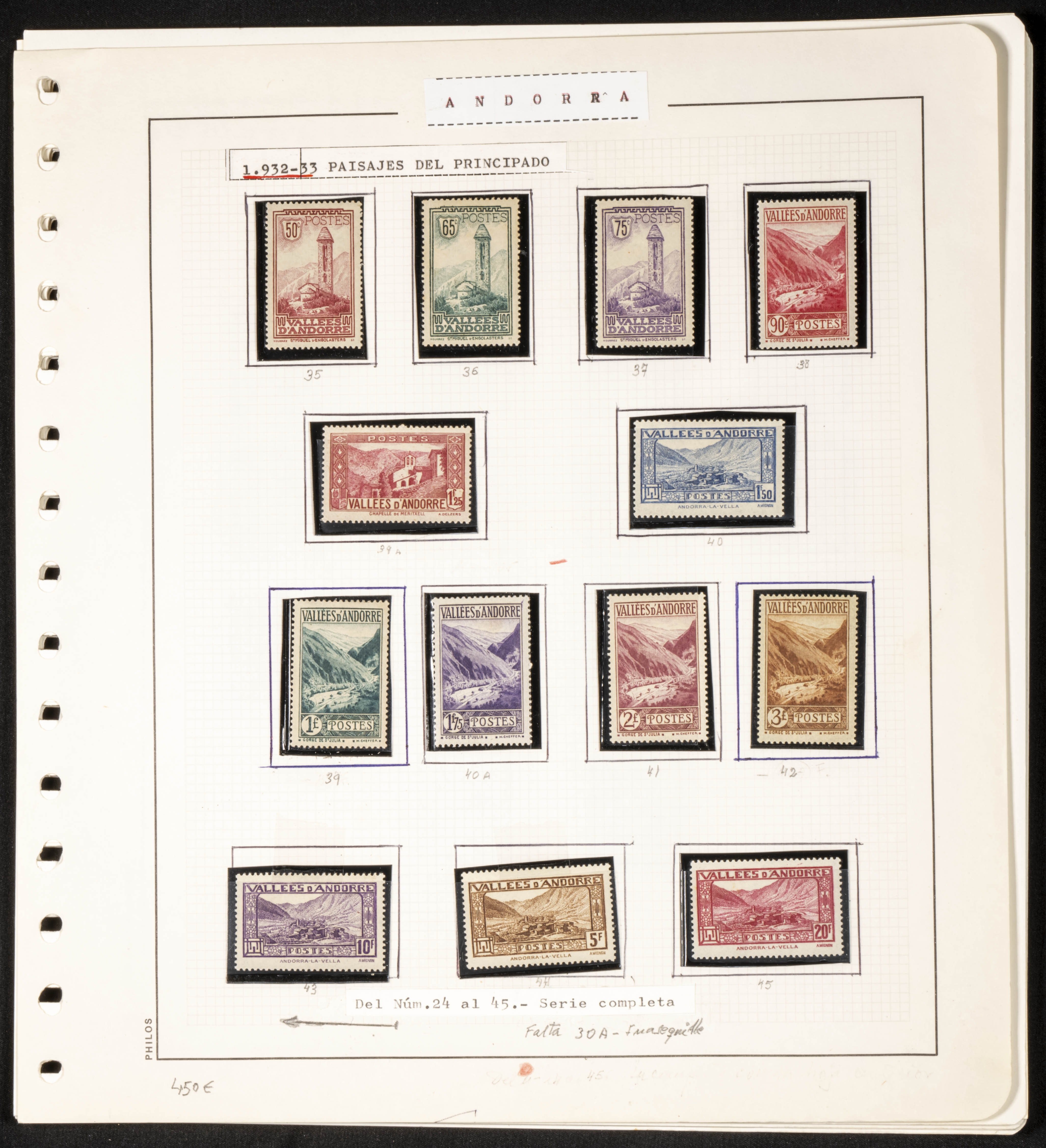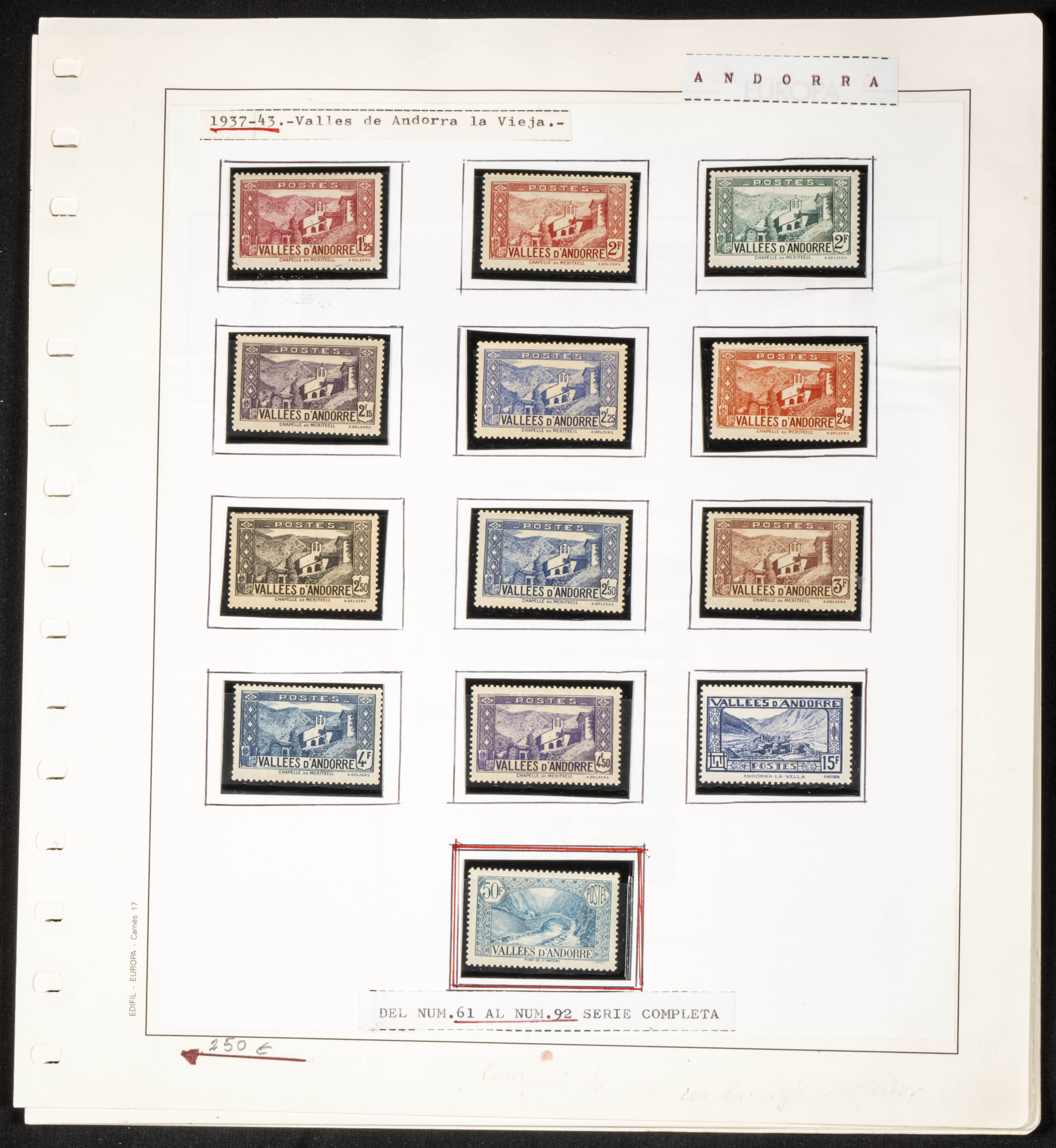 ★★/★(1932ca). Interesting collection of French Andorra between 1932 and 2006, new (some series used) most without hinges, includes the first two series of Landscapes from 1932 and 1937 and is missing the airmail. TO BE EXAMINED.