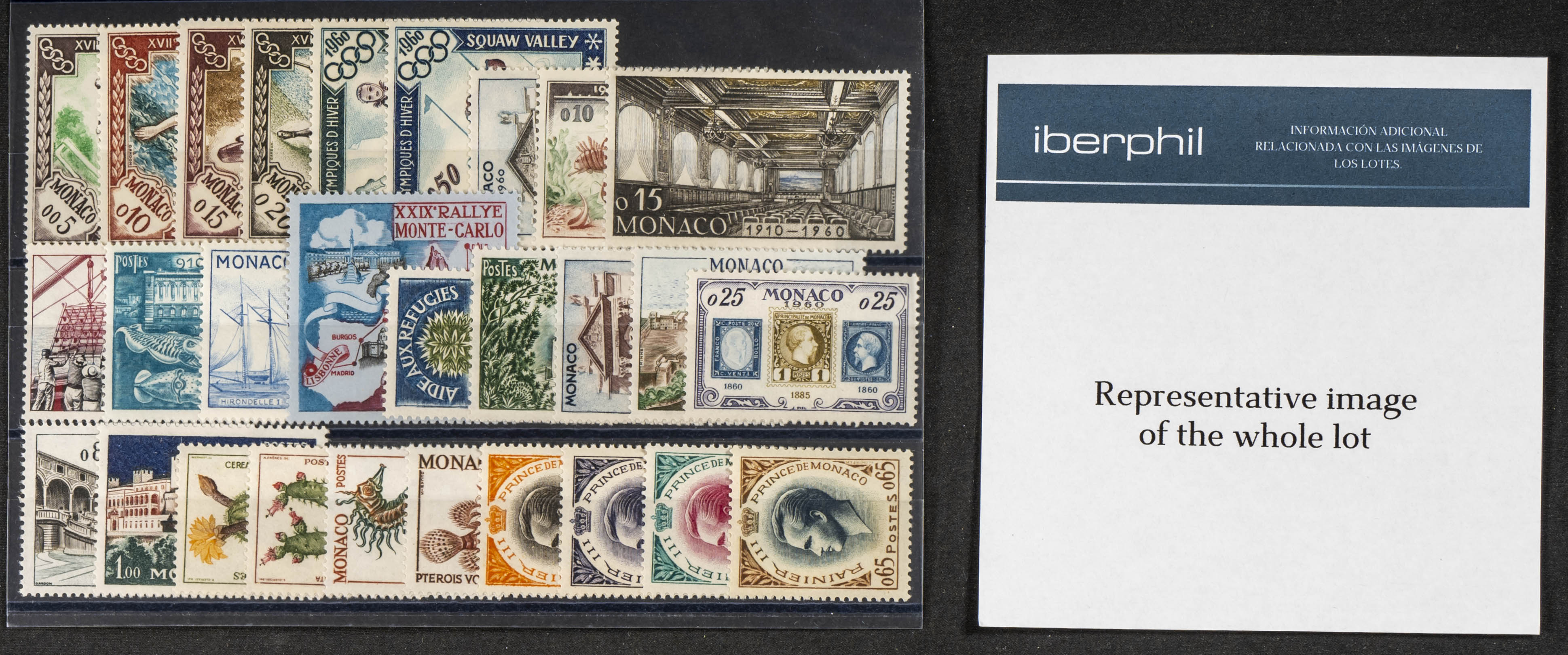 ★★1960. Set of seventeen complete years 1960 (regular mail only, basic thirteen values) from Monaco, in mint condition (mounted on tokens). TO BE EXAMINED. Yvert 2023: 1,337 Euros