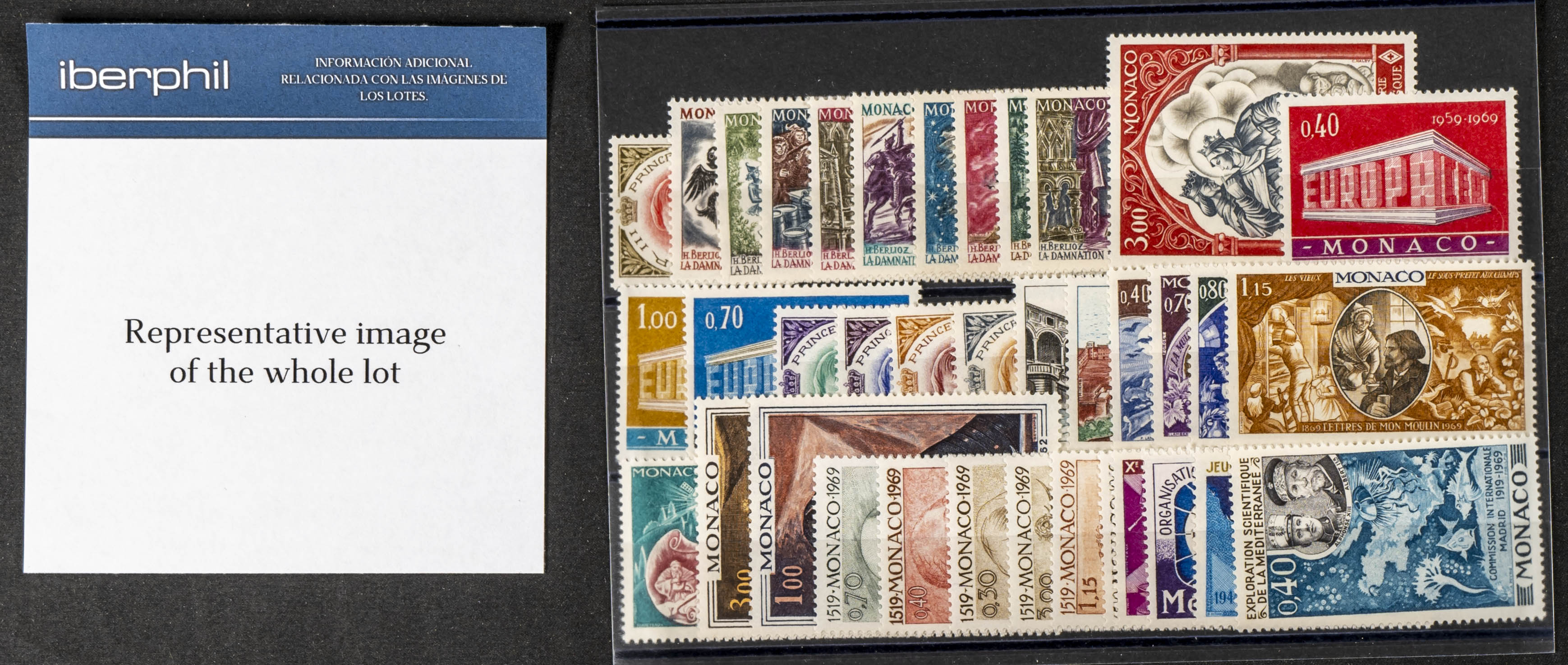 ★★Yvert 772/08(22). 1969. Set of twenty-two complete years 1969 (regular mail only, thirty-seven stamps) from Monaco, in mint condition (mounted on chips). TO BE EXAMINED. Yvert 2023: 1,100 Euros