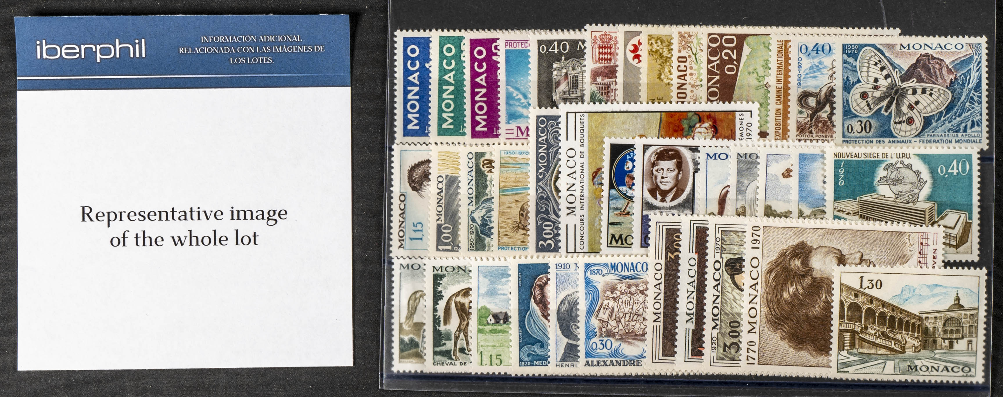 English ★★Yvert 809/46(22). 1970. Set of twenty-two complete years 1970 (regular mail only, thirty-eight stamps) from Monaco, in mint condition (mounted on chips). TO BE EXAMINED. Yvert 2023: 1,518 Euros