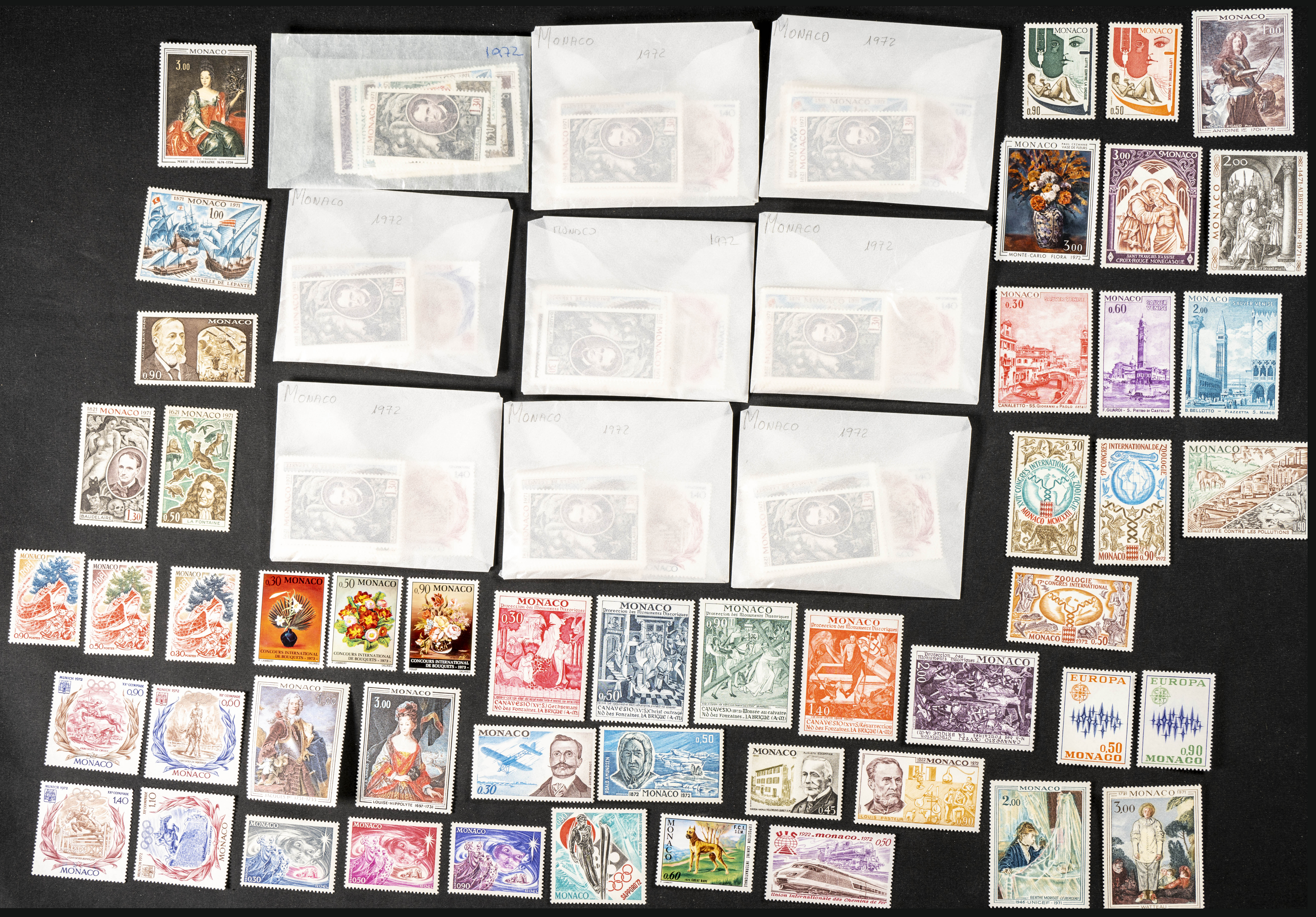 ★★Yvert 867/15(10). 1972. Set of eleven complete years 1972 (regular mail only) from Monaco, in mint condition (in glassine envelopes). TO BE EXAMINED. Yvert 2023: 720 Euros