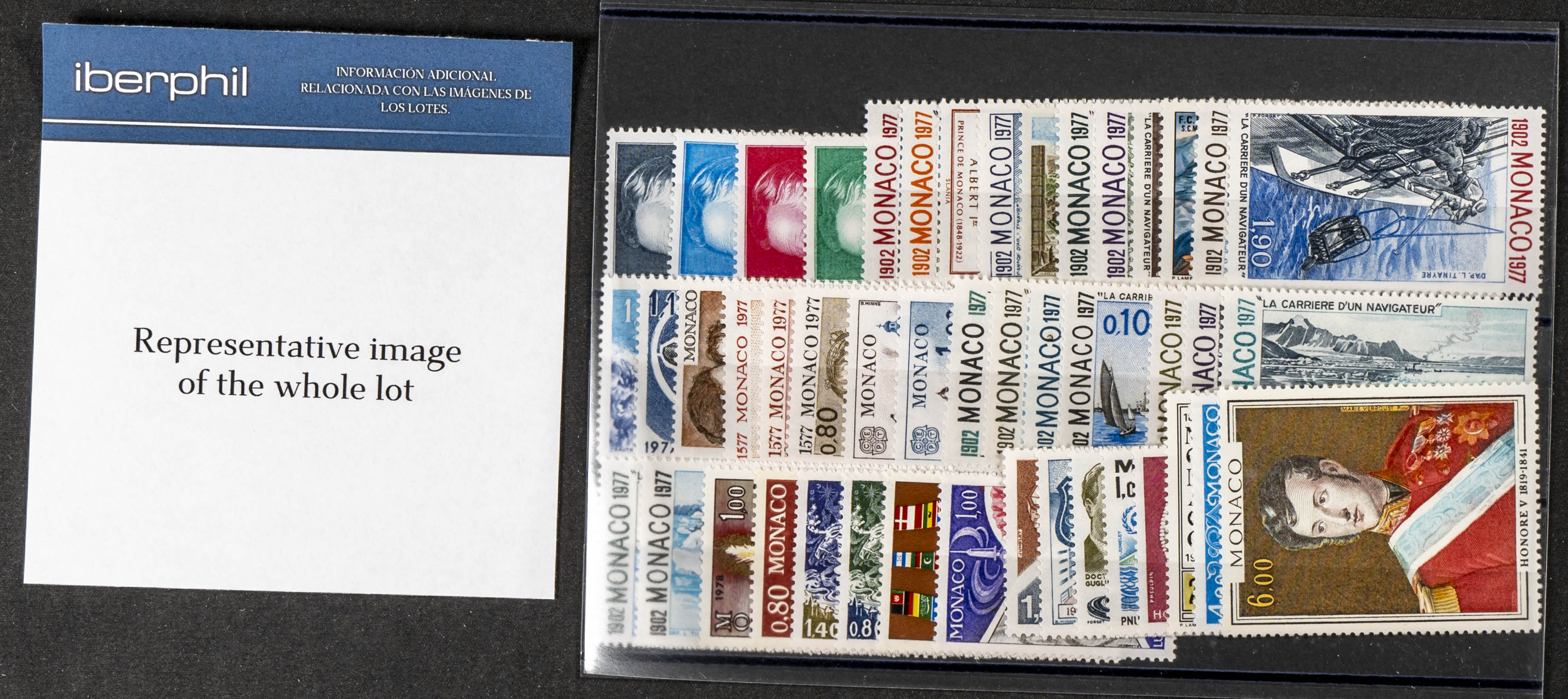 ★★Yvert 1079/24(21). 1977. Set of twenty-one complete years 1977 (regular mail only, forty-six stamps) from Monaco, in mint condition (mounted on chips). TO BE EXAMINED. Yvert 2023: 2,142 Euros