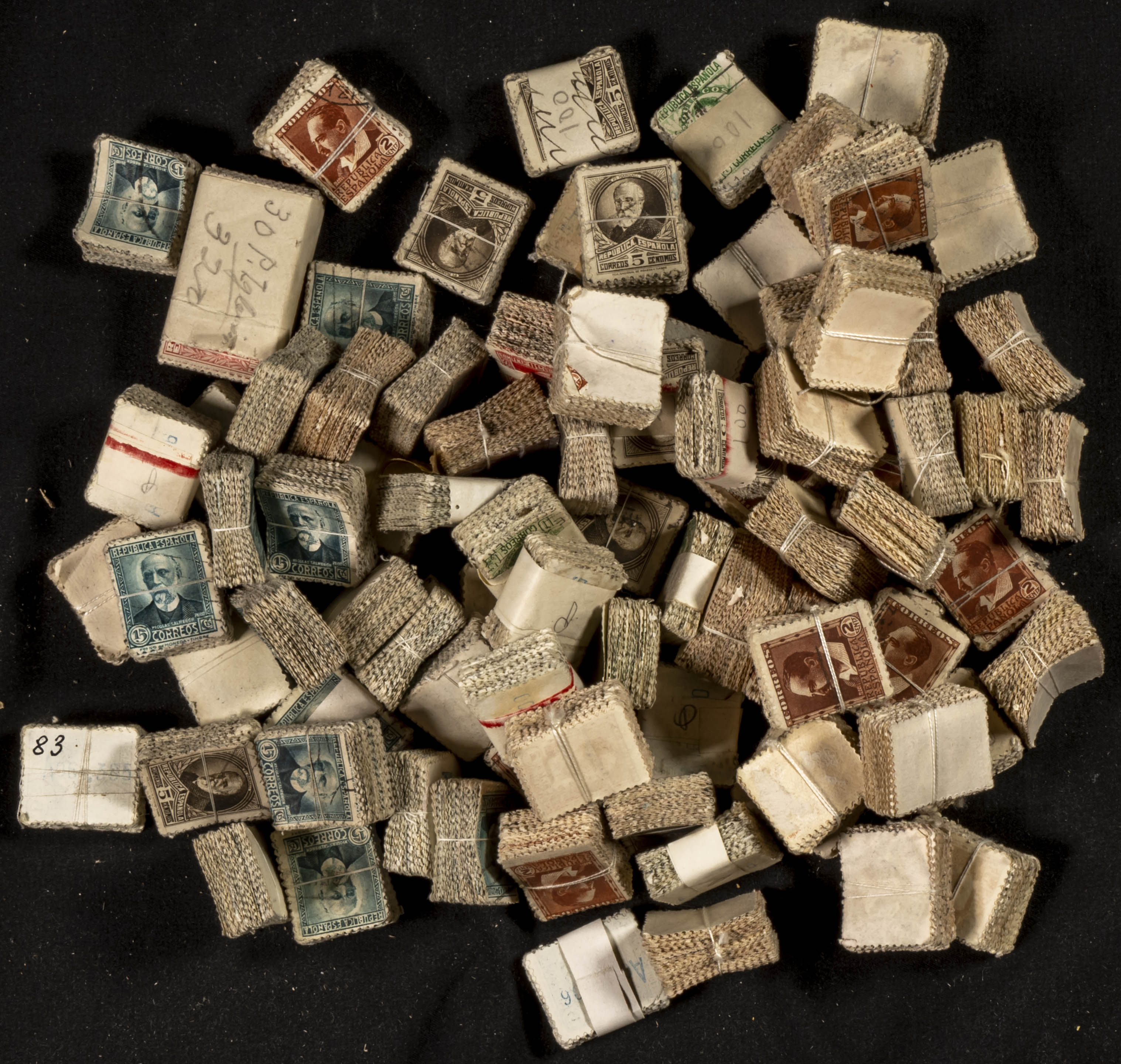 ★/(1900ca). Spectacular "virgin" and "untouched" accumulation from an old dealer from the mid-twentieth century, composed of thousands and thousands of stamps presented in "unopened tablets" or in small envelopes, very chaotic and sure to bring pleasant surprises to its future owner, Vaquer República and characters highlight. ESSENTIAL TO EXAMINE.