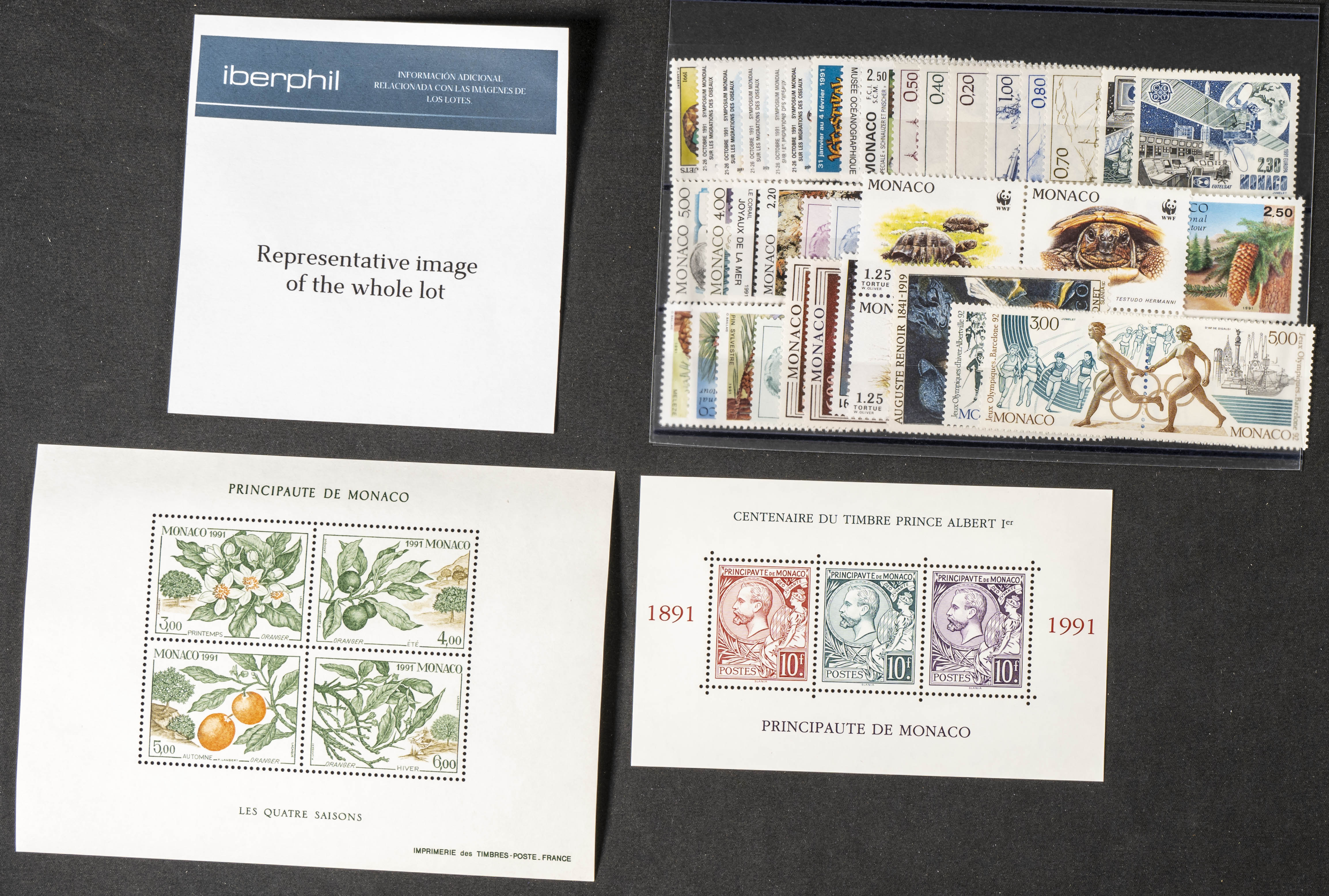 ★★Yvert 1753/09(7). 1991. Set of seven complete years (including block sets) from 1991 from Monaco (mounted on tokens). TO BE EXAMINED. Yvert 2023: 1,001 Euros