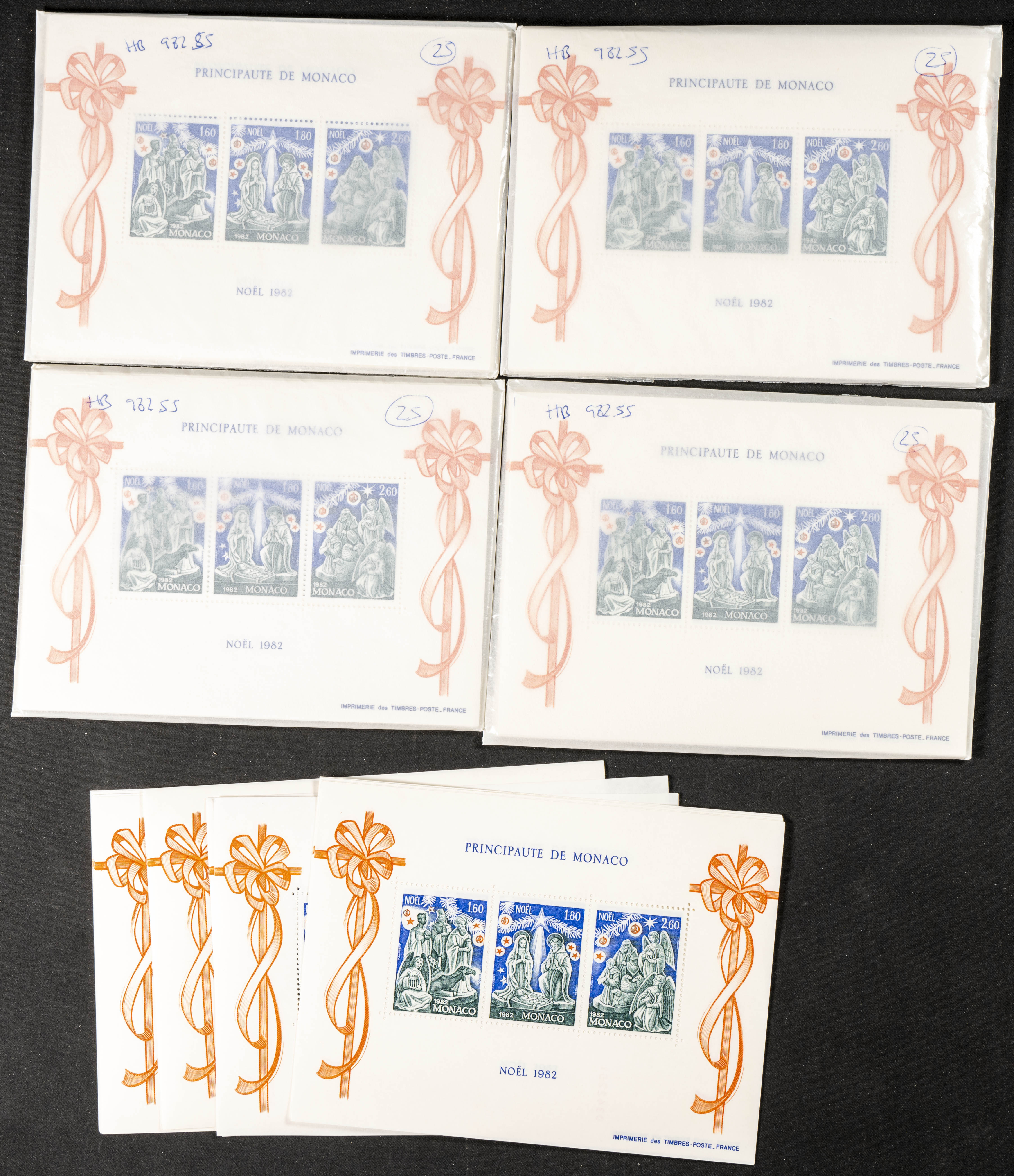 ★★Yvert HB23(115). 1982. Set of one hundred and fifteen sheets of CHRISTMAS block from 1982 from Monaco. TO BE EXAMINED. Yvert 2023: 575 Euros