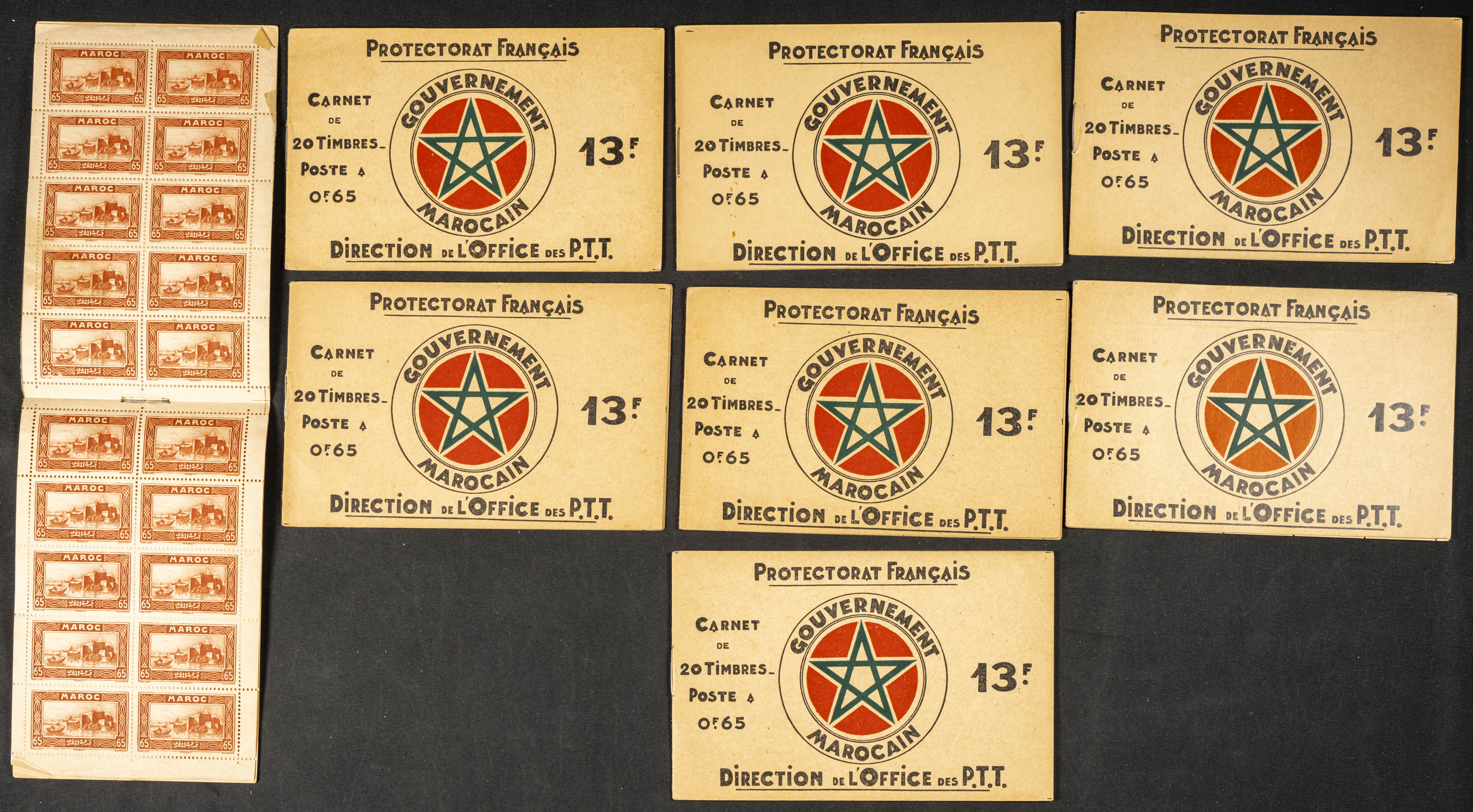 ★★/★ 140a(80). 1933. Set of eight 13 fr French Morocco carnets with twenty stamps of 65 cts each (eighty pairs of carnets) from 1933, in mint condition. TO BE EXAMINED. Edifil 2024: 1,200 Euros