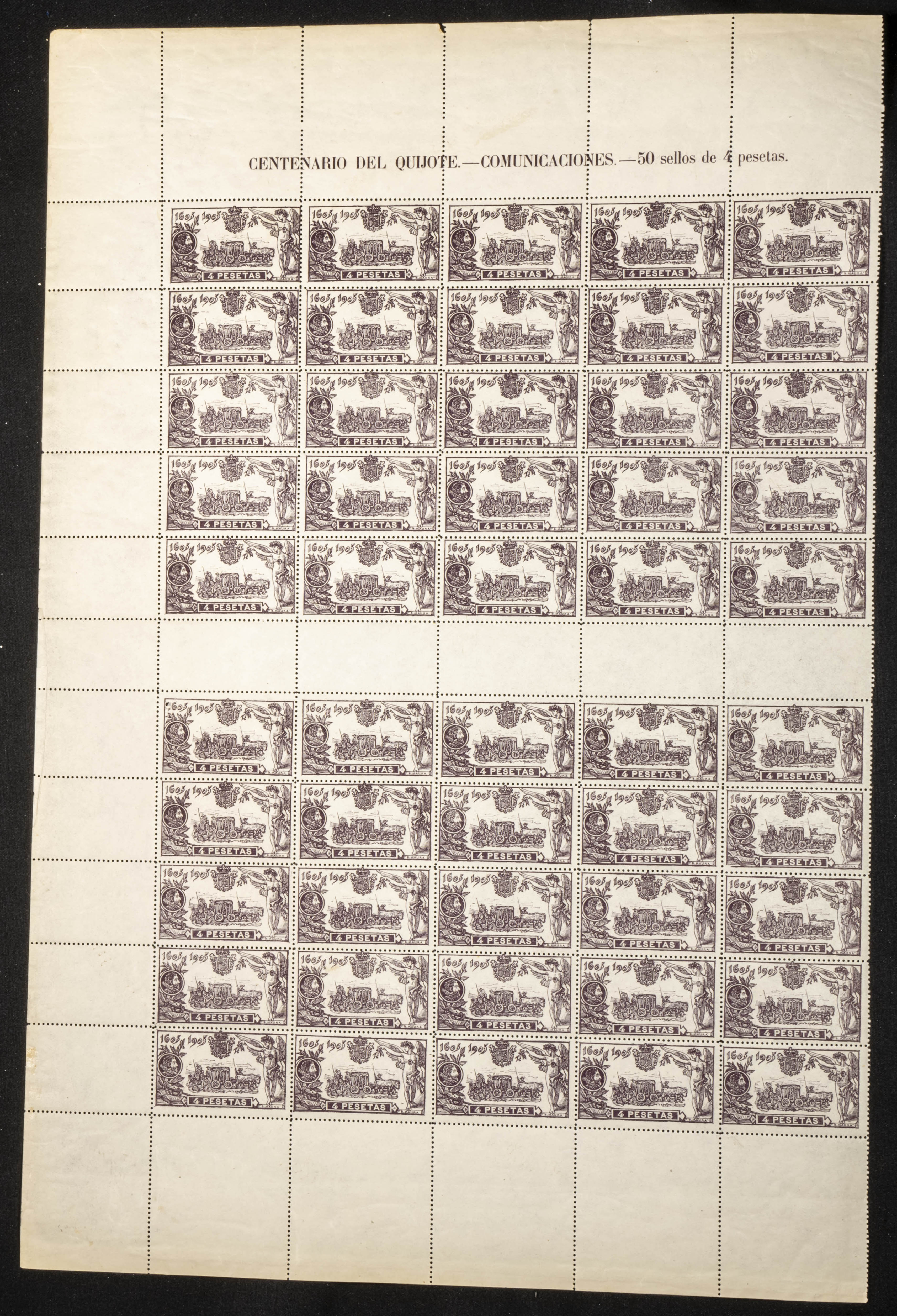 English ★★ 265(50). 1905. 4 pts violet, fifty stamps in sheet (without right margin). QUIJOTE (good quality in general). MAGNIFICENT. Edifil 2025: 12,250 Euros