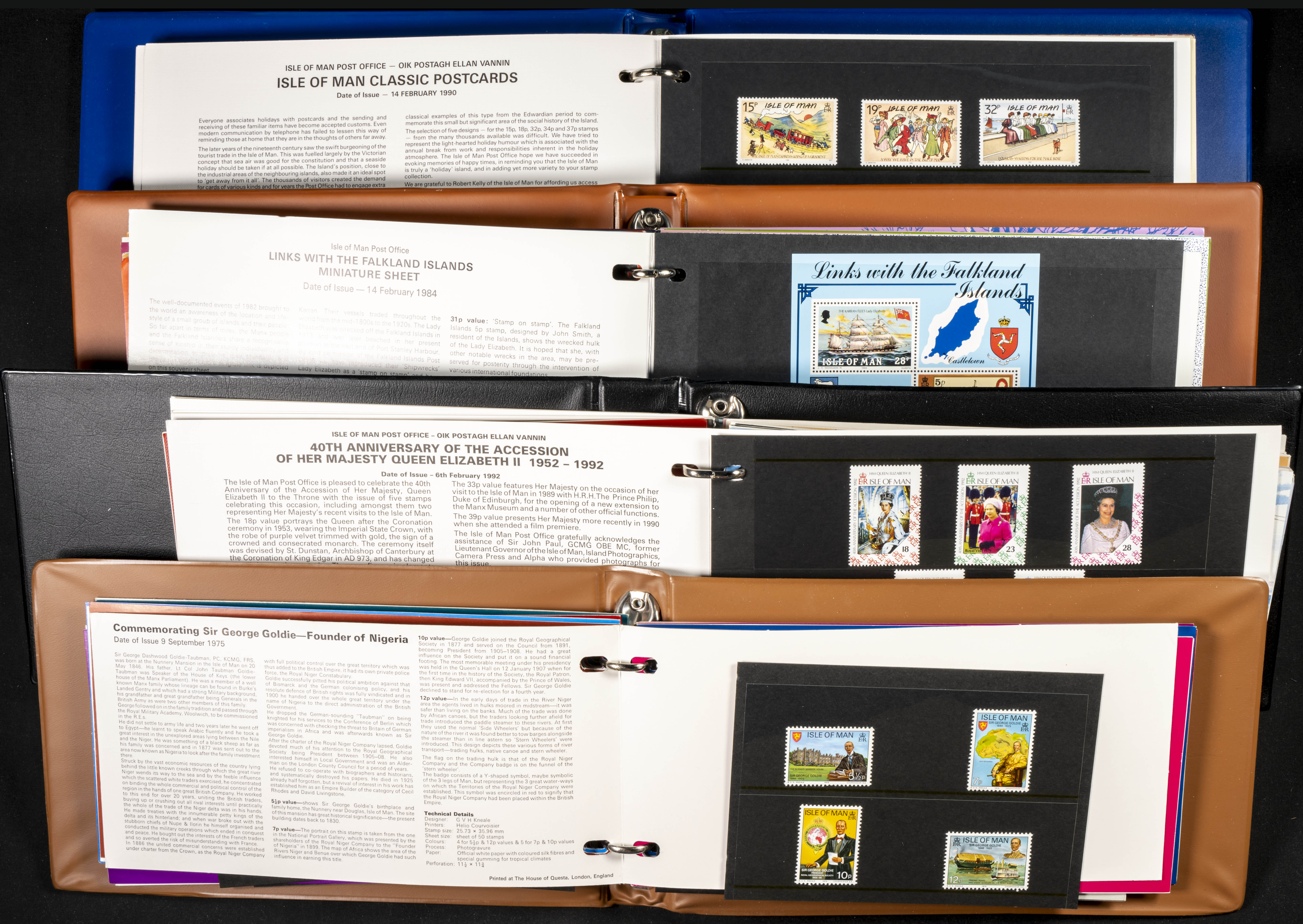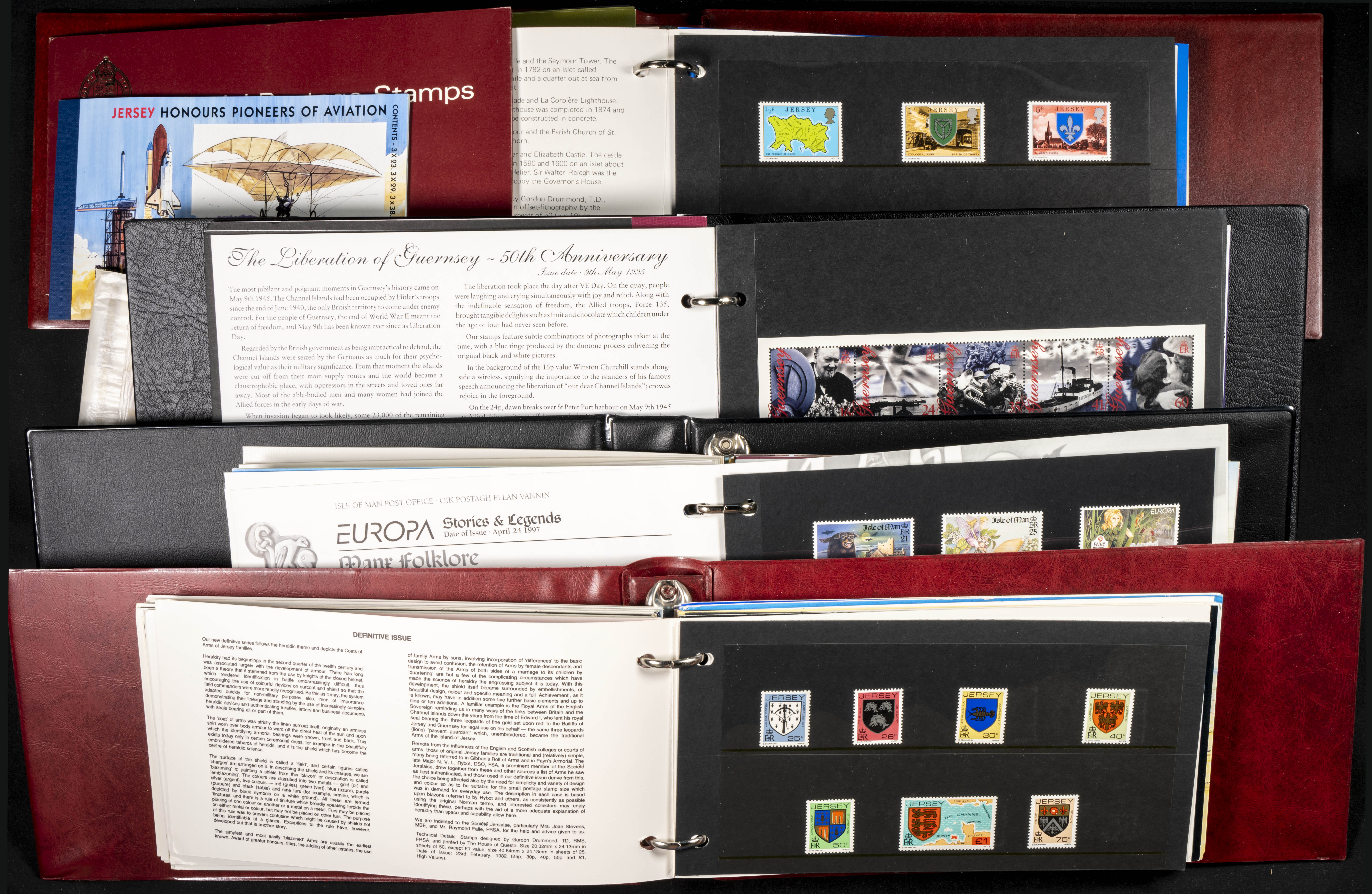 ★★(1970ca). Complete set of Channel Islands (Guernsey, Jersey and Man) series in mail folders, most of them dated between the 1970s and 1990s, in new condition. HIGH CATALOG VALUE. WORTH EXAMINING.
