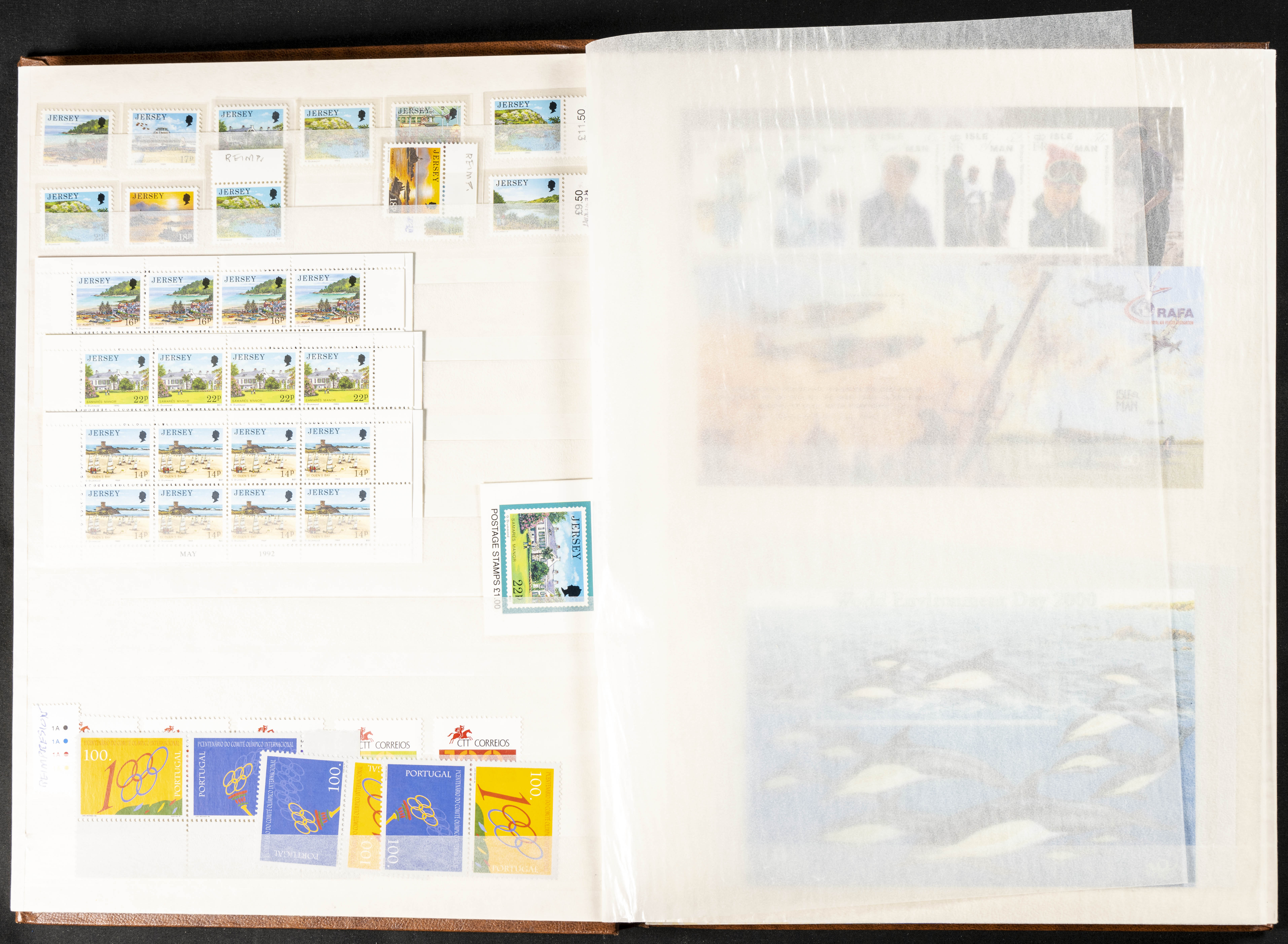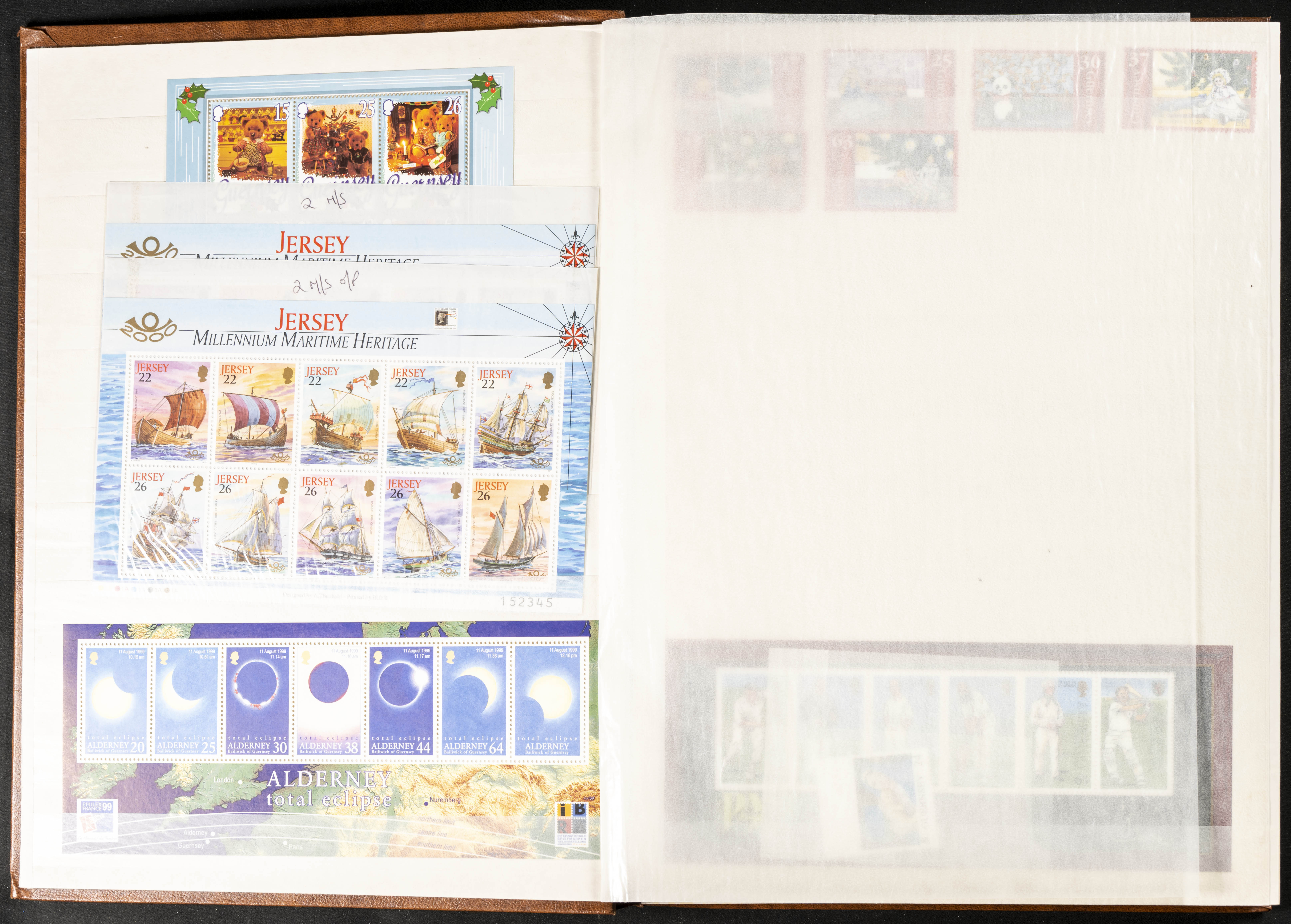 ★★(1975ca). Set of hundreds of complete series, block sheets, mini-sheets and Guernsey, Jersey and Man cards, most of them dated between 1975 and 2002 and with some repetitions, in new condition. HIGH CATALOG VALUE. WORTH EXAMINING.