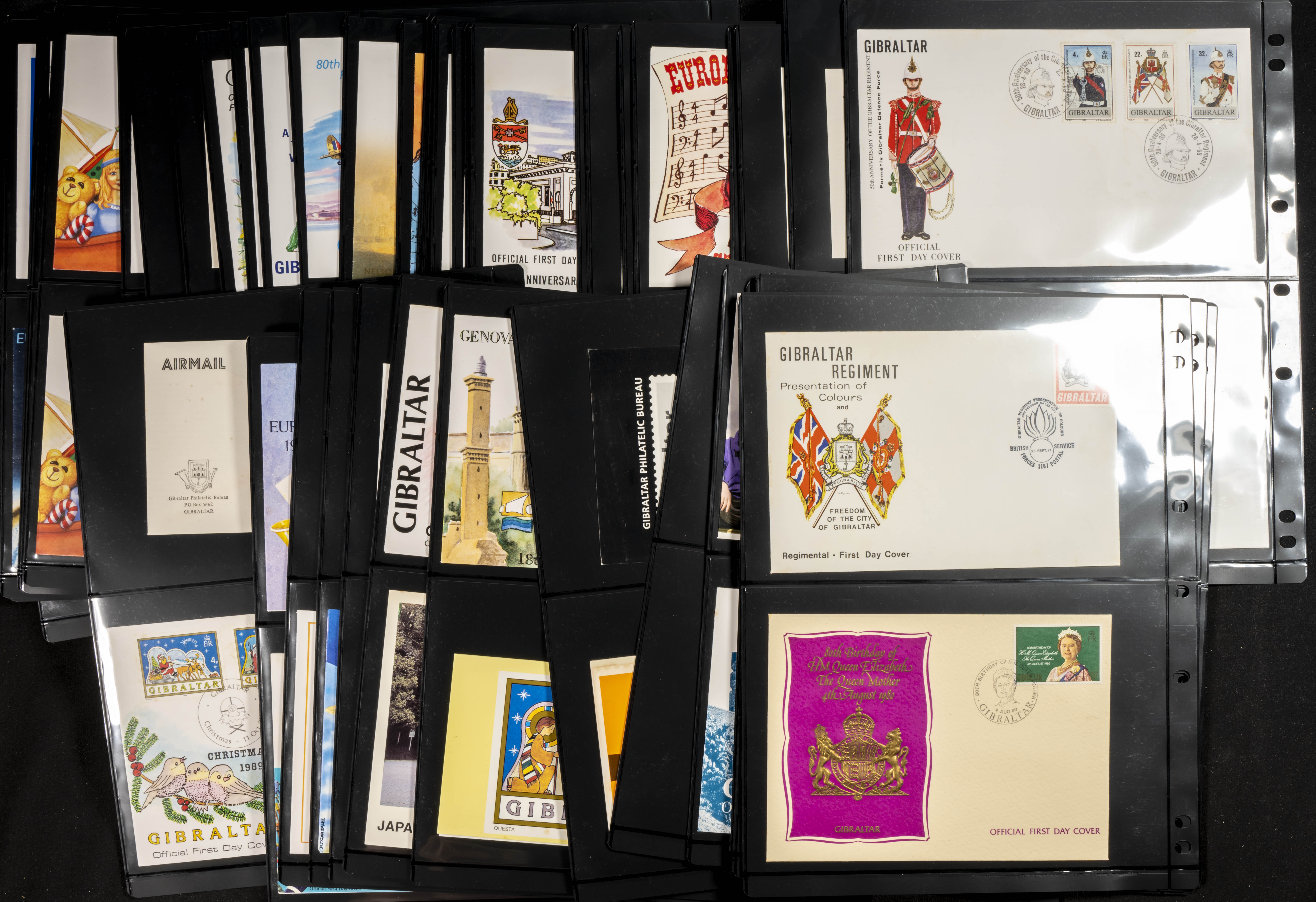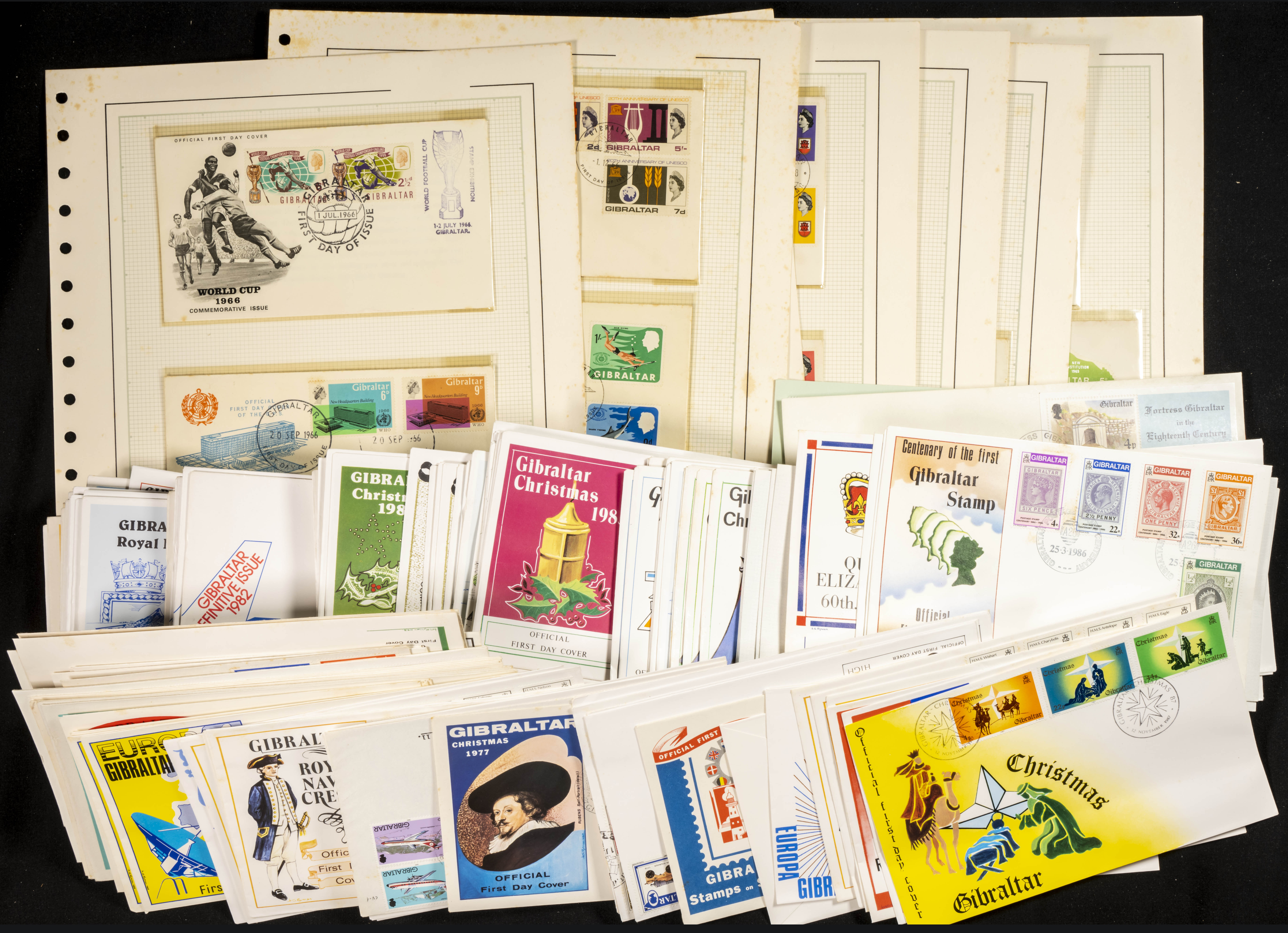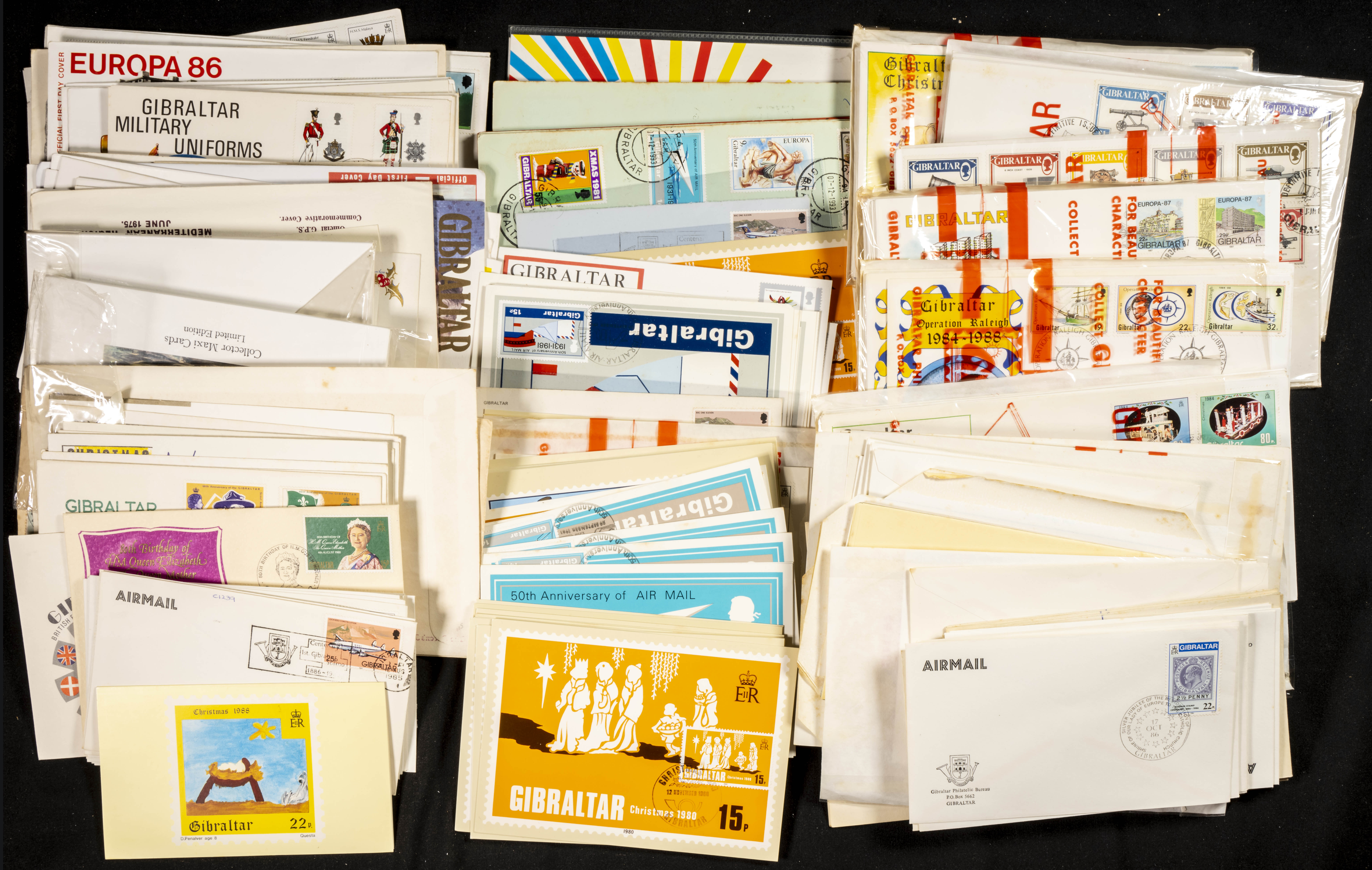 English (1960ca). Interesting set of hundreds of Gibraltar First Day Covers from 1960 to 2002, some circulated or with special commemorative postmarks, plus some repeats. WELL EXAMINED.