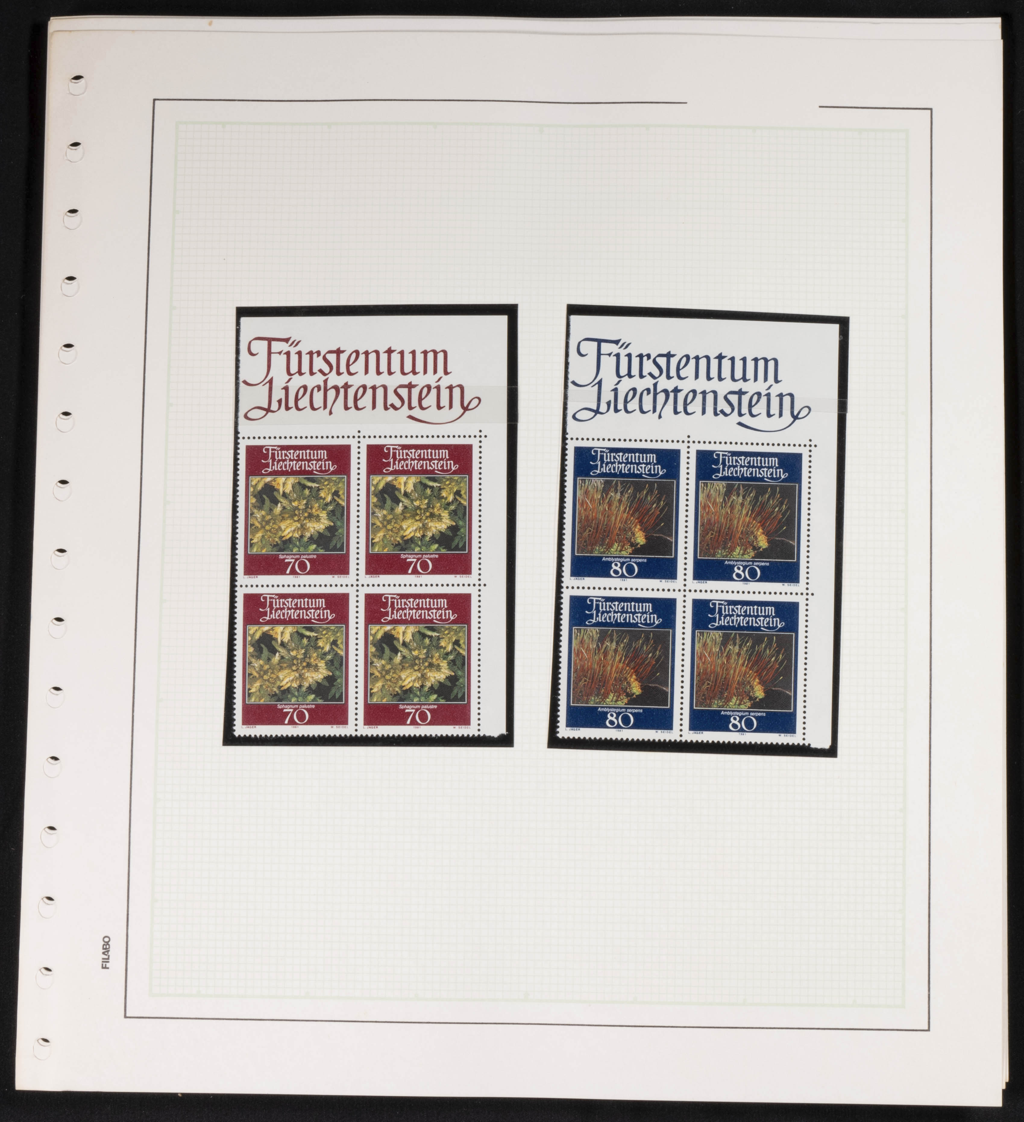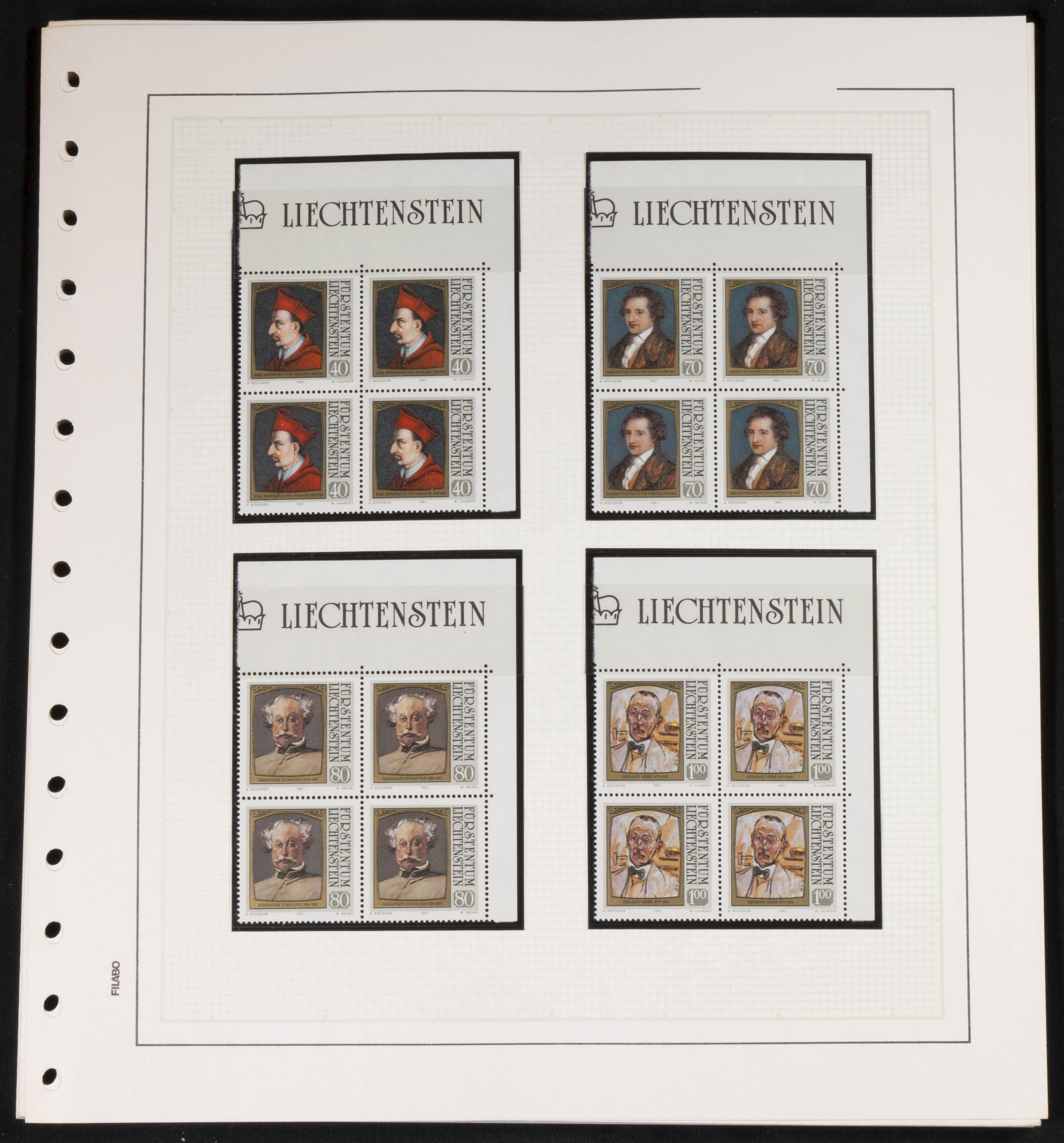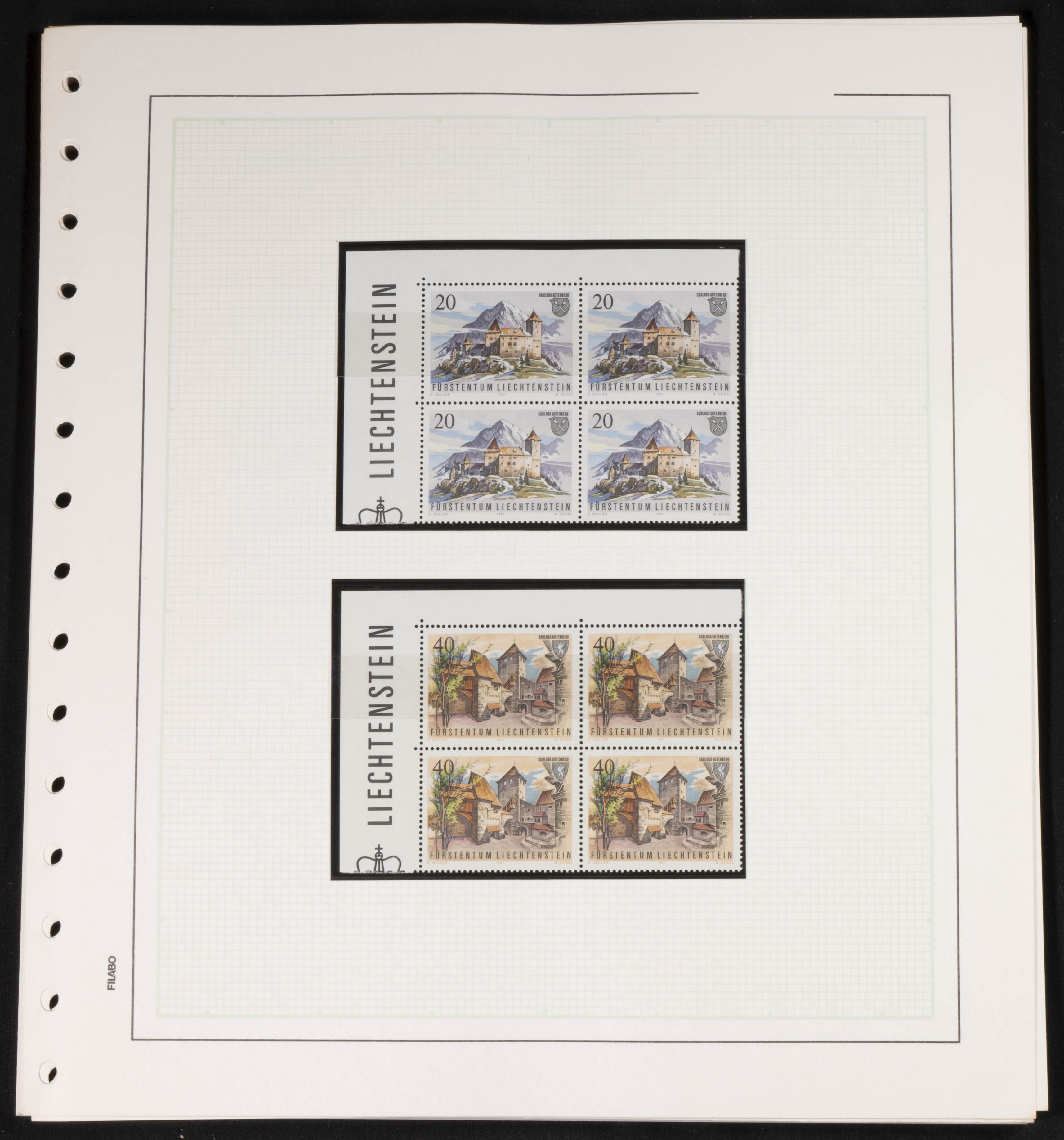 ★★(1976ca). Very complete collection of Liechtenstein between 1981 and 1993, in blocks of four and mint and including a collection of one stamp of each (some repeated) between 1976 and 2005, in mint. HIGH CATALOG VALUE. WORTH EXAMINING.