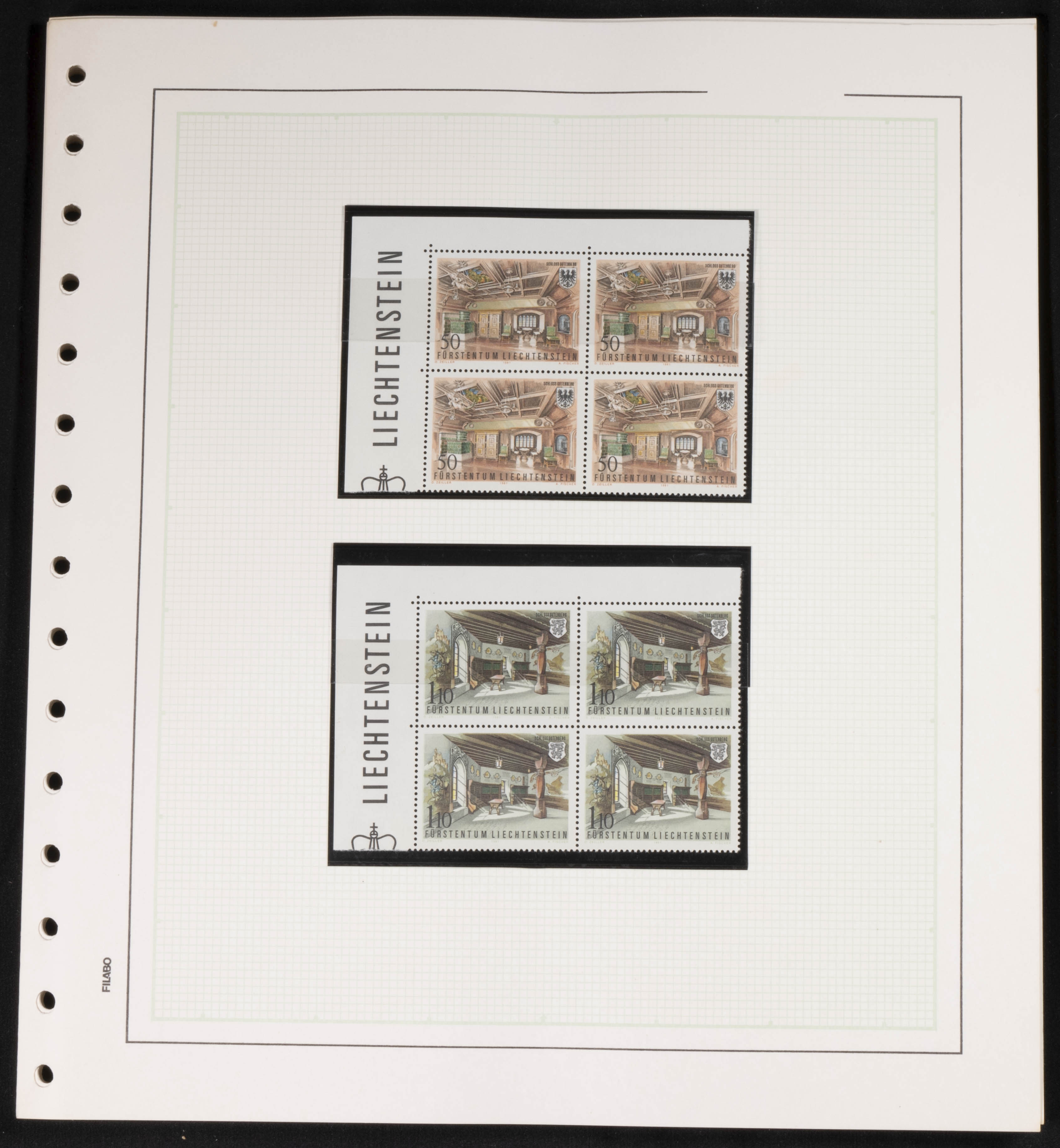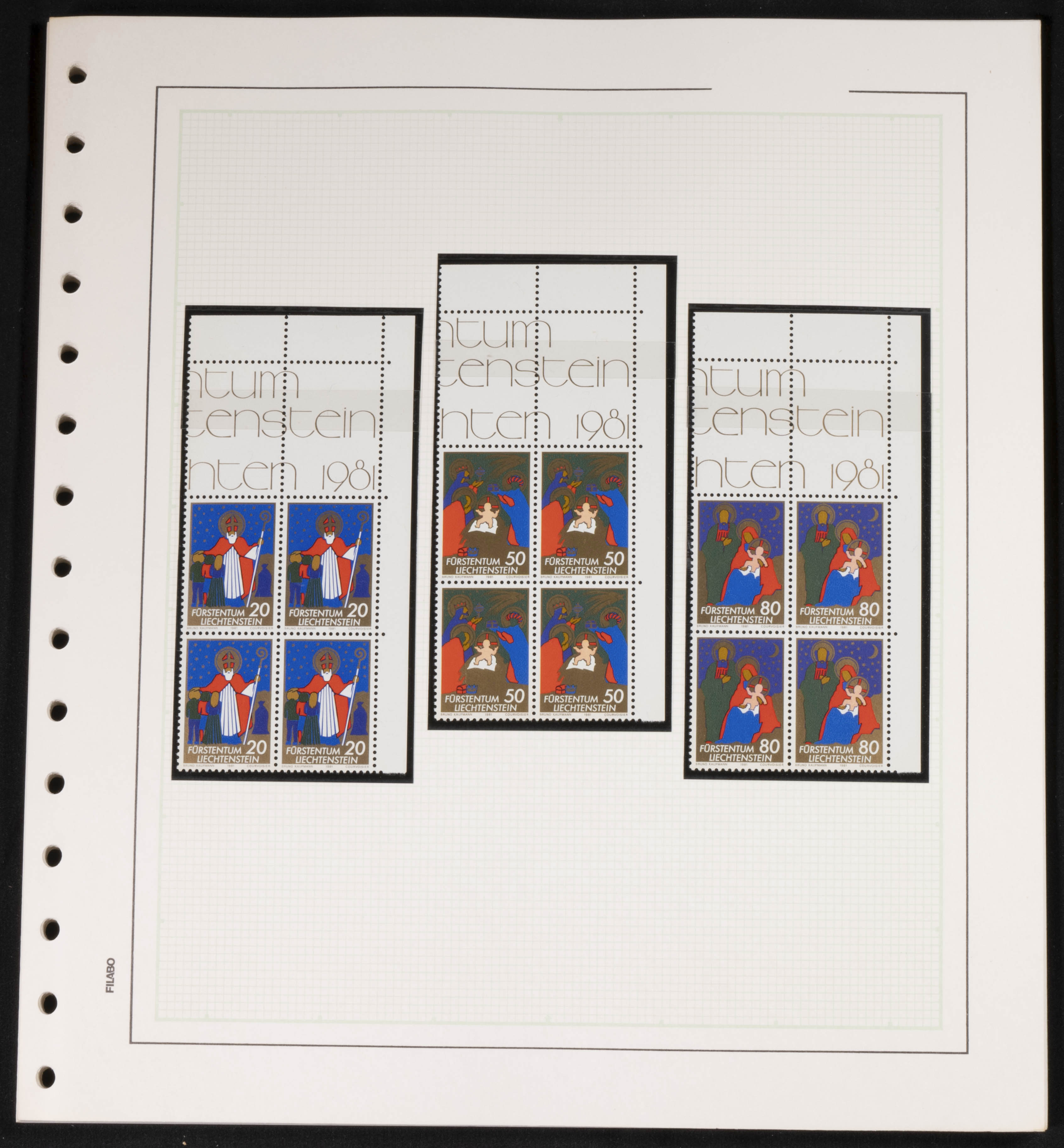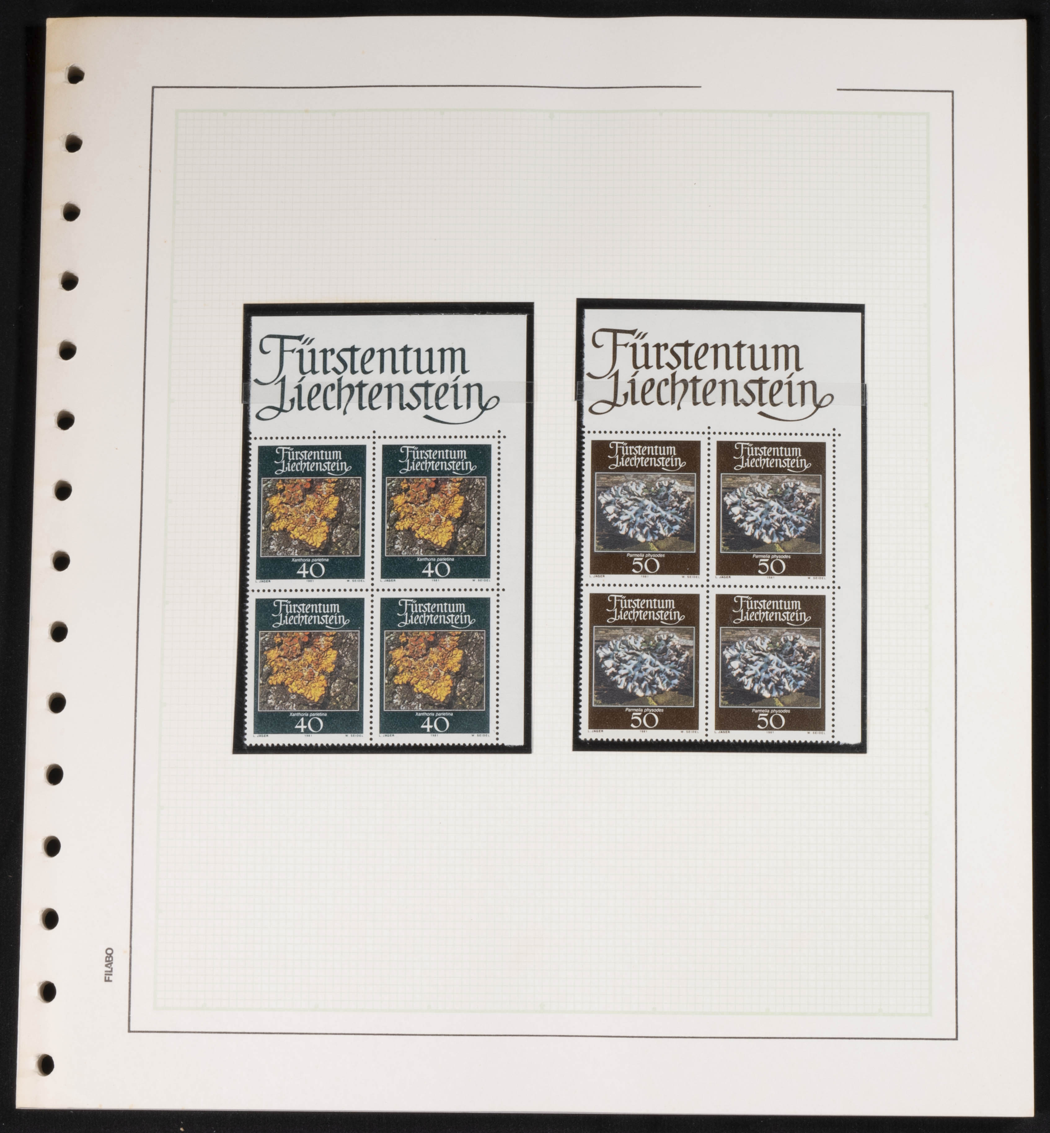 ★★(1976ca). Very complete collection of Liechtenstein between 1981 and 1993, in blocks of four and mint and including a collection of one stamp of each (some repeated) between 1976 and 2005, in mint. HIGH CATALOG VALUE. WORTH EXAMINING.
