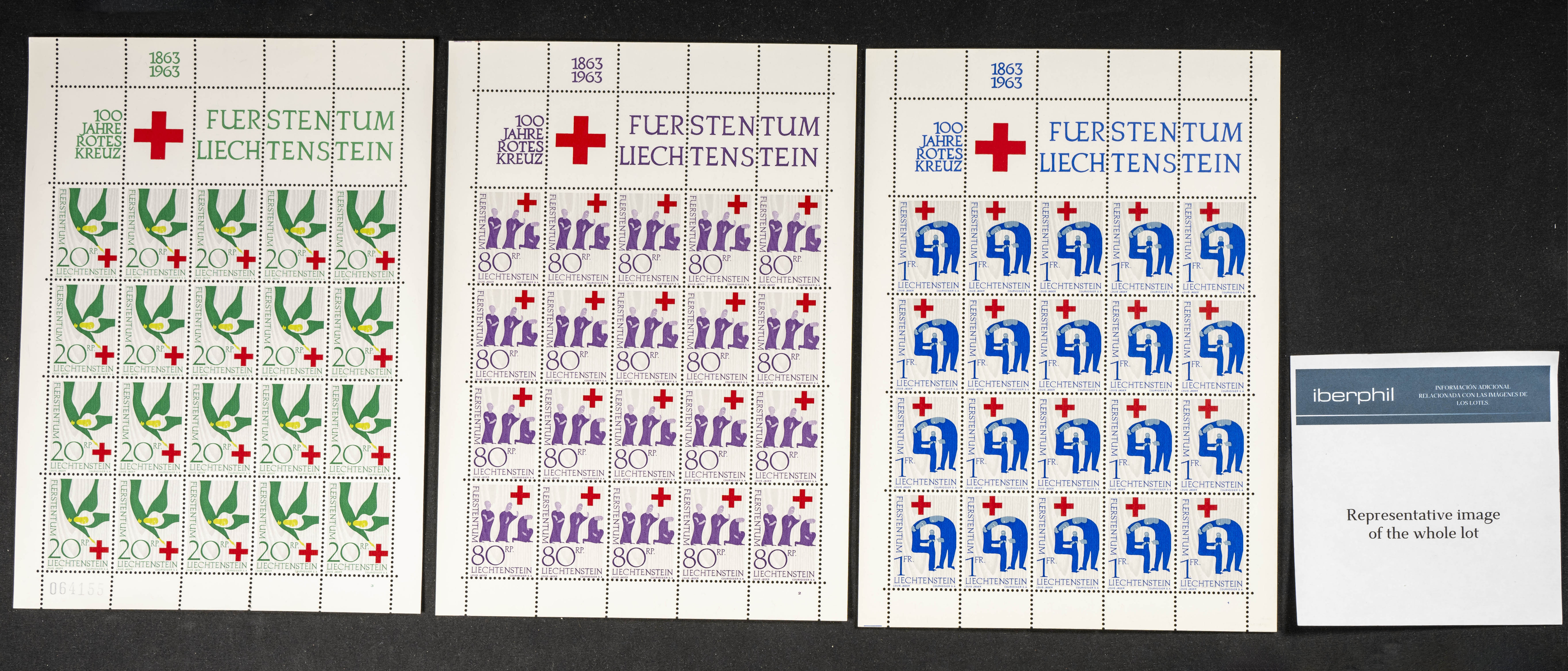 ★★Yvert 378/80(560). 1963. Set of five hundred and sixty complete series (Red Cross) of Liechtenstein 1963, in mint condition and in sheets. TO BE EXAMINED. Yvert 2023: 1,540 Euros