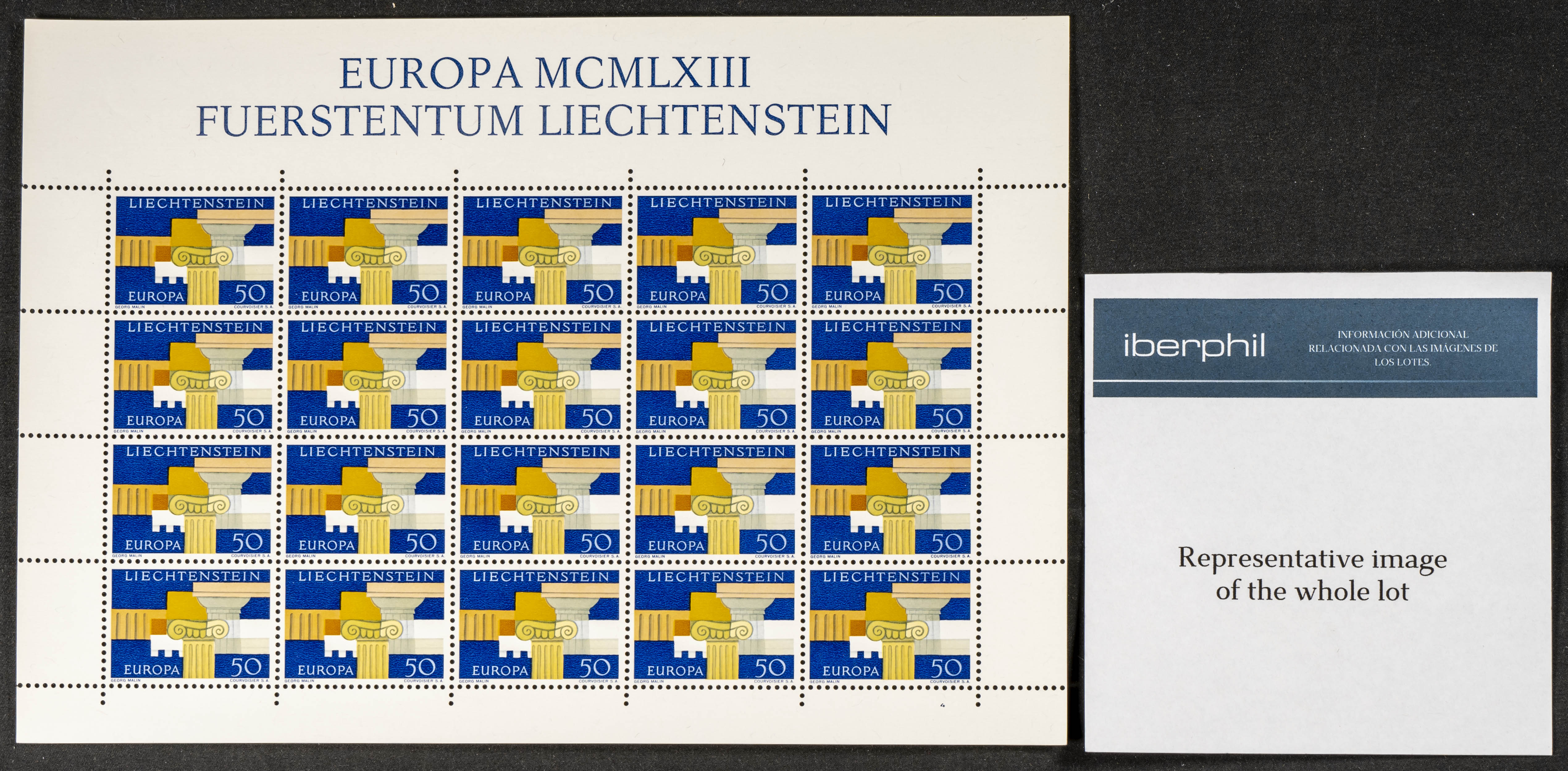 ★★Yvert 381(600). 1963. Set of six hundred stamps (European issue) from Liechtenstein 1963, in mint condition and in sheets. TO BE EXAMINED. Yvert 2023: 900 Euros
