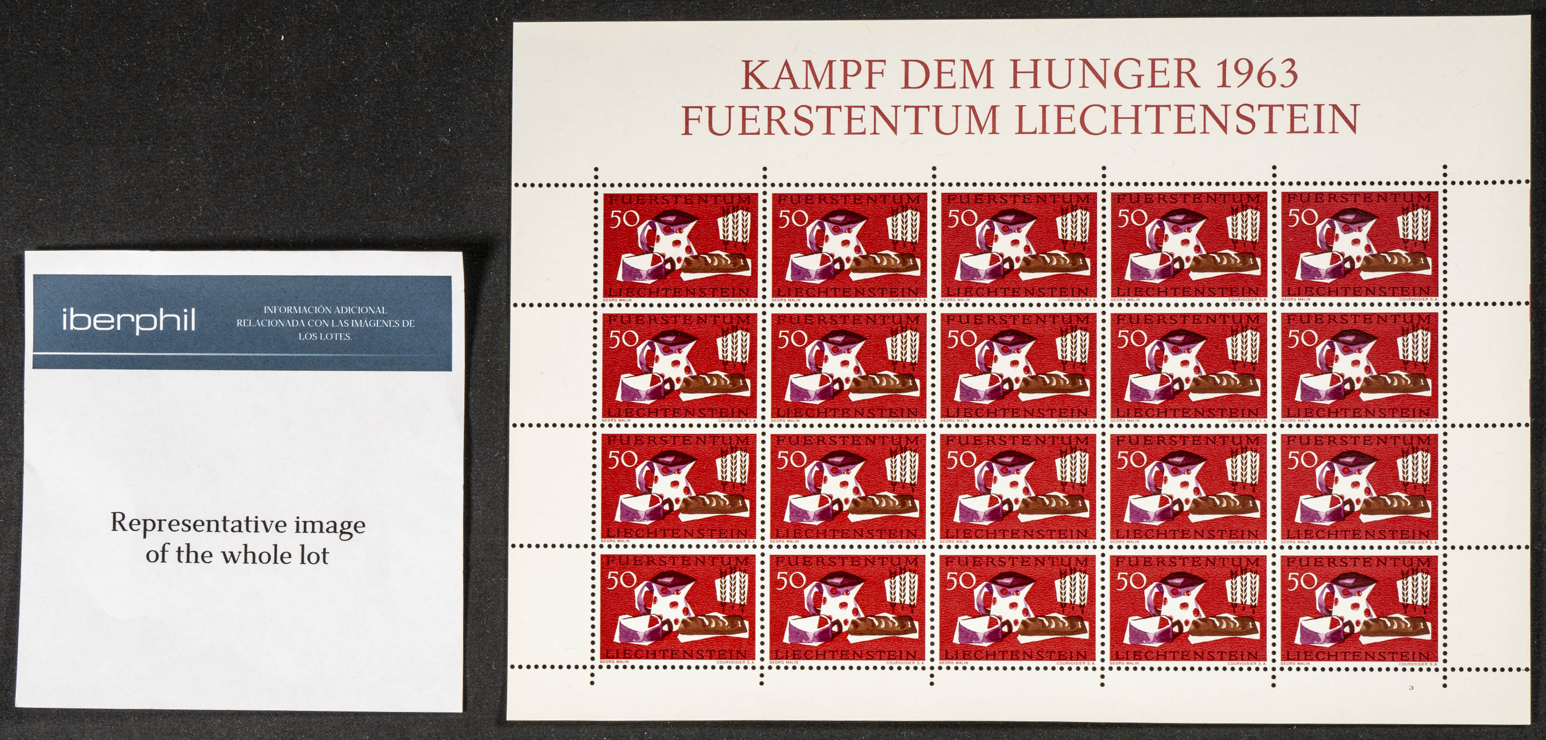 ★★Yvert 382(870). 1963. Set of eight hundred and seventy stamps (Campaign Against Hunger) from Liechtenstein 1963, in mint condition and in sheets. TO BE EXAMINED. Yvert 2023: 870 Euros