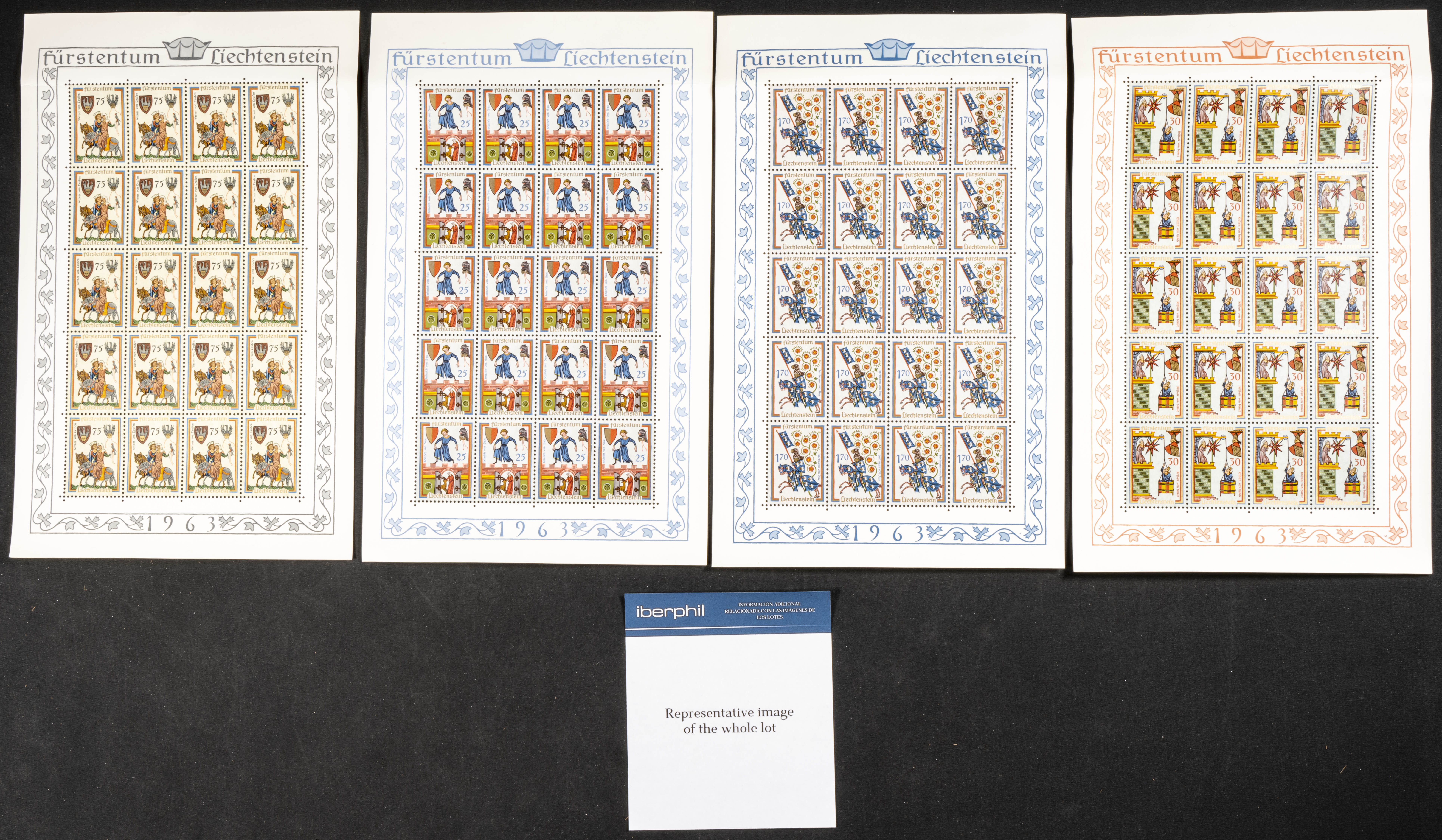 ★★Yvert 383/86(600). 1963. Set of six hundred complete series (Troubadours) from Liechtenstein 1963, new and in sheets. TO BE EXAMINED. Yvert 2023: 2,400 Euros