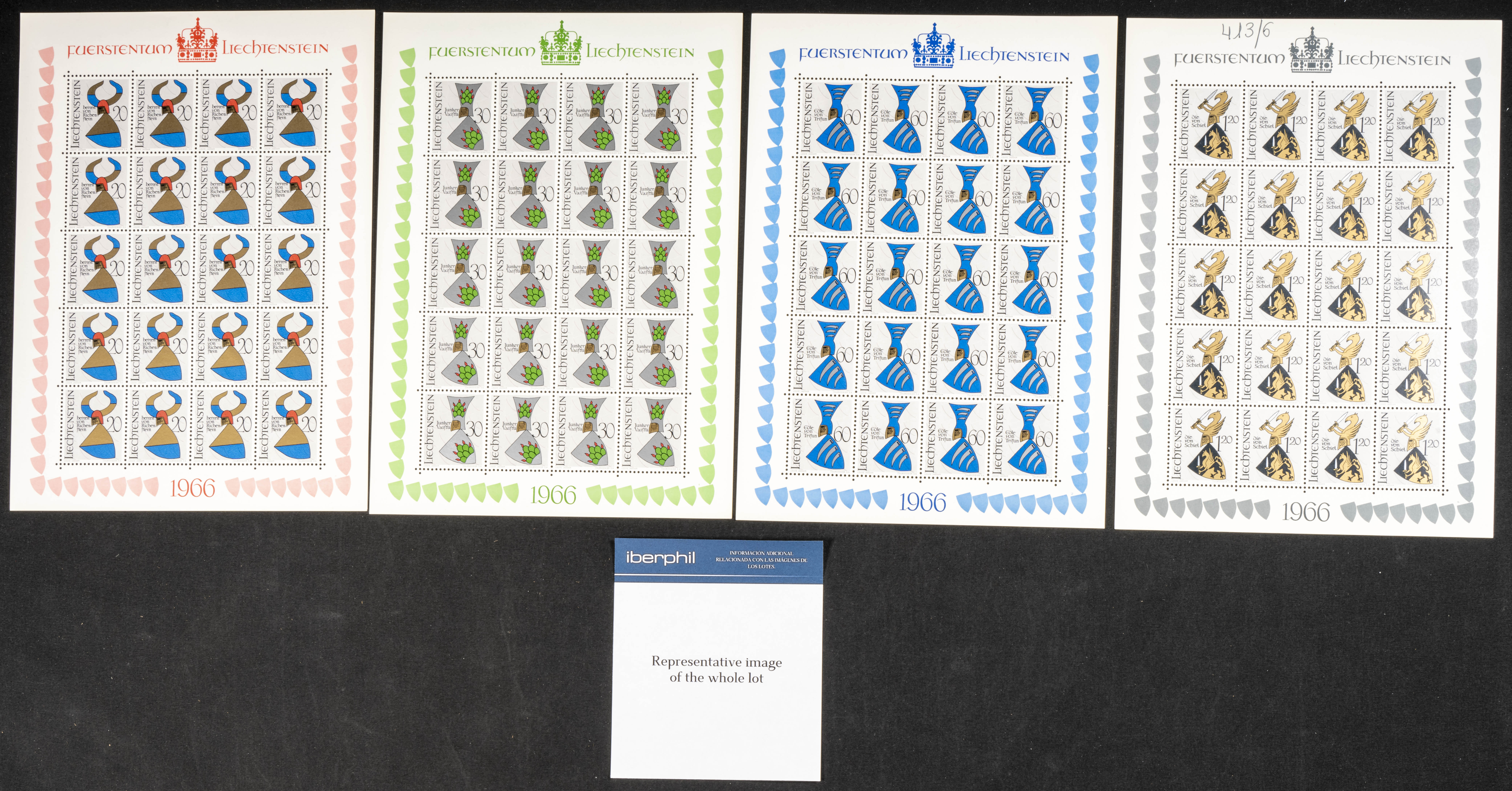 ★★Yvert 413/16(600). 1966. Set of six hundred complete series (Coats of Arms) of Liechtenstein 1966, in mint condition and most in sheets. TO BE EXAMINED. Yvert 2023: 1,800 Euros