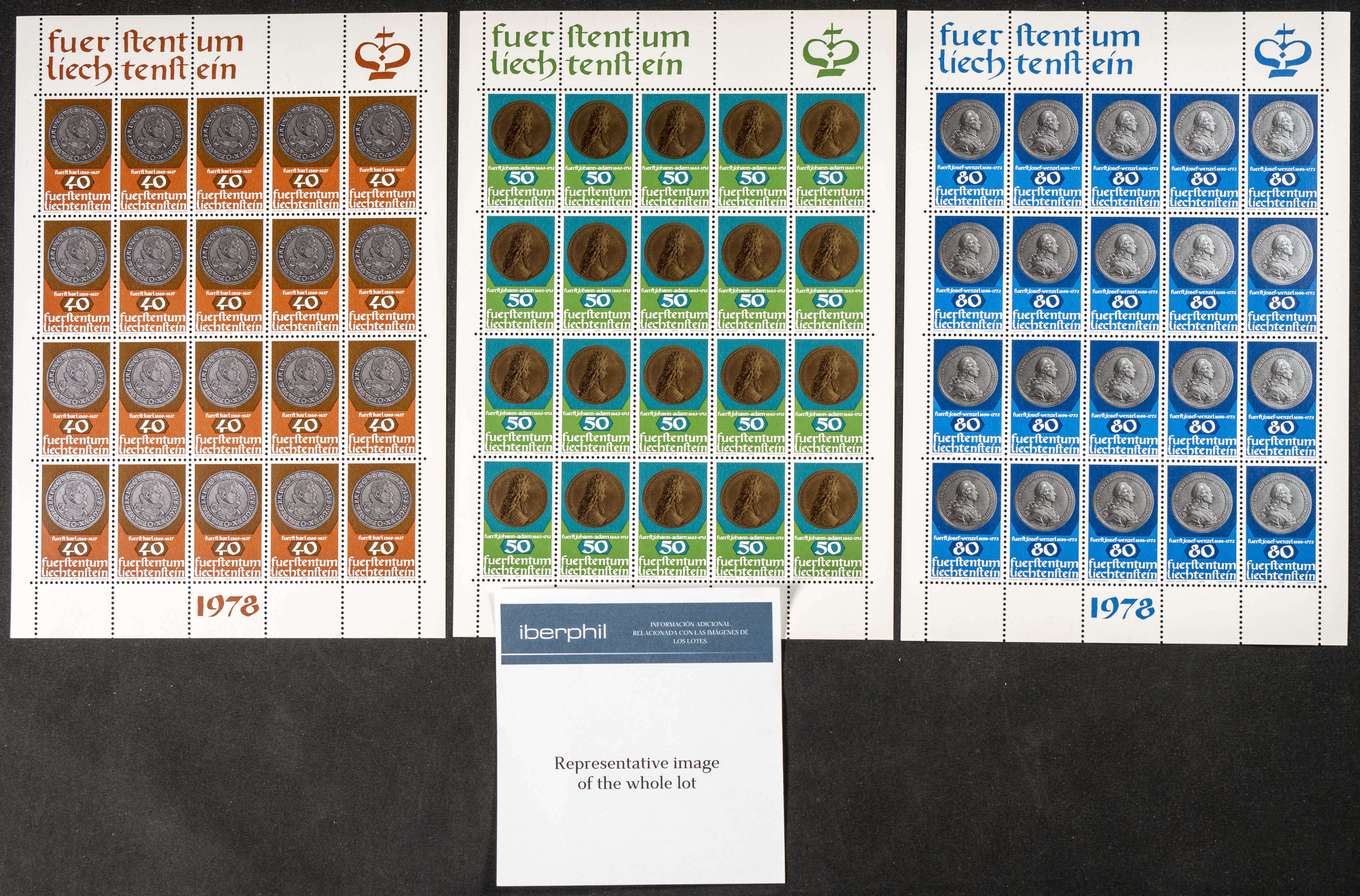English ★★Yvert 651/53(140). 1978. Set of one hundred and forty complete series of 1978 COINS from Liechtenstein. TO BE EXAMINED. Yvert 2019: 385 Euros