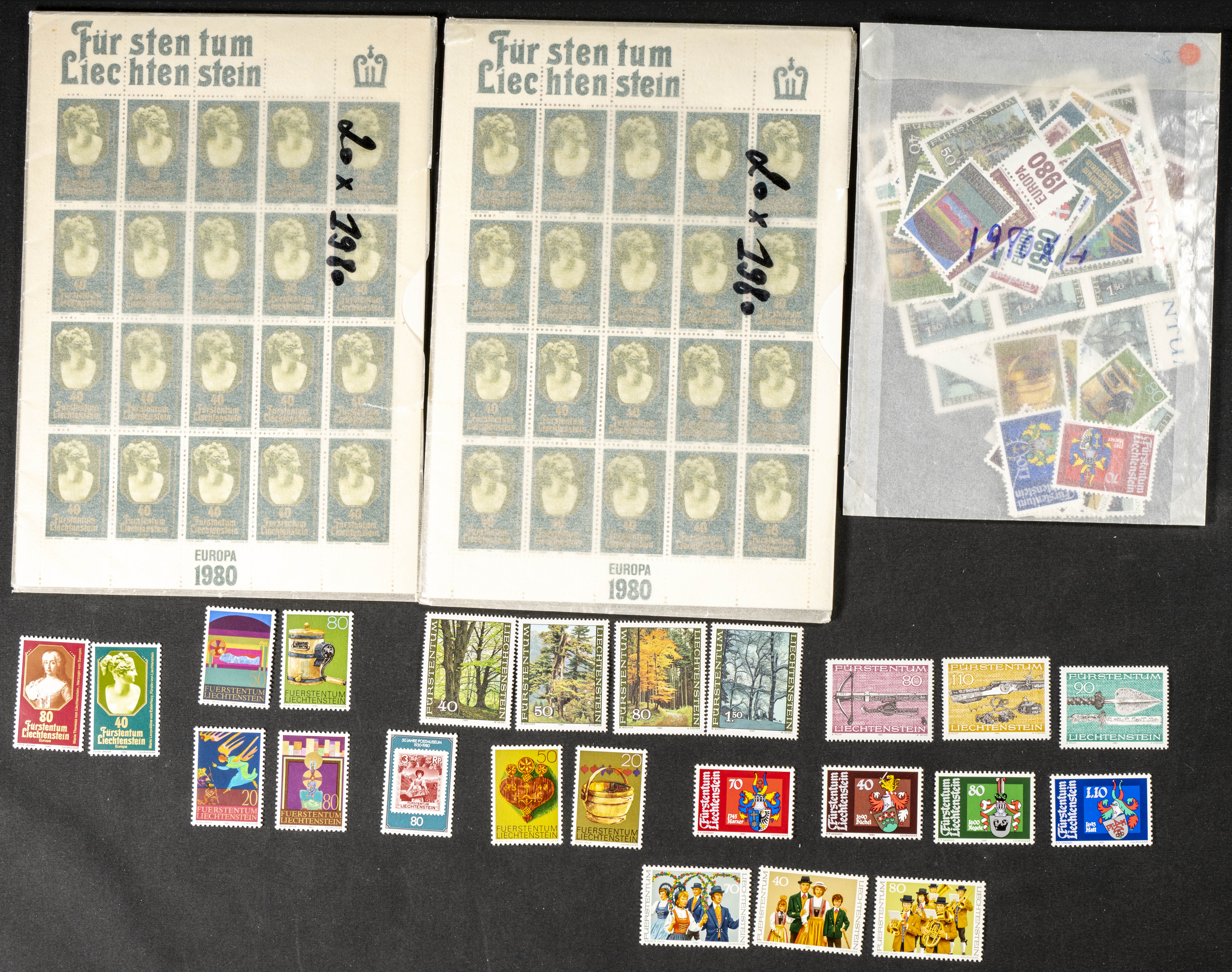 ★★Yvert 682/04(55). 1980. Set of fifty-five complete years of 1980 from Liechtenstein (in mixed covers). TO BE EXAMINED. Yvert 2019: 1,383 Euros