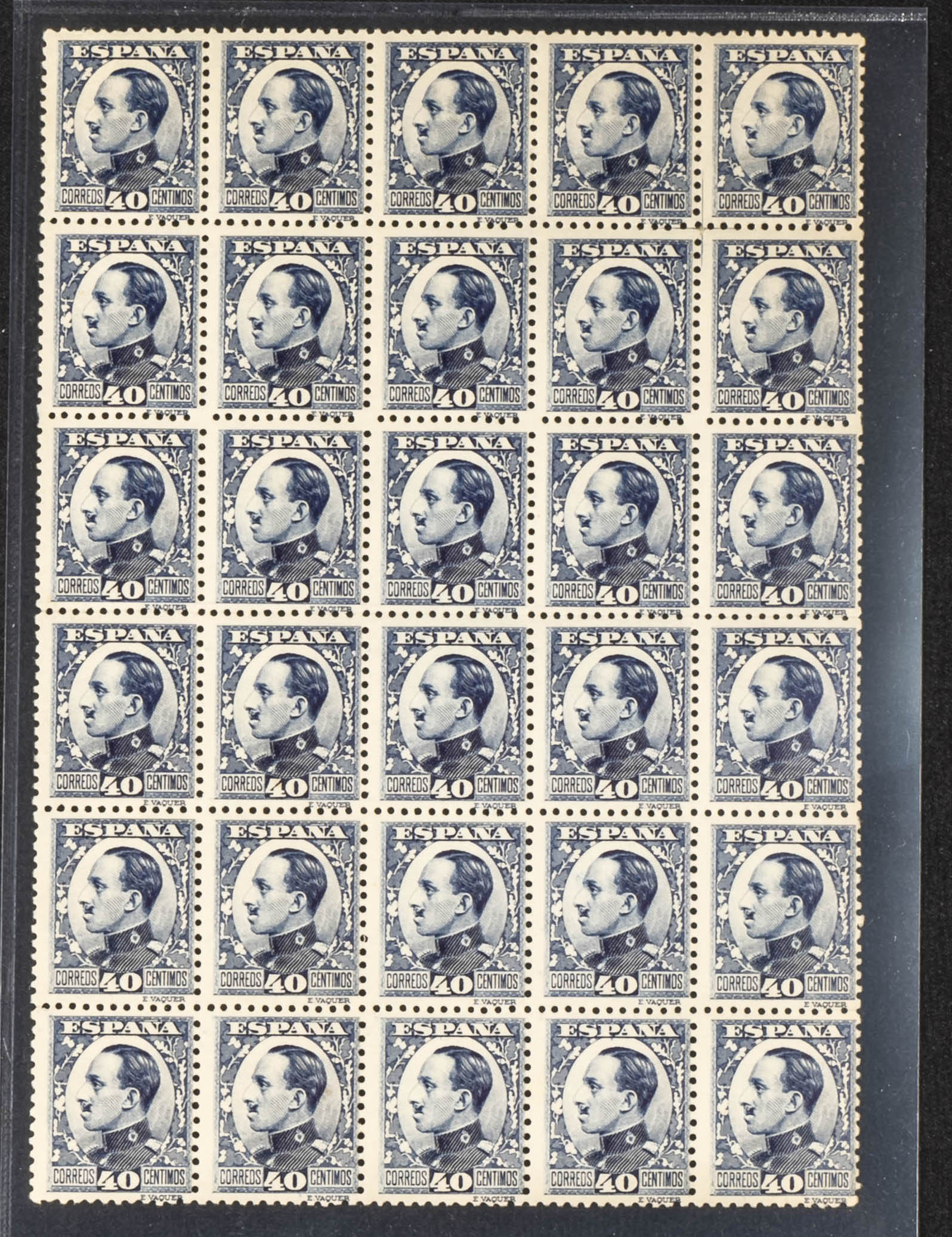 ★★/★ 497(30). 1930. 40 cts blue, thirty stamps in block. VAQUER. TO BE EXAMINED. Edifil 2025: 2.074 Euros