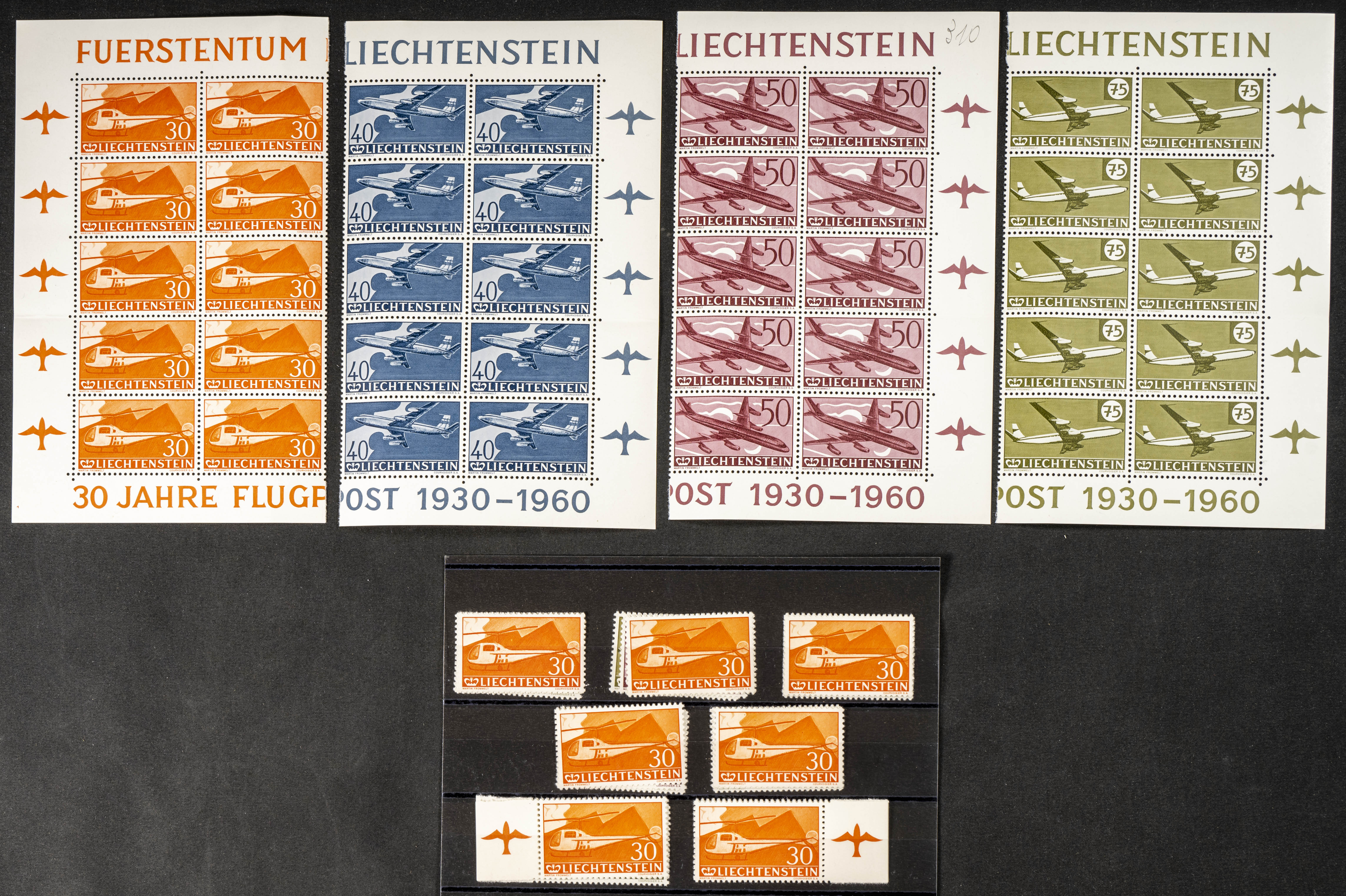 ★★Yvert Airmail 34/37(17). 1960. Seventeen complete 1960 Liechtenstein AIRMAIL series. GREAT. Yvert 2019: 510 Euros