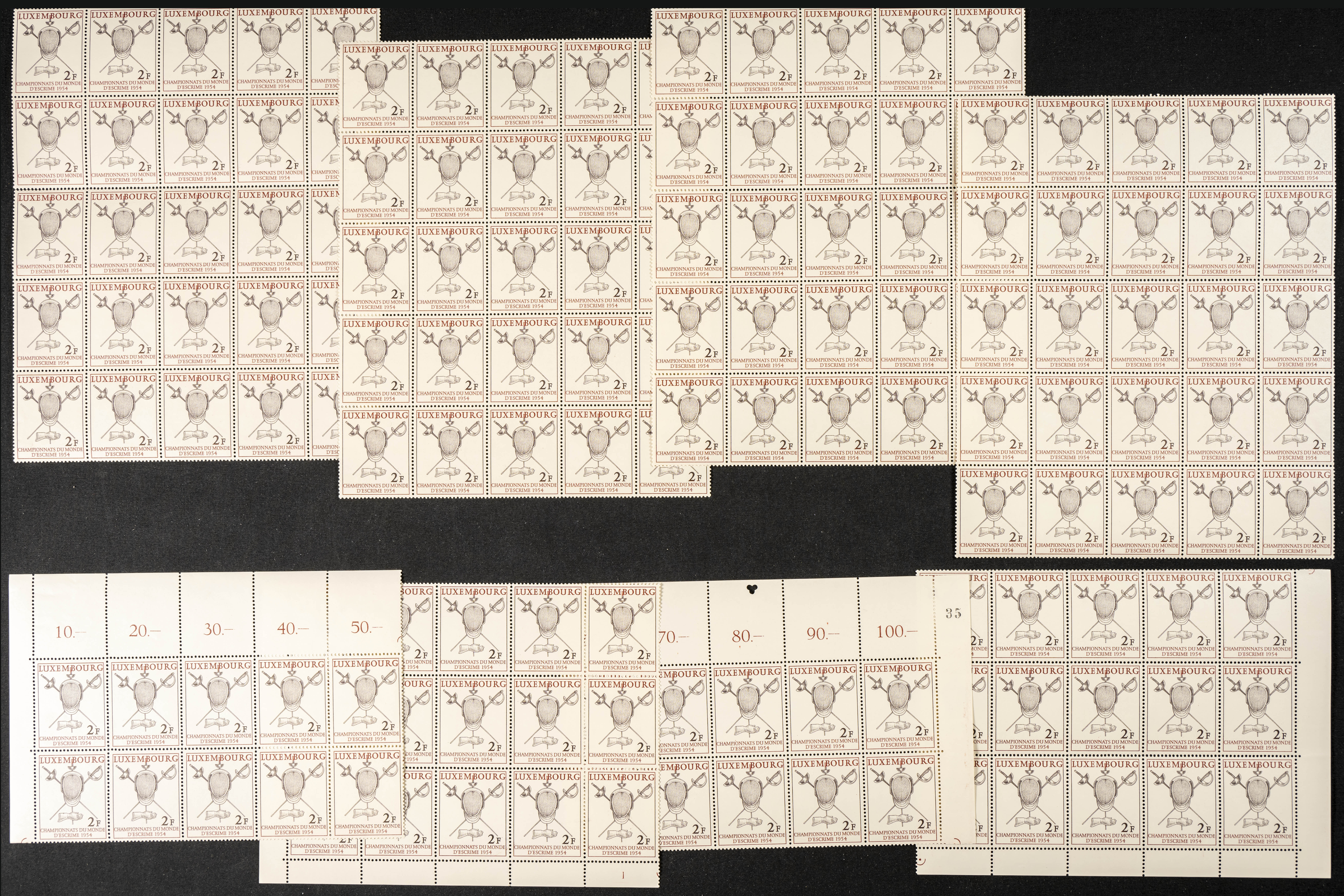★★Yvert 482(150). 1954. Set of one hundred and fifty 2 F FENCING stamps from Luxembourg 1954, mint. TO BE EXAMINED. Yvert 2023: 1,050 Euros