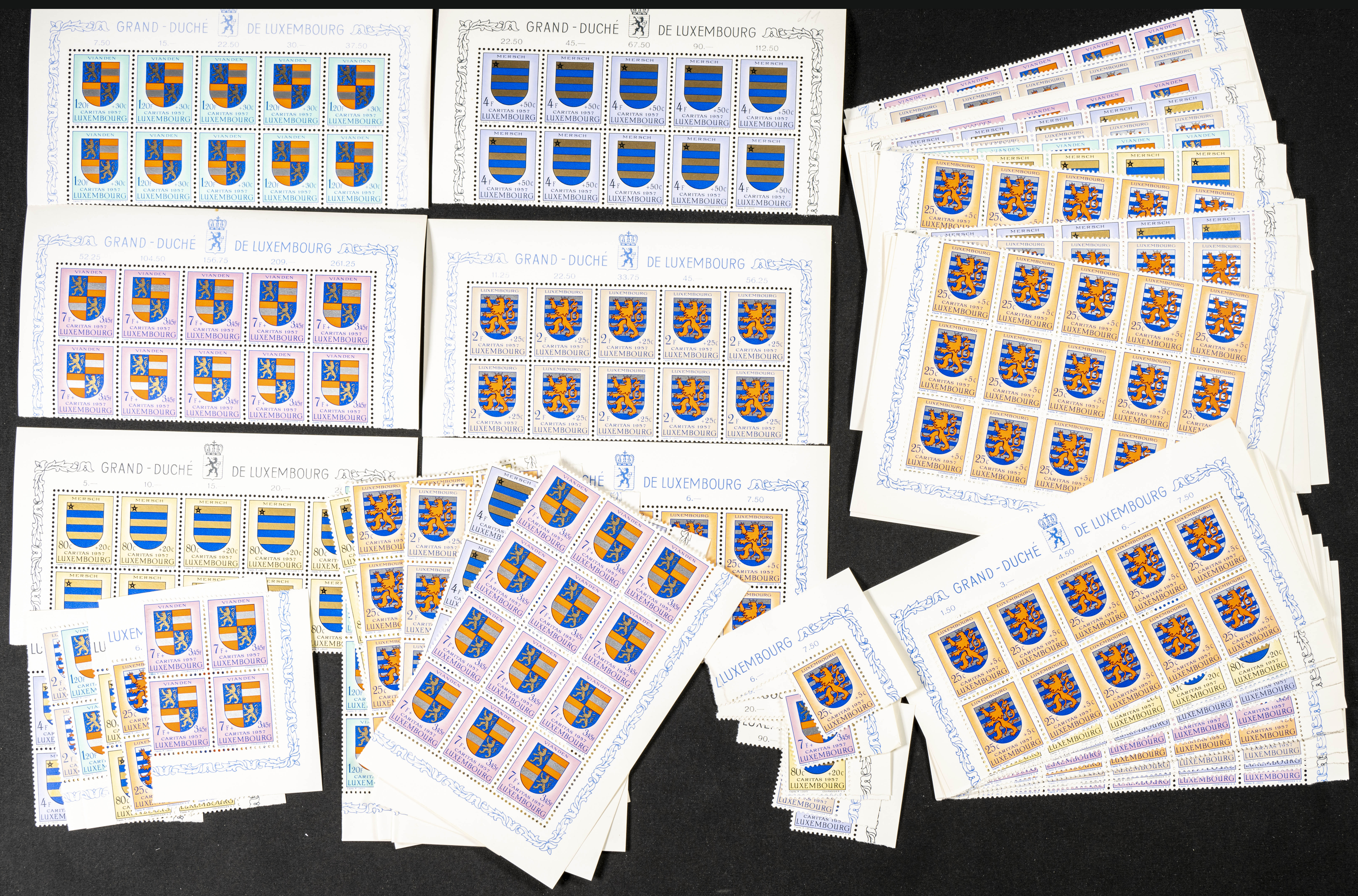 ★★Yvert 534/39(100). 1957. Set of one hundred complete CARITAS series from Luxembourg 1957, new. TO BE EXAMINED. Yvert 2023: 1,600 Euros
