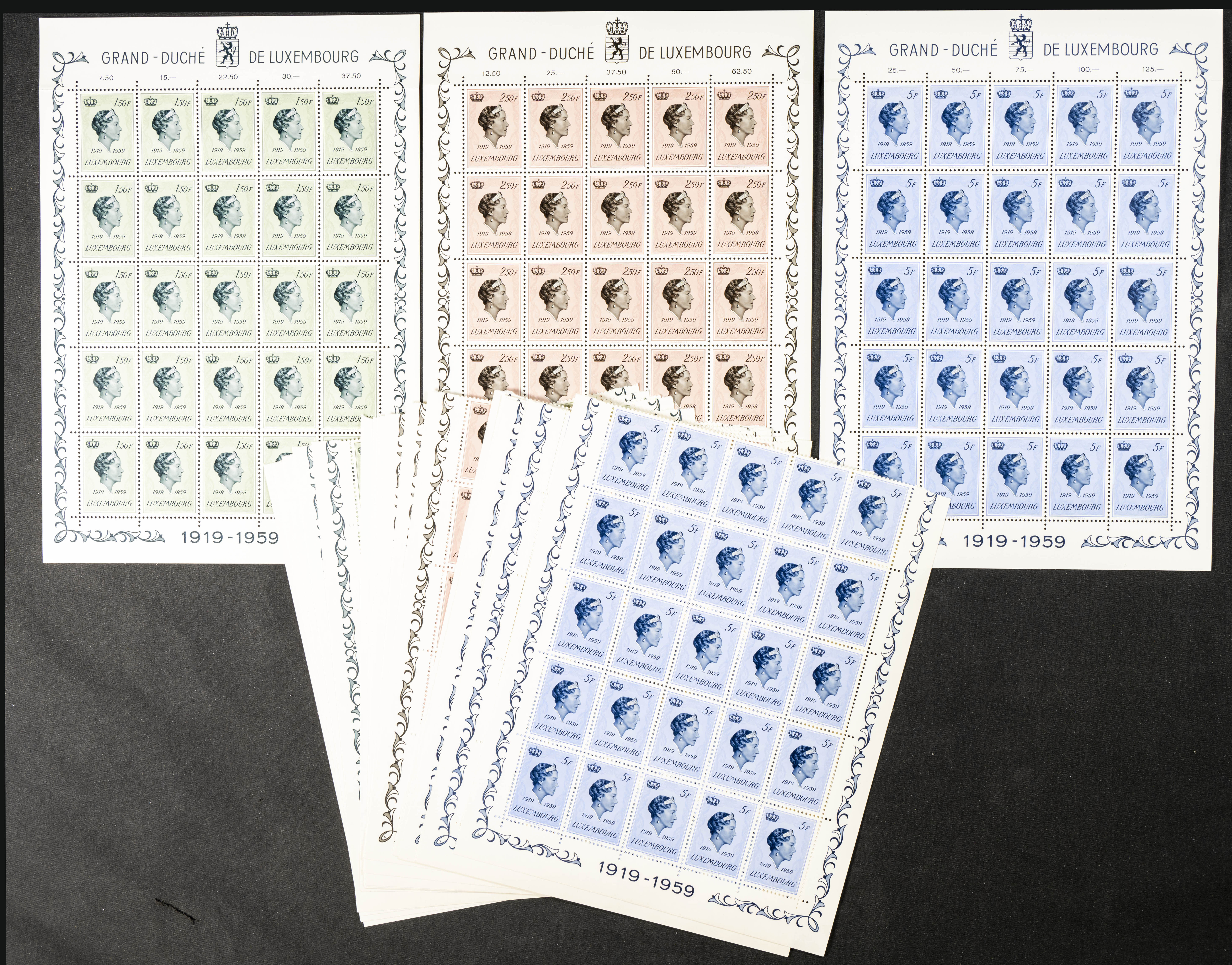 ★★Yvert 559/61(175). 1959. Set of one hundred and seventy-five complete series of the DUCHESS CHARLOTTE of Luxembourg 1959, in new condition. TO BE EXAMINED. Yvert 2023: 875 Euros