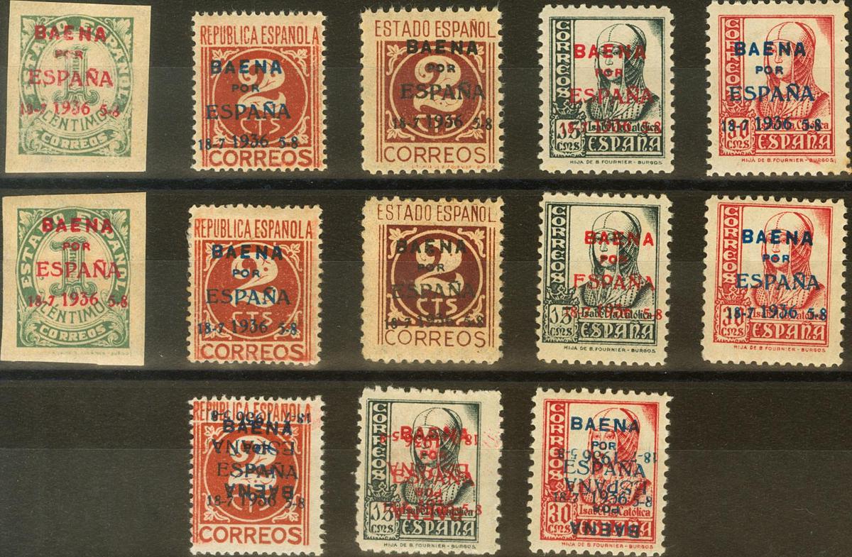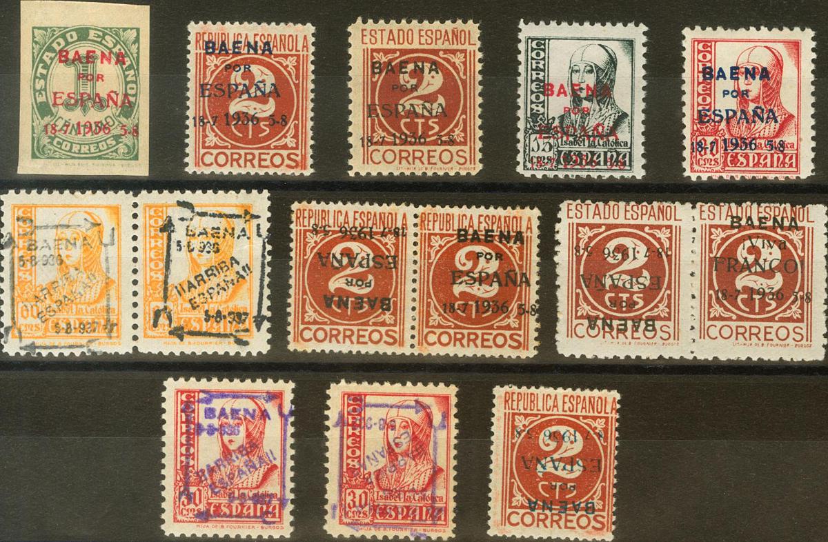 ★★/★1937. Conjunto de series completas y varios valores sueltos de las emisiones de Baena, algunas con variedades de sobrecarga. MAGNIFICOS.