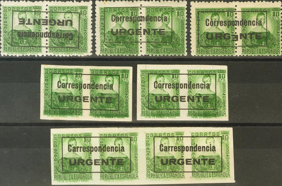★★/(★) 44he,44hea,44hi,44s(2),44hes. 1936. Precioso conjunto de diversas variedades del 10 cts verde, en pareja y una tira de cuatro. MAGNIFICO. Edifil 2017: 380 Euros