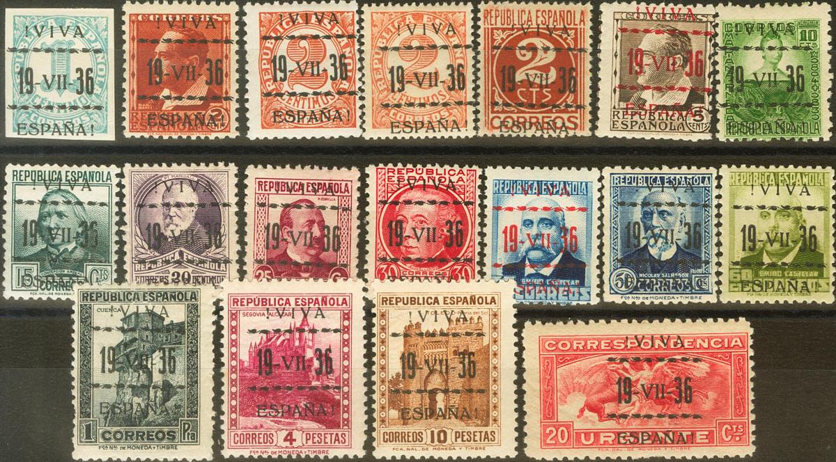 ★ 1/18. 1937. Serie completa, sobrecarga Tipo II. MAGNIFICA. Edifil 2017: 220 Euros
