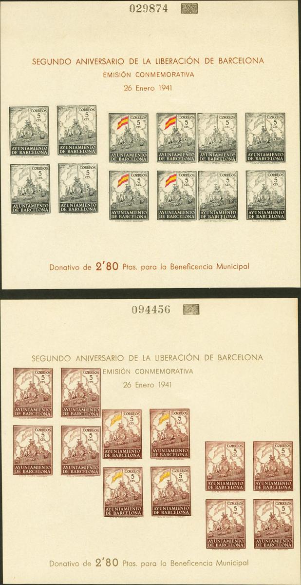 (★) 29/30P. 1941. Serie completa, hojas bloque. PRUEBAS DE IMPRESION, de encuadre del dibujo. MAGNIFICAS Y RARAS.