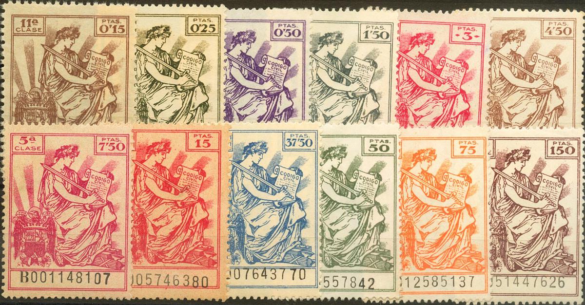 ★/(★)1940. Serie completa POLIZAS, doce valores (numeración de nueve cifras). MAGNIFICA Y RARA. (Alemany 681/92)