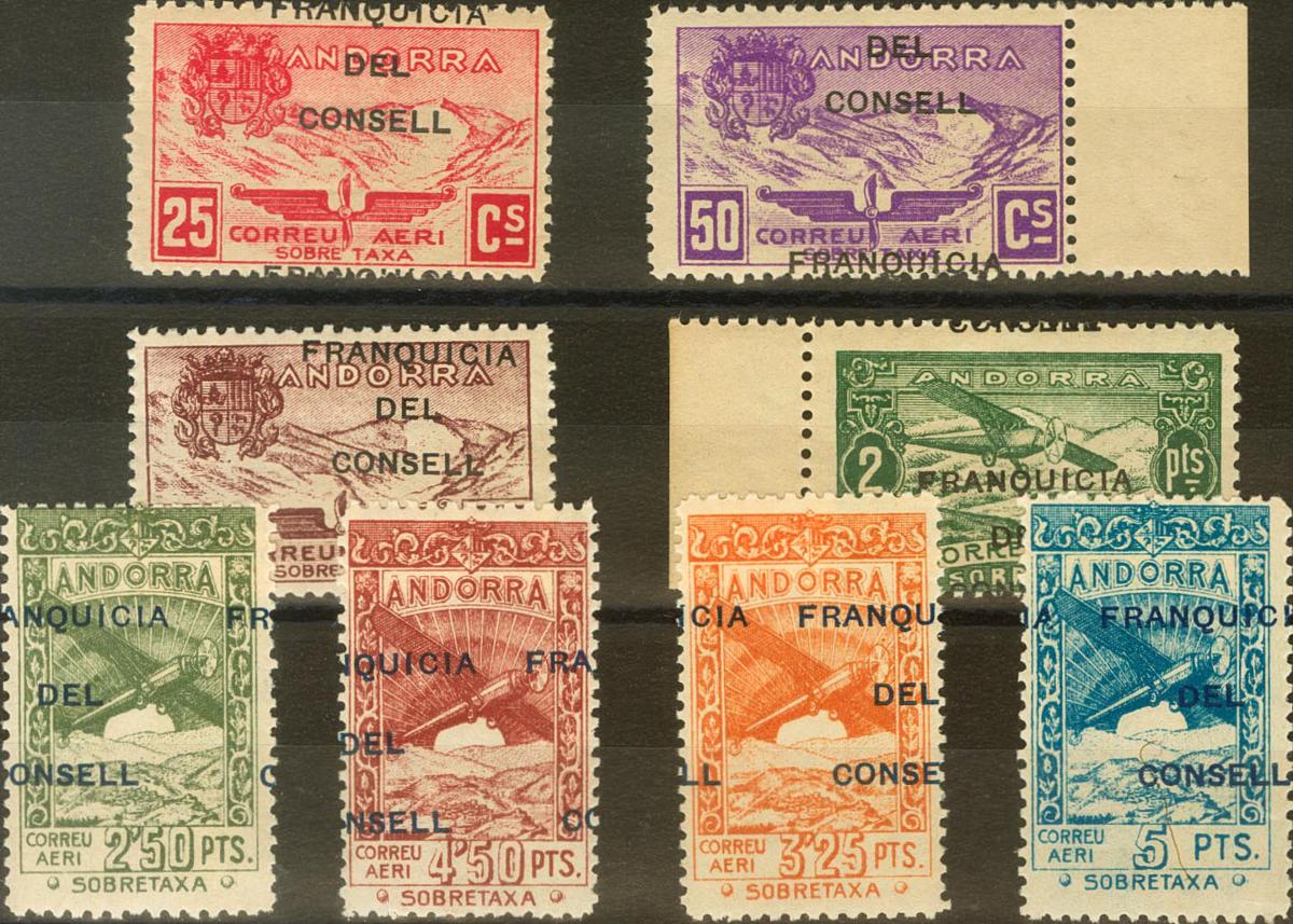 ★★ NE25/36hdx. 1932. Serie completa NO EMITIDA, ocho valores. SOBRECARGA DESPLAZADA. MAGNIFICA Y MUY RARA. Edifil 2019: +330 Euros
